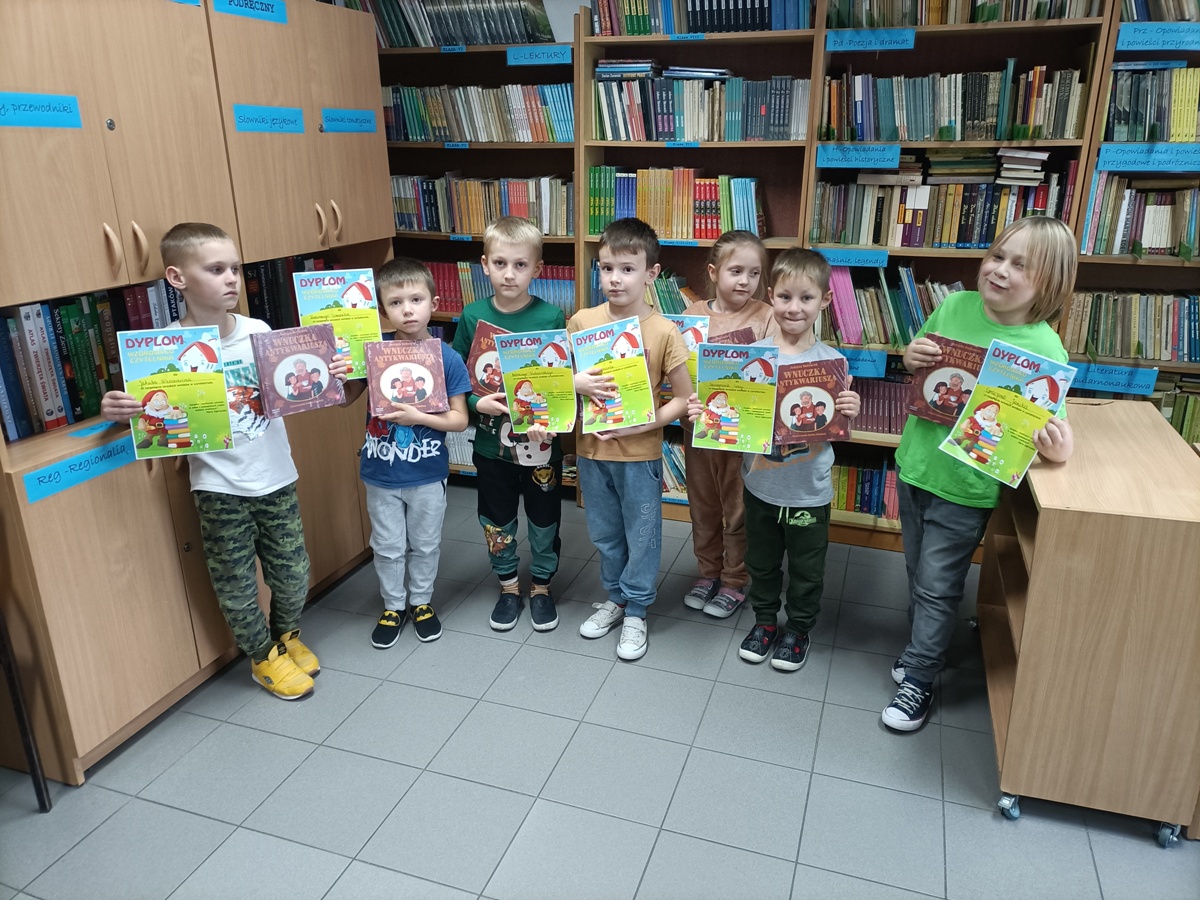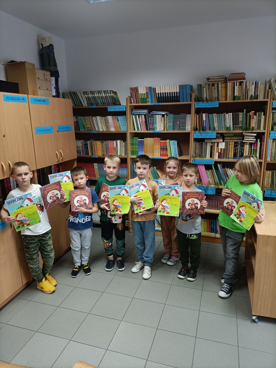 11 grudnia 2023 roku w bibliotece szkolnej odbyło się pasowanie na czytelnika uczniów klasy I. Głównym celem uroczystości było zachęcenie pierwszaków do korzystania z biblioteki, wypożyczania książek oraz nieustannego rozwijania umiejętności czytania.Pasowanie na czytelnika to oficjalne przyjęcie uczniów do grona czytelników biblioteki. Zanim jednak uczniowie złożyli przyrzeczenie musieli wykazać się znajomością bajek i bajkowych postaci. Uczniowie klasy I odgadywali bajkowe zagadki, które sprawdziły ich znajomość bohaterów baśni i bajek.Następnie zapoznali się z księgozbiorem przeznaczonym dla najmłodszych czytelników, regulaminem biblioteki, sposobem wypożyczania książek oraz prośbami książki.Po takim wprowadzeniudzieci uroczyście przyrzekły, że będą kochać i szanować książki oraz sumiennie wypełniać obowiązki czytelnika. Po przyrzeczeniu nastąpiło uroczyste pasowanie na czytelnika. Dzieci, na pamiątkę tego ważnego wydarzenia, otrzymały dyplomy i zakładki do książek. Jako pełnoprawni czytelnicy biblioteki szkolnej mogli wypożyczyć swoją pierwszą książkę. Uczniowie pierwszej klasy otrzymali specjalne Wyprawki Czytelnicze w ramach ogólnopolskiego projektu „Mała książka – wielki człowiek” organizowanego przez Ministerstwo Kultury i Dziedzictwa Narodowego oraz Instytut Książki.