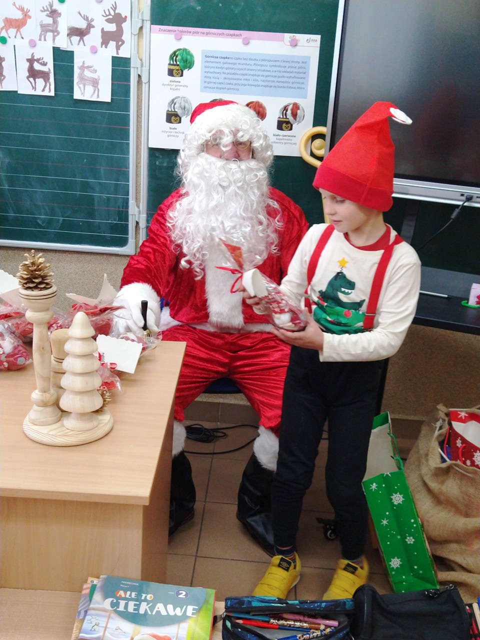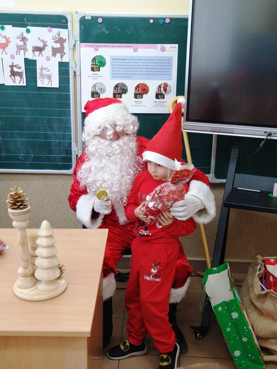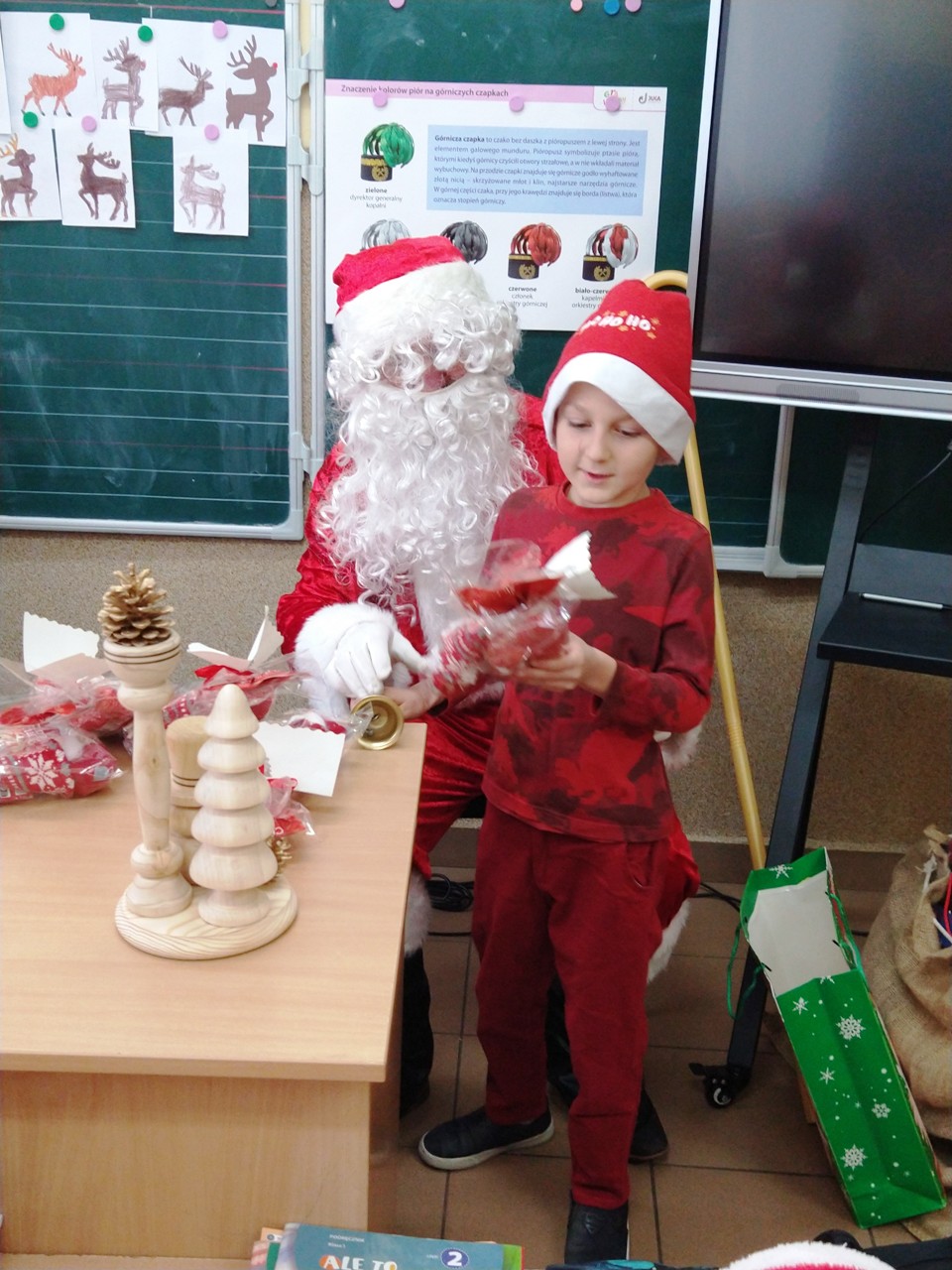 Zgodnie z tradycją 6 grudnia w naszej szkole uroczyście obchodziliśmy mikołajkowe święto. W dniu Mikołajek nasi uczniowie i nauczyciele ubrani byli na czerwono lub w strojach związanych z postacią Świętego Mikołaja. To moment, który integruje społeczność szkolną i sprawia, że wszyscy czują się częścią ważnego wydarzenia. W konkursie na najbardziej czerwoną klasę wygrała klasa II (voucher do wykorzystania na nie odrobienie jednej pracy domowej) i VIII ( voucher- jedzenie jednego dnia na lekcjach). Uczniowie klas młodszych i przedszkolaki już od rana zastanawiały się czy Mikołaj odwiedzi ich salę i czy przyniesie prezenty. Po przyjściu Mikołaja dzieci przywitały się z niezwykłym gościem, zaprezentowały wierszyki i piosenki przygotowane specjalnie dla Niego. Mikołaj był zachwycony i rozdał wszystkim dzieciom prezenty.