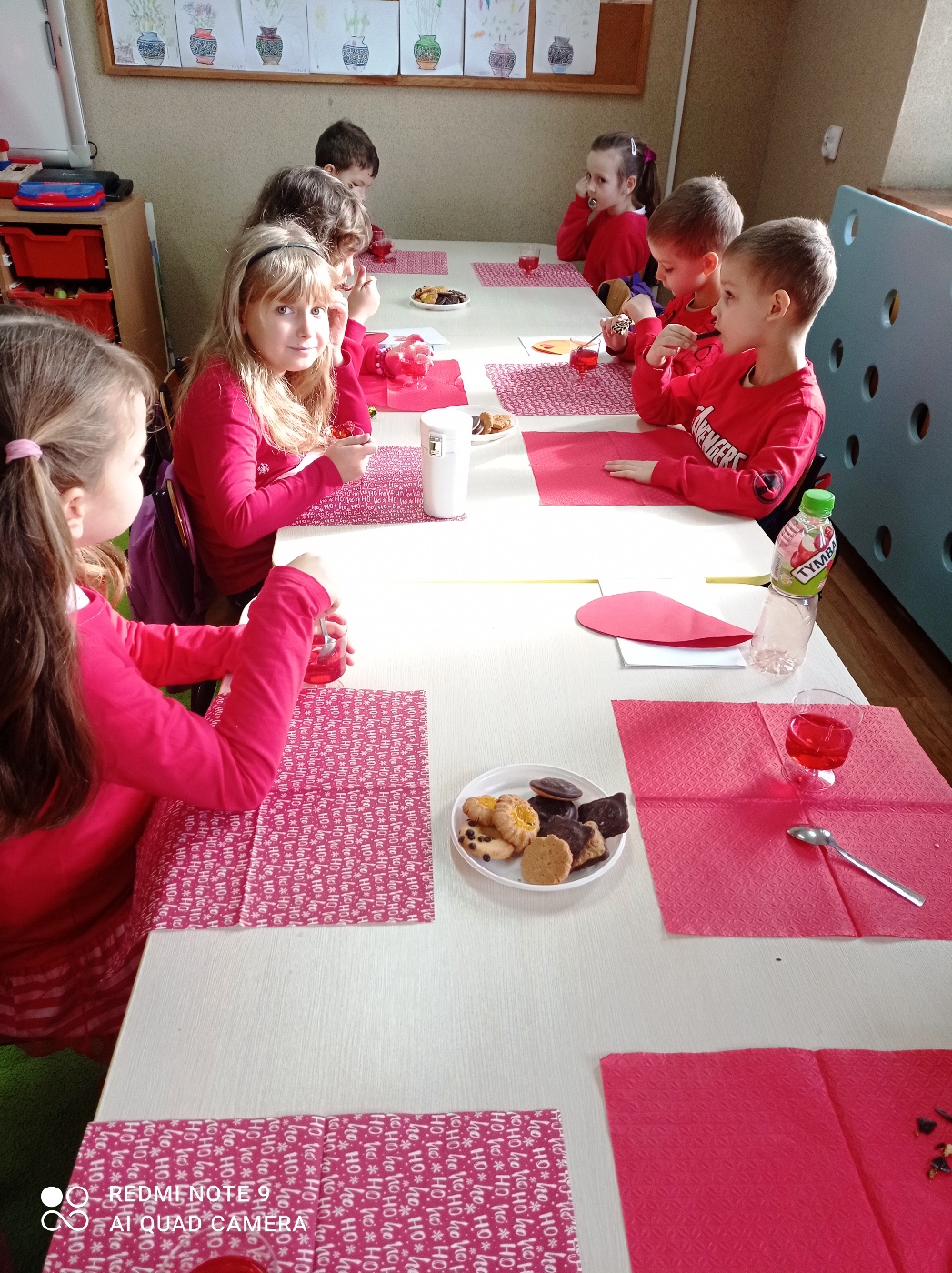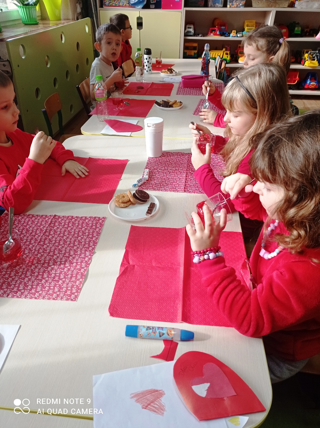 W tym dniu dominował kolor czerwony. Przedszkolaki poznały także tradycje walentynkowe, dowiedziały się jak ważne jest okazywanie uczuć przyjaźni i sympatii. Wyklejały, rysowały i kolorowały serduszka, wykonywały laurki i prace plastyczne, by następnie wręczyć je jako walentynkę swoim kolegom i koleżankom. Każdy mógł przygotować walentynkę dla osoby, którą lubi!