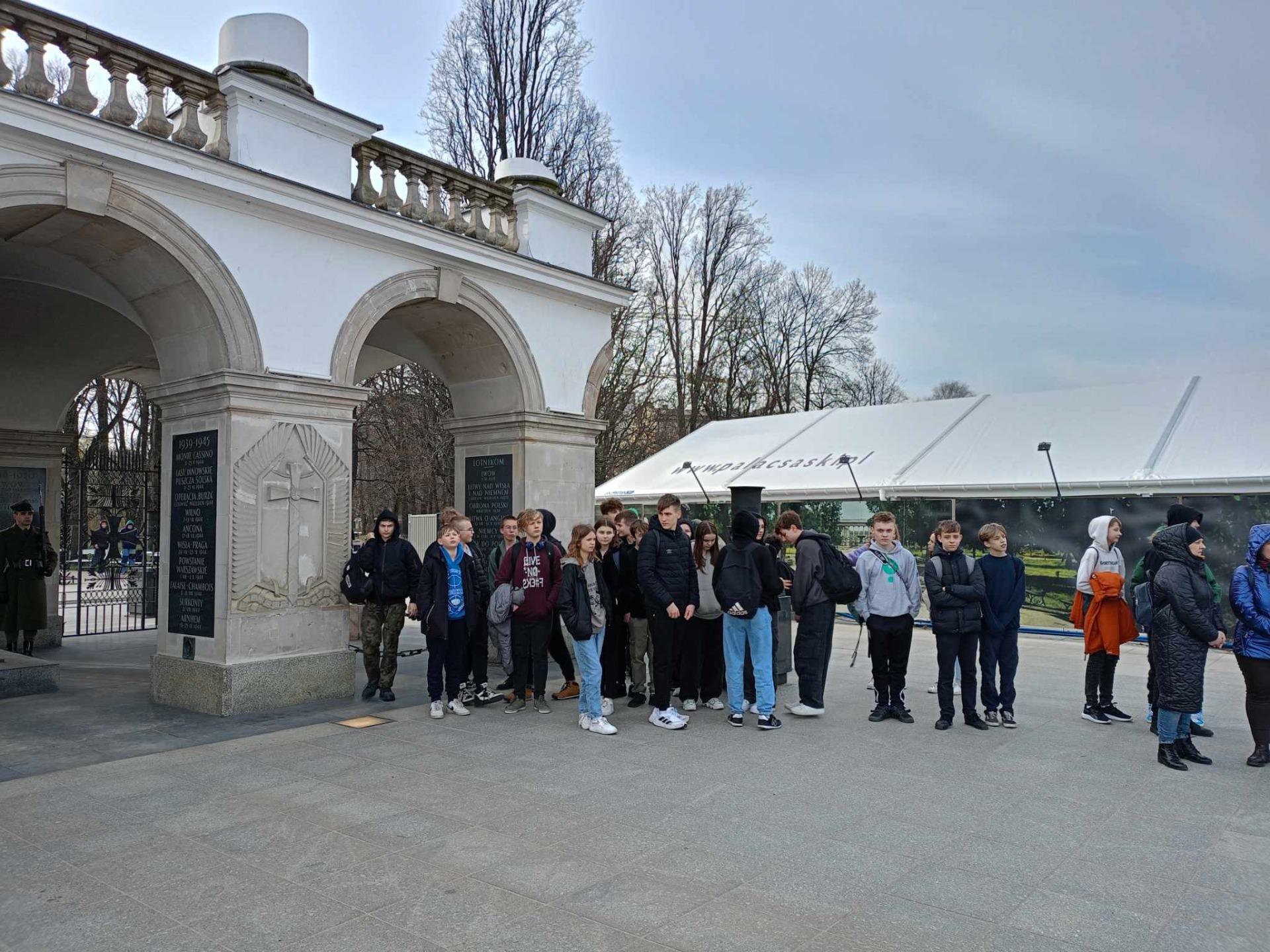 Kolejna wycieczka za nami… Tym razem ruszyliśmy śladami bohaterów książki „Kamienie na szaniec” Aleksandra Kamińskiego. Najpierw zwiedziliśmy Muzeum Powstania Warszawskiego, gdzie znajduje się mnóstwo pamiątek- świadków walk o wolność Warszawy. Następnie odwiedziliśmy kilka ważnych i ciekawych miejsc w starej części Warszawy, m.in. Starówkę, pomnik Małego Powstańca, pomnik Mikołaja Kopernika na Krakowskim Przedmieściu (z którego Alek oderwał pamiętną tablicę), Arsenał ( znany z akcji odbicia Rudego).Oprócz tego obejrzeliśmy zmianę warty przy Grobie Nieznanego Żołnierzaoraz Pałac Prezydencki. Na zakończenie odbyliśmy spacer po Cmentarzu Wojskowym na Powązkach, gdzie minutą ciszy i zniczami zapalonymi na grobach „Zośki”, Rudego i Alka uczciliśmy pamięć powstańców Szarych Szeregów walczących w powstaniu warszawskim.