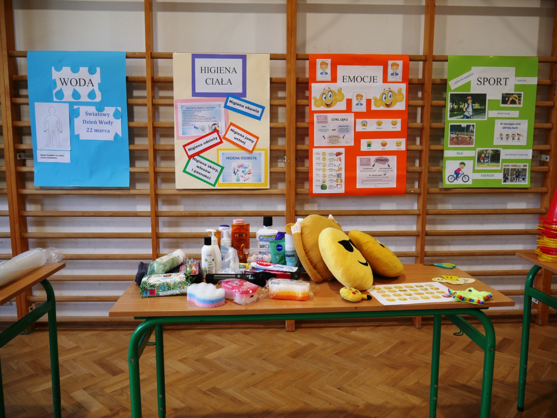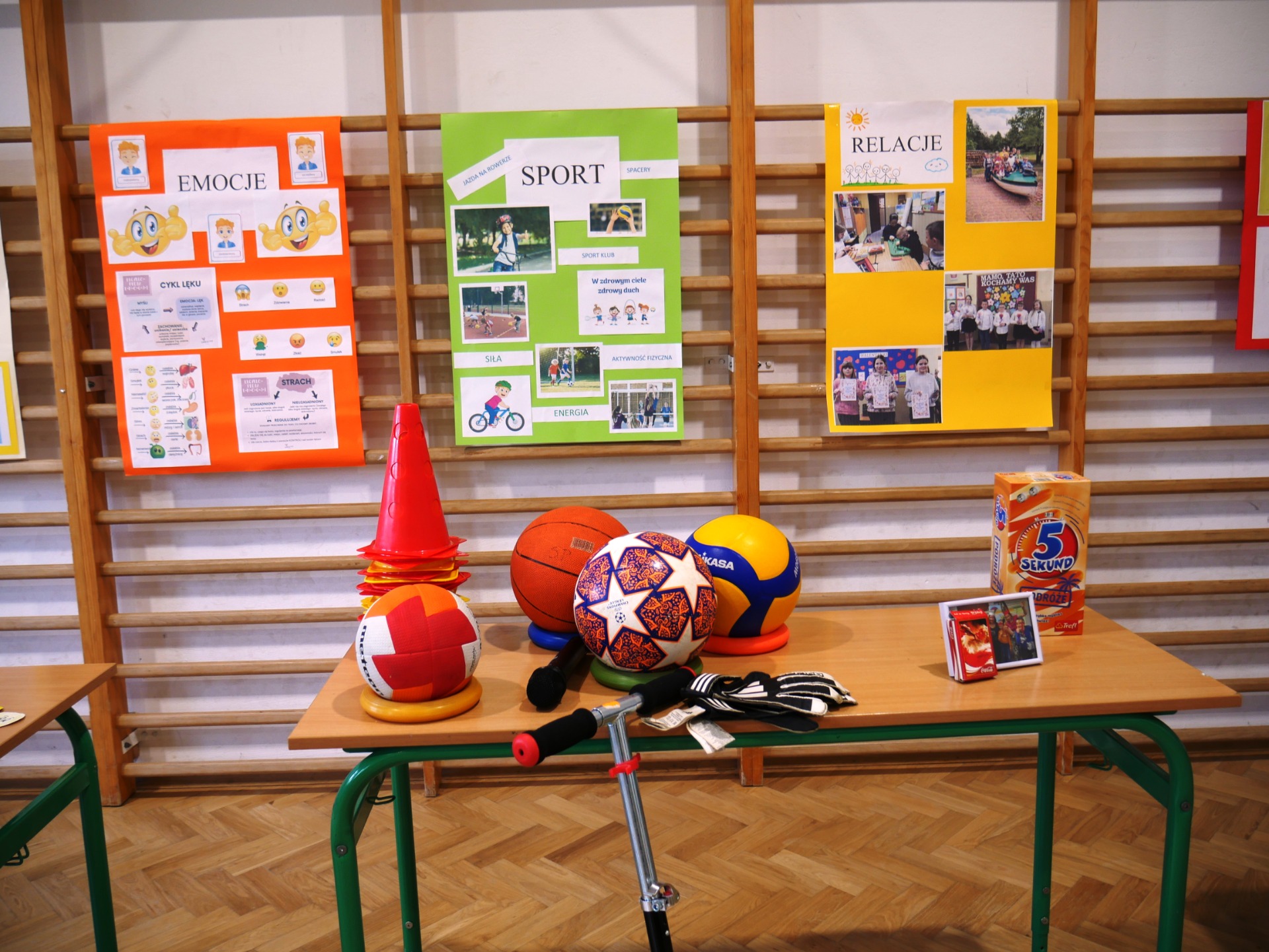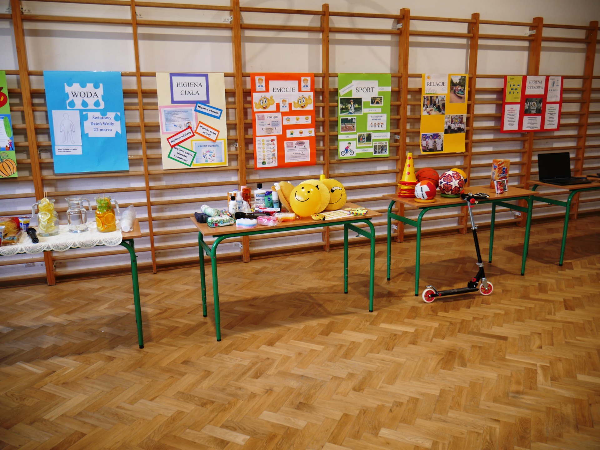 „Trzymaj formę fizyczną i psychiczną” – to hasło szkolnego projektu zrealizowanego w ramach Ogólnopolskiego Programu Edukacyjnego „TRZYMAJ FORMĘ!”. Uczniowie wraz z wychowawcami przygotowali plakaty i omówli na forum szkoły czynniki warunkujące zdrowie, takie jak: sen, zdrowa dieta, woda, higiena ciała, emocje, sport, relacje i higiena cyfrowa. Wspaniałe ekspozycje zostały nagrodzone brawami widowni, a dzieci z oddziału przedszkolnego otrzymały słodki upominek za najlepszą prezentację. Pozostałe klasy za udział w projekcie otrzymały super voucher’y np. na możliwość przełożenia sprawdzianu z dowolnego przedmiotu, na możliwość napisania kartkówki z użyciem podręcznika, na majowy spacer w dowolny dzień itp.