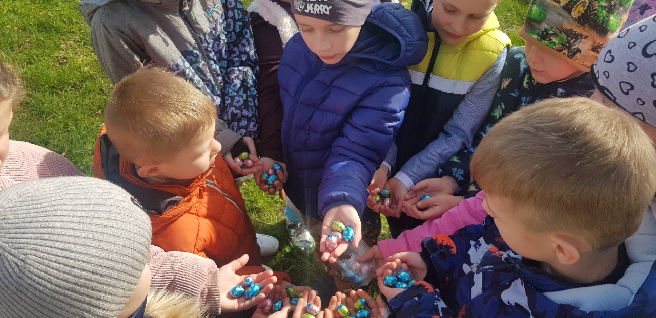 W ramach lekcji języka angielskiego, uczniowie klas 1-3 Szkoły Podstawowej wzięli udział w „Easter Egg Hunt”. Jest to jedna z najpopularniejszych tradycji krajów anglojęzycznych, która polega na znalezieni przez uczestników zabawy jak największej ilości czekoladowych jaj, które wcześniej pozostawił tam zając. Tym razem jednak rolę zająca przejęła nauczycielka języka angielskiego, p. Katarzyna Ślązak, organizatorka zabawy. Wszyscy uczestnicy spisali się znakomicie i mogli rozkoszować się słodkimi przekąskami.