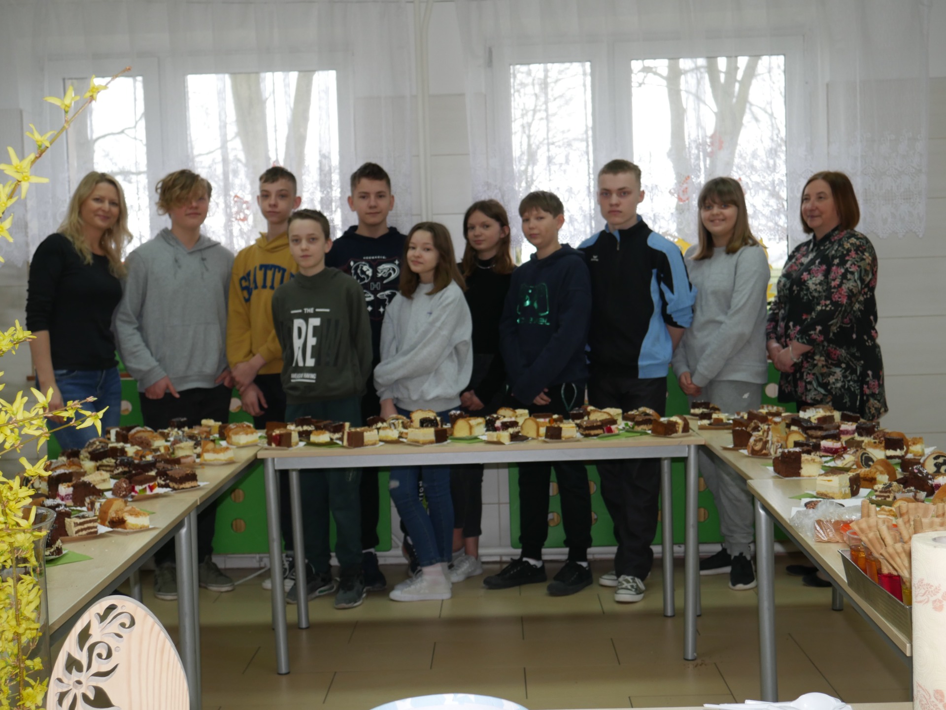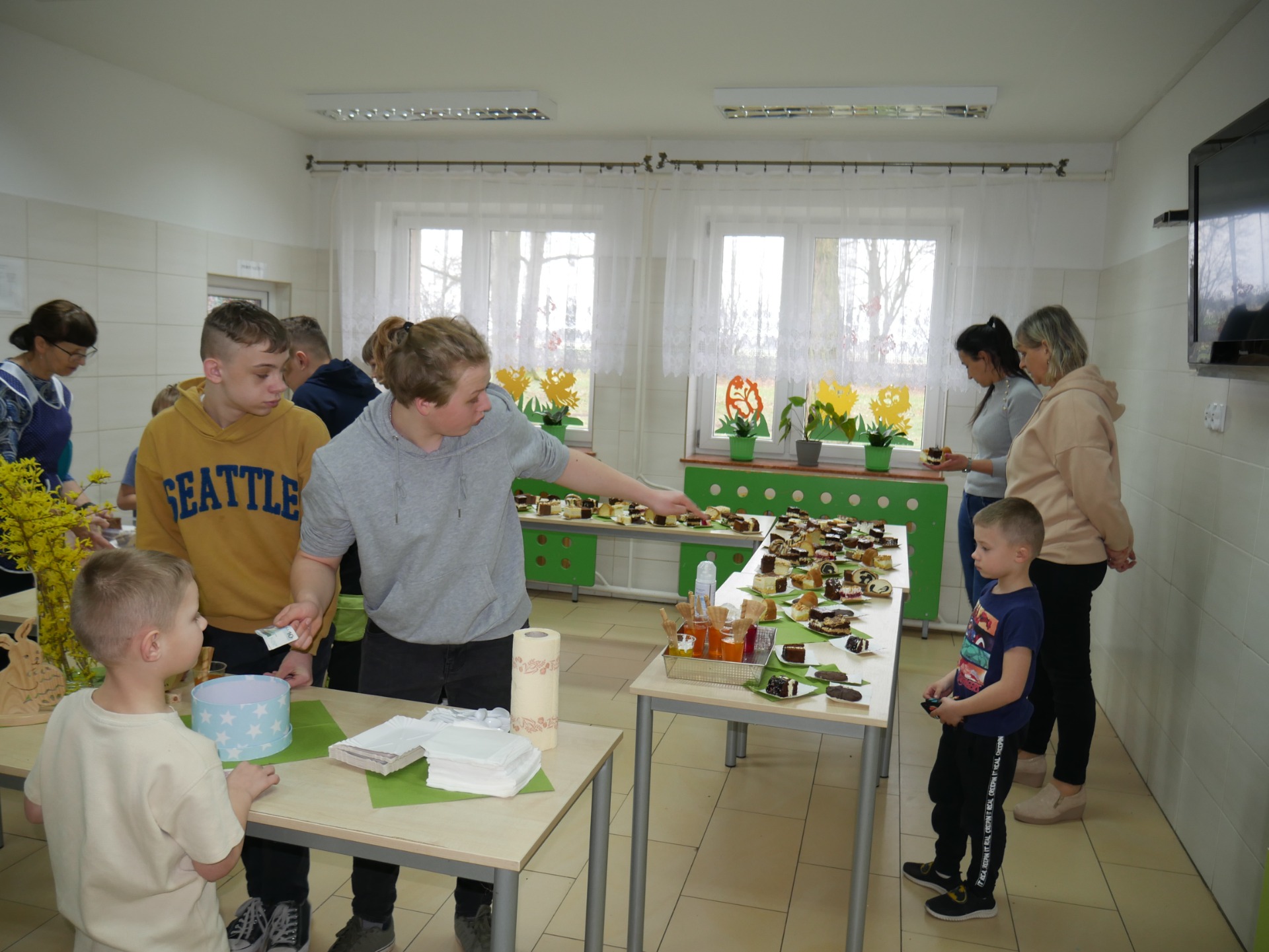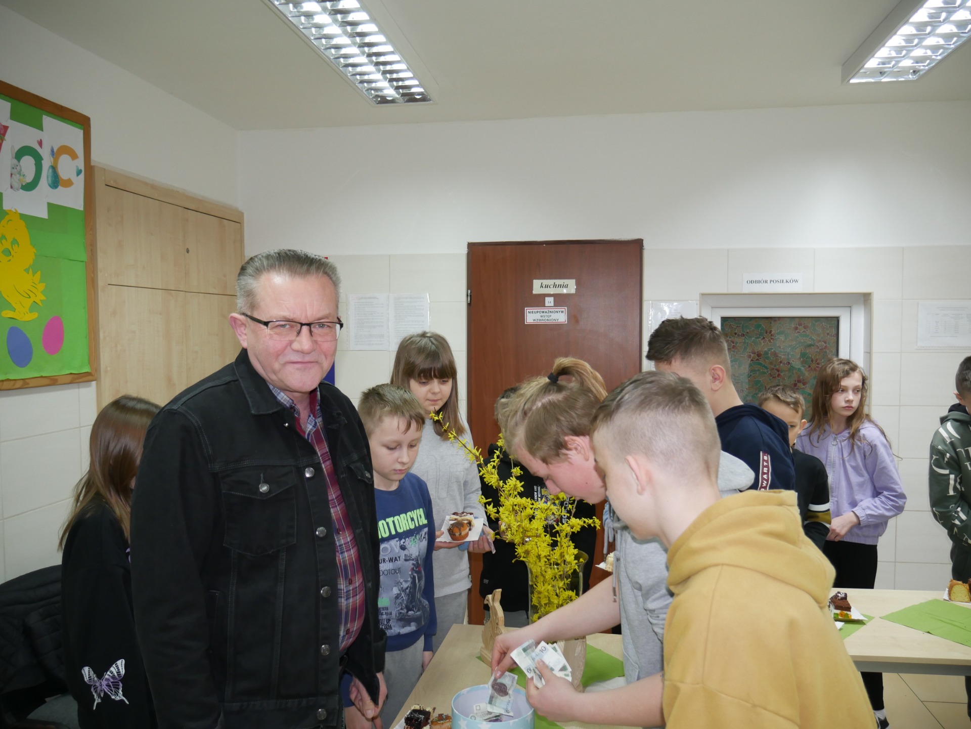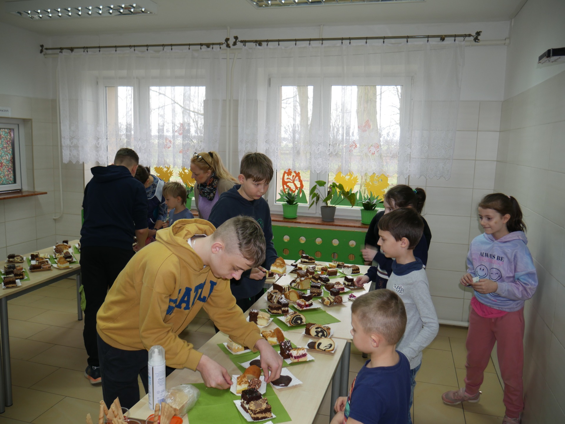 W dniu 25 marca odbył się Kiermasz Ciast Wielkanocnych. Akcję zorganizowali wolontariusze wraz z opiekunem. Serniczki, babeczki, ciasteczka kusiły zapachem i wyglądem. Uczniowie szybko wykupili przygotowane słodkości. Łącznie sprzedano 123 porcje po 5 zł. Dochód z przedsięwzięcia w kwocie 615 zł zostanie przeznaczony na cele szkolne – zakup sprzętu sportowego.