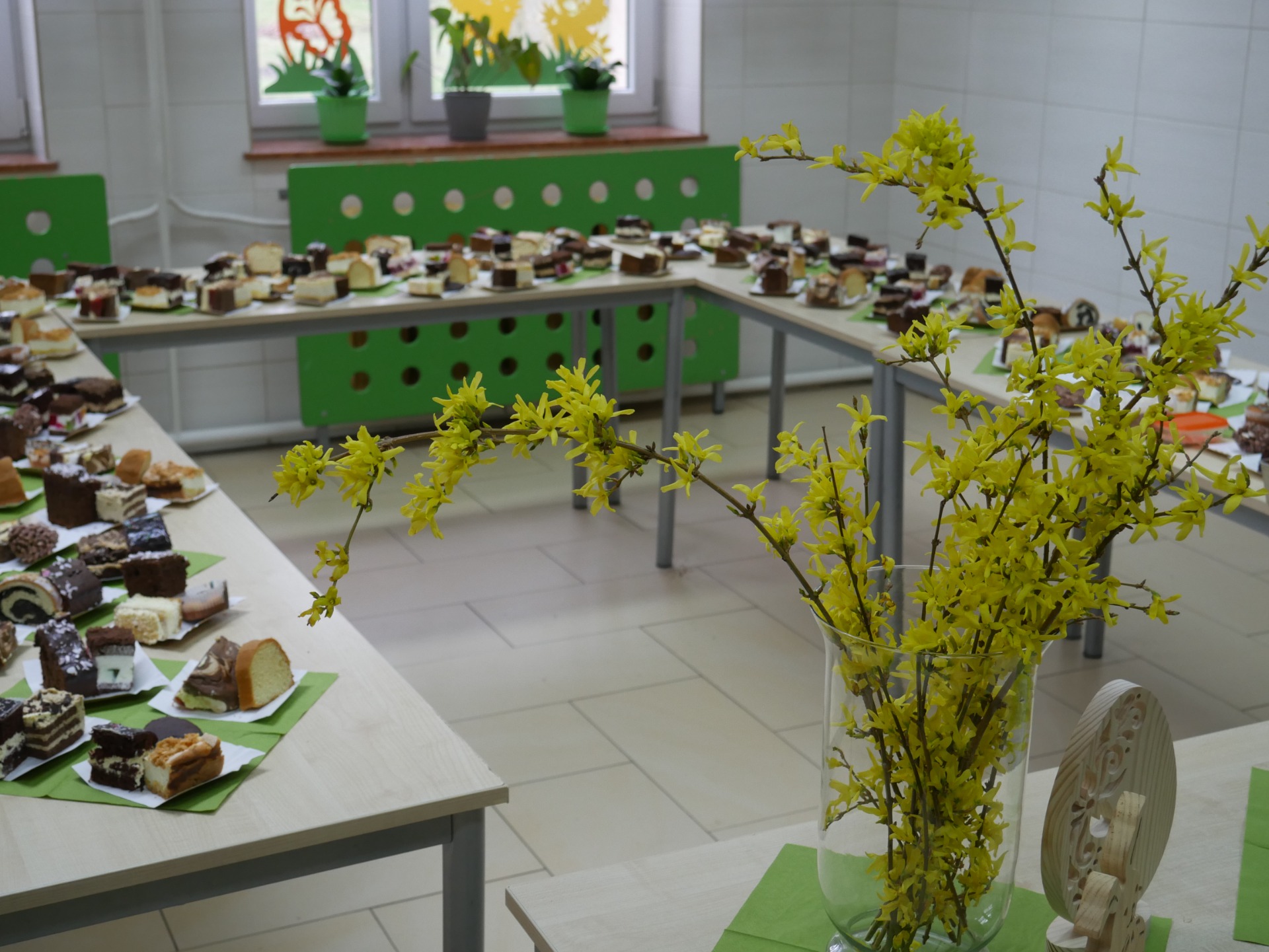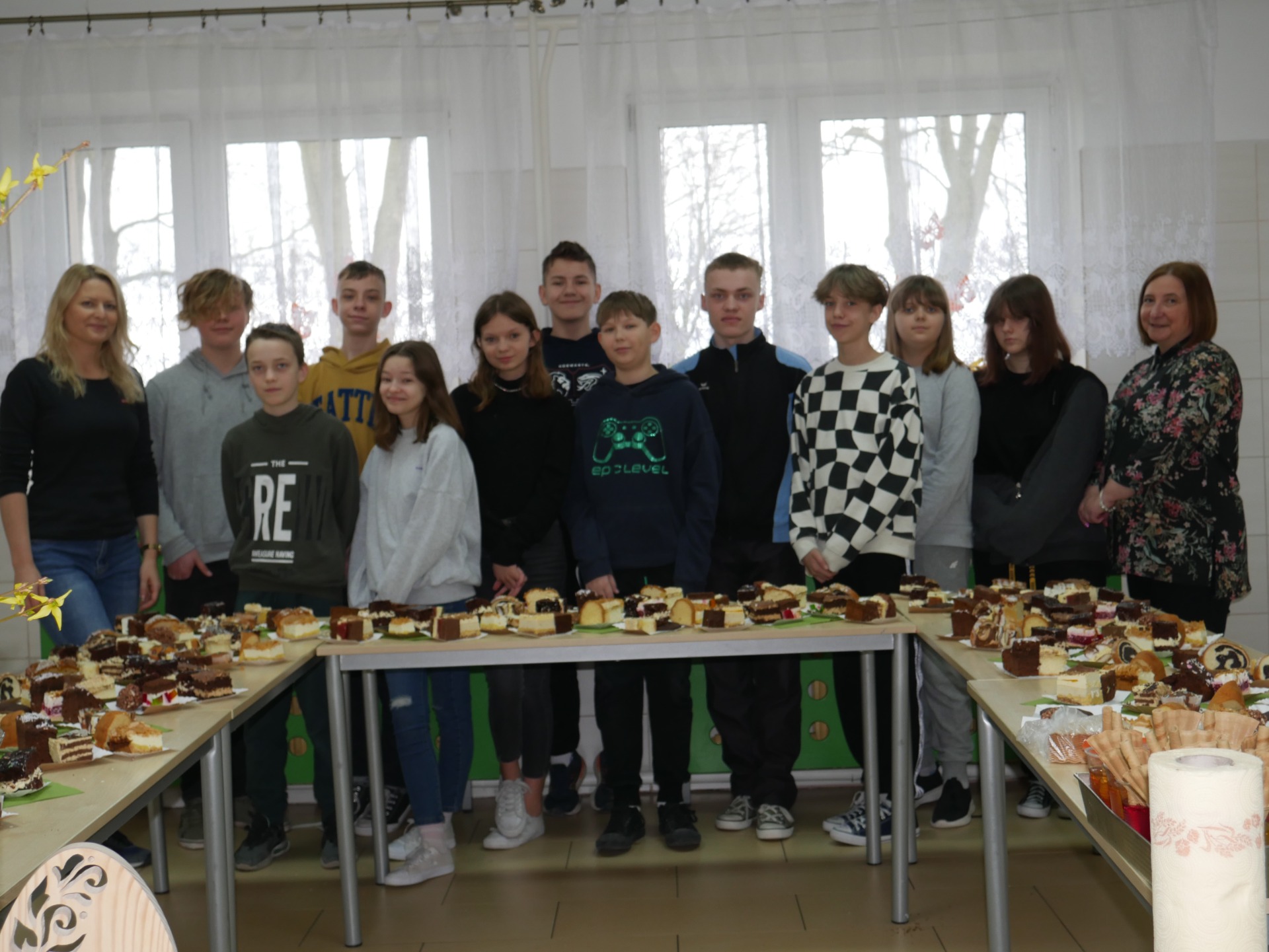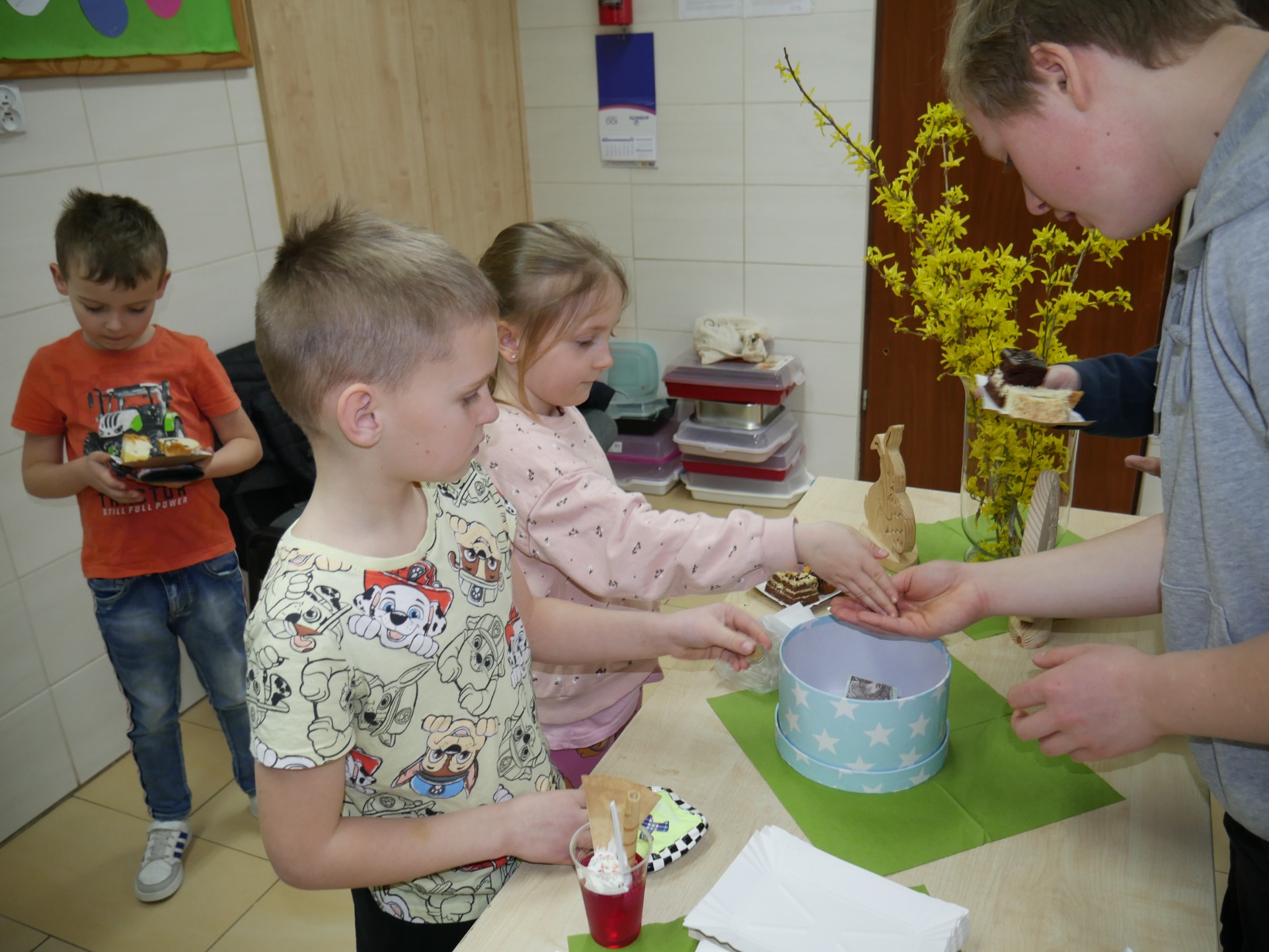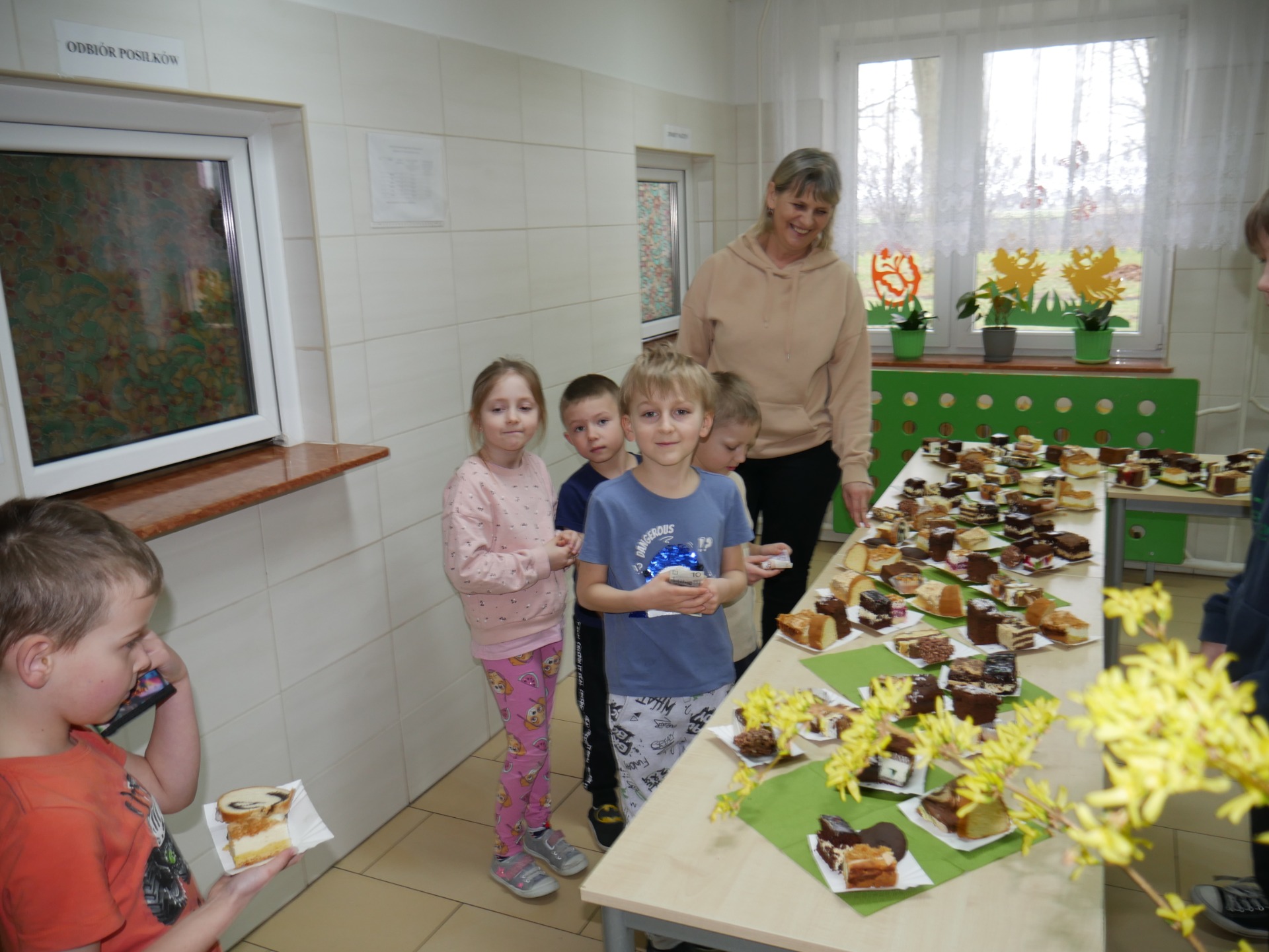 W dniu 25 marca odbył się Kiermasz Ciast Wielkanocnych. Akcję zorganizowali wolontariusze wraz z opiekunem. Serniczki, babeczki, ciasteczka kusiły zapachem i wyglądem. Uczniowie szybko wykupili przygotowane słodkości. Łącznie sprzedano 123 porcje po 5 zł. Dochód z przedsięwzięcia w kwocie 615 zł zostanie przeznaczony na cele szkolne – zakup sprzętu sportowego.