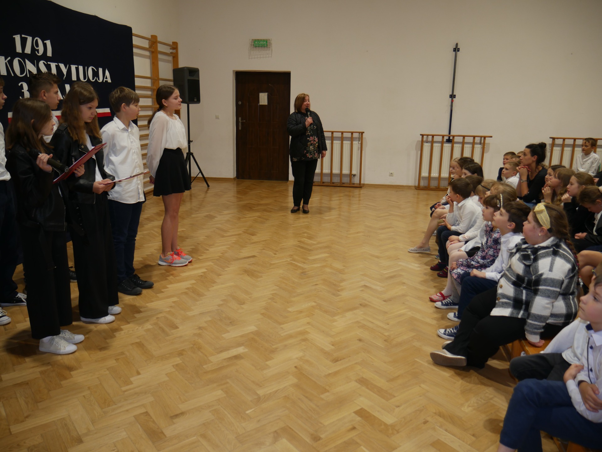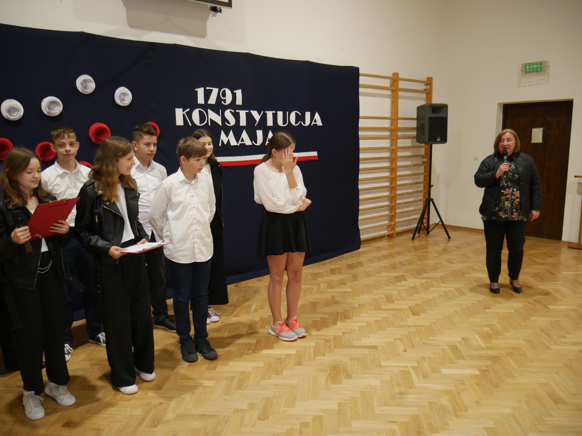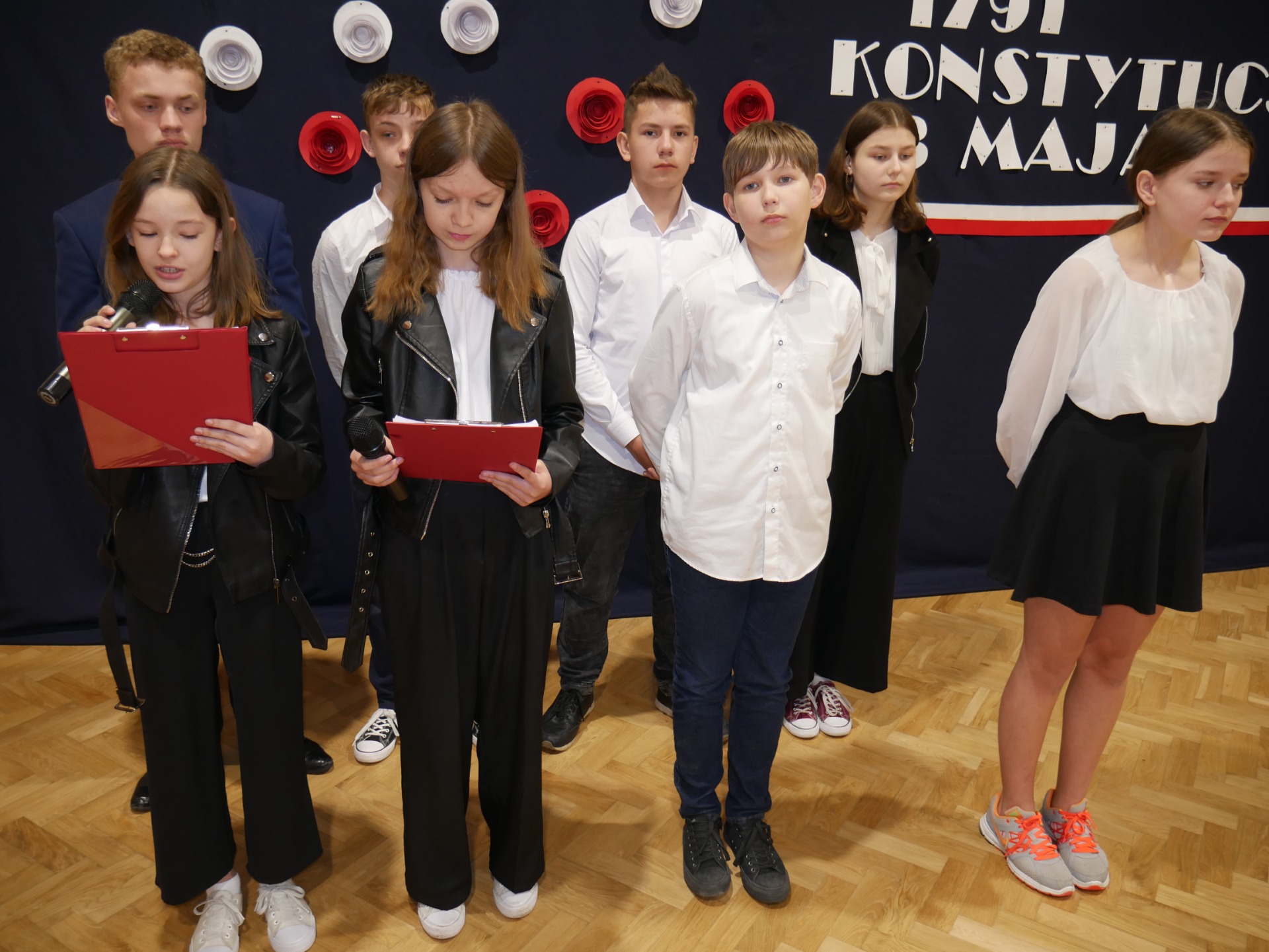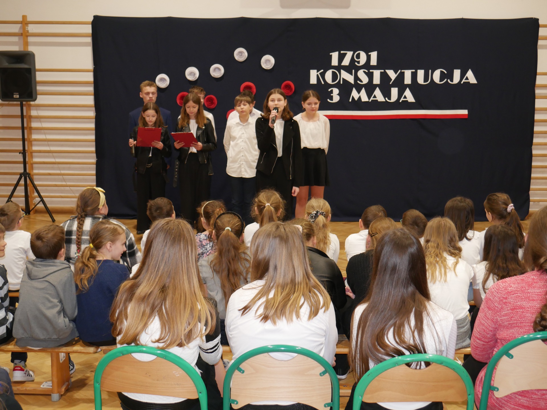 Z okazji Święta Konstytucji odbyła się uroczysta akademia, w której uczniowie przedstawili rys historyczny uchwalenia tego ważnego dla Polski dokumentu.
