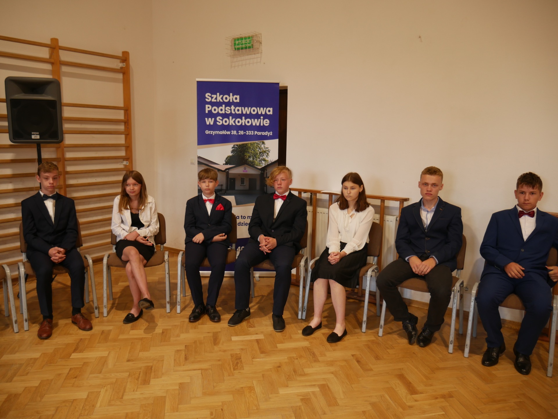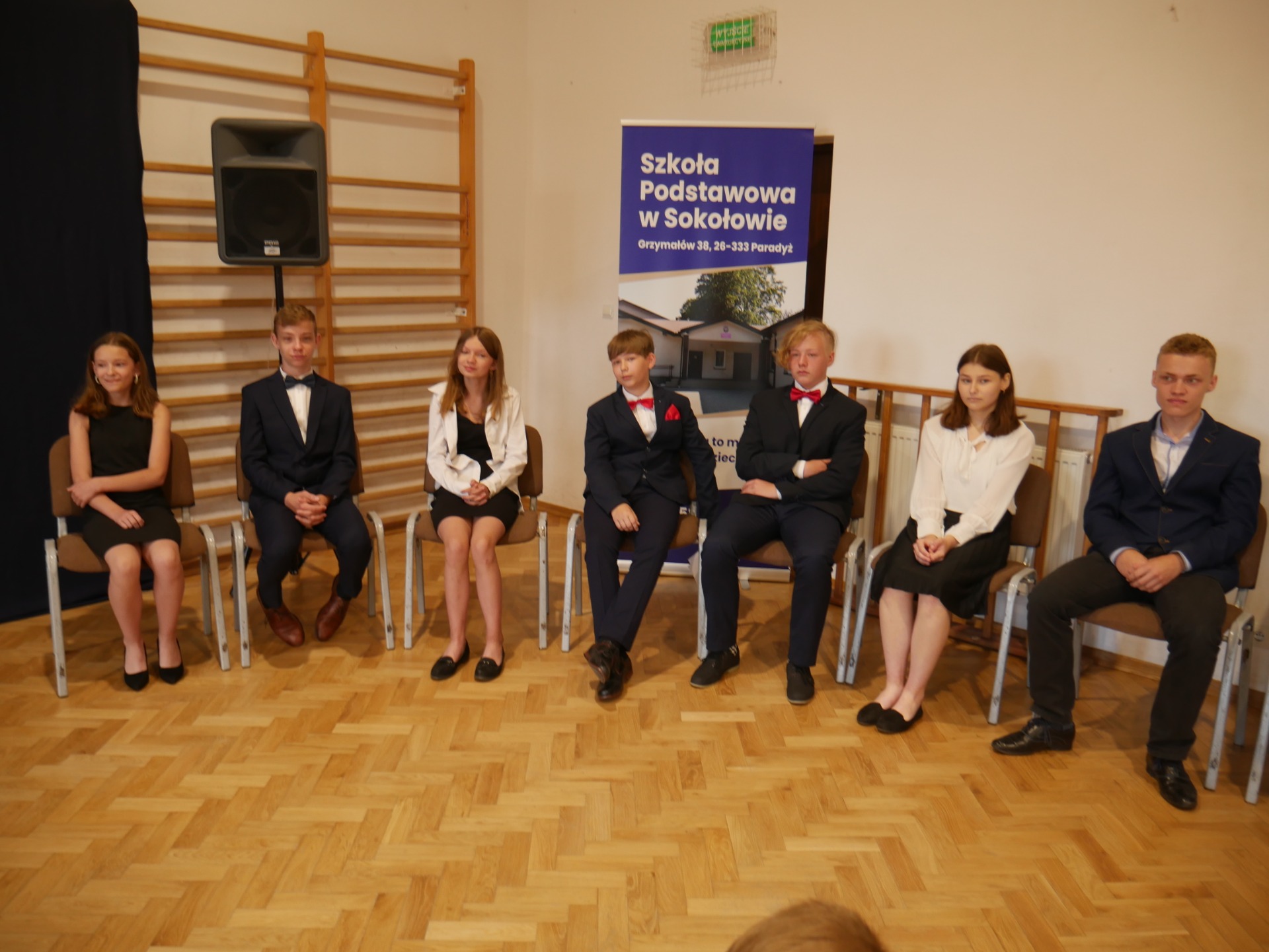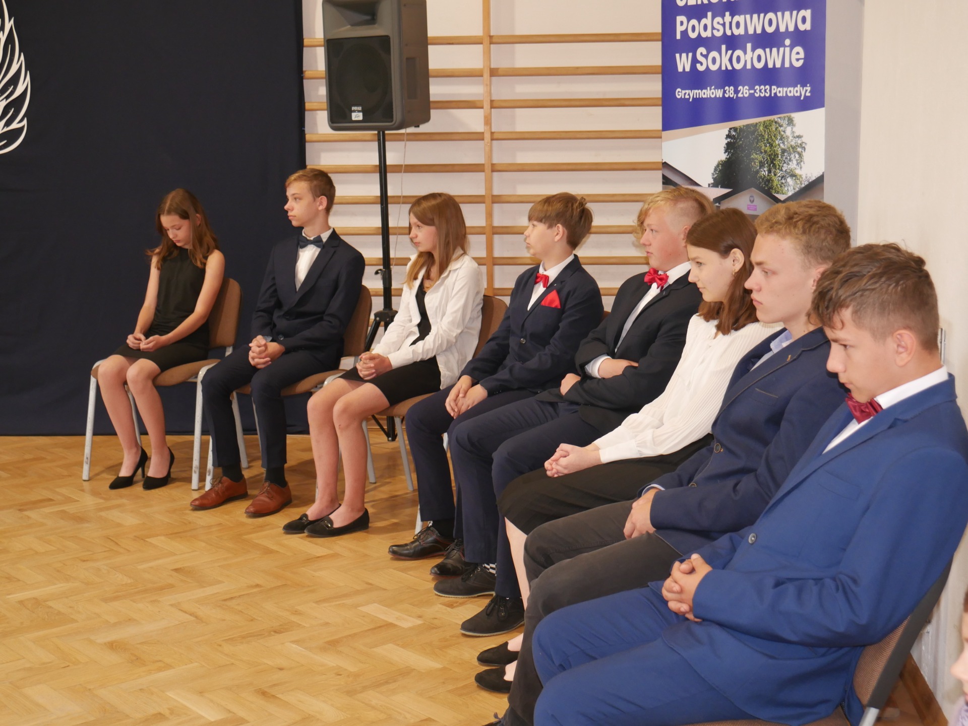 20 czerwca 2024 roku w Szkole Podstawowej w Sokołowie odbył się Dzień Absolwenta czyli uroczyste pożegnanie uczniów klasy ósmej kończących naukę w naszej szkole. Dwoje uczniów uzyskało średnią 4.50, zatem zostali uhonorowani nagrodami książkowymi. Najlepszym absolwentem decyzją Rady Pedagogicznej został wybrany Miłosz Kamiński, który również otrzymał nagrodę książkową z rąk Wójta Gminy Paradyż, Wojciecha Rudalskiego. Ponadto, nagrodzeni zostali członkowie szkolnego zespołu ludowego „Koniczyńki”, za wieloletnie reprezentowanie szkoły i działania na rzecz promocji Gminy Paradyż. Do zespołu należały następujące osoby: Tomasz Gusta, Stanisław Kędziora, Paulina Stawiarska, Julia Sykurska oraz Miłosz Kamiński. Naszym Abolwentom życzymy udanych wakacji oraz powodzenia w dalszych etapach nauki.
