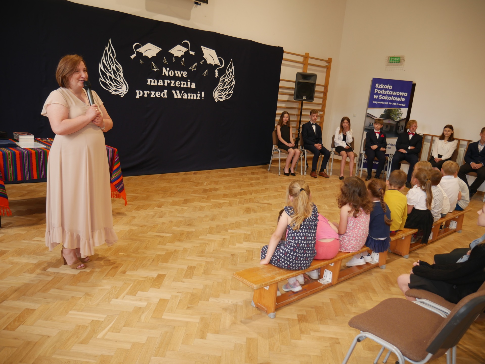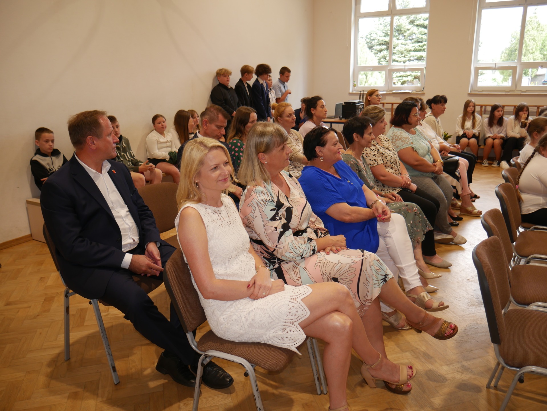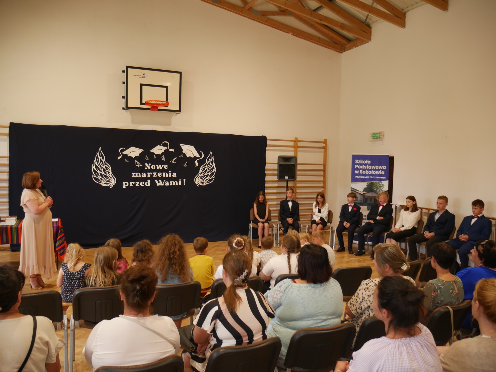 20 czerwca 2024 roku w Szkole Podstawowej w Sokołowie odbył się Dzień Absolwenta czyli uroczyste pożegnanie uczniów klasy ósmej kończących naukę w naszej szkole. Dwoje uczniów uzyskało średnią 4.50, zatem zostali uhonorowani nagrodami książkowymi. Najlepszym absolwentem decyzją Rady Pedagogicznej został wybrany Miłosz Kamiński, który również otrzymał nagrodę książkową z rąk Wójta Gminy Paradyż, Wojciecha Rudalskiego. Ponadto, nagrodzeni zostali członkowie szkolnego zespołu ludowego „Koniczyńki”, za wieloletnie reprezentowanie szkoły i działania na rzecz promocji Gminy Paradyż. Do zespołu należały następujące osoby: Tomasz Gusta, Stanisław Kędziora, Paulina Stawiarska, Julia Sykurska oraz Miłosz Kamiński. Naszym Abolwentom życzymy udanych wakacji oraz powodzenia w dalszych etapach nauki.