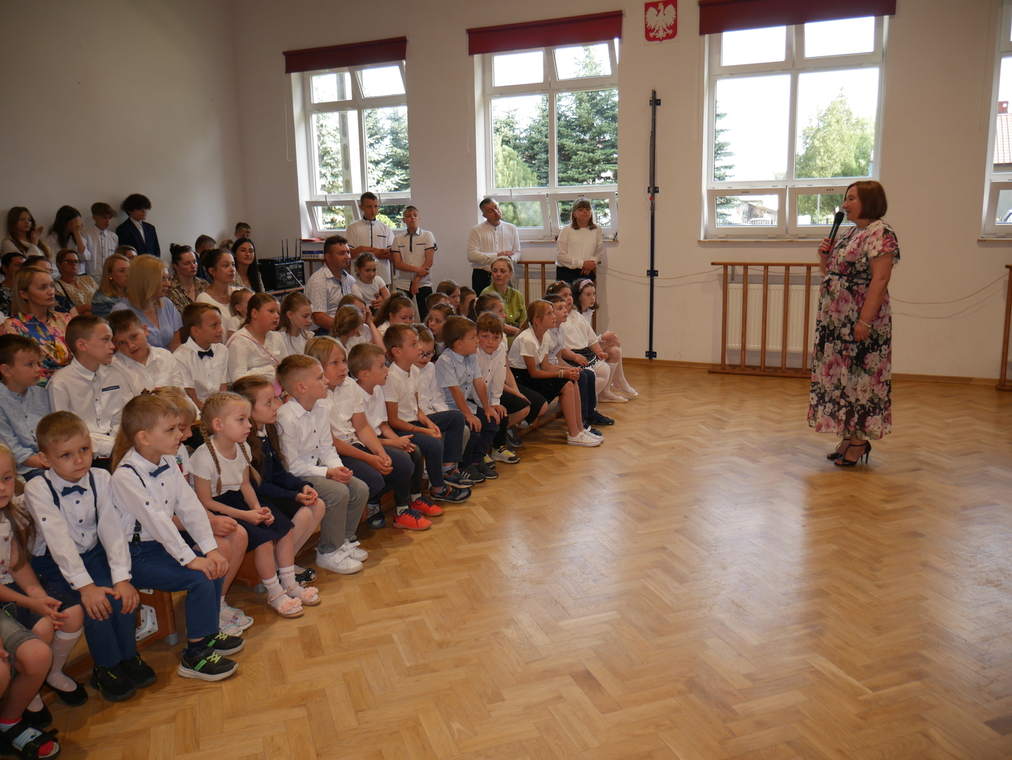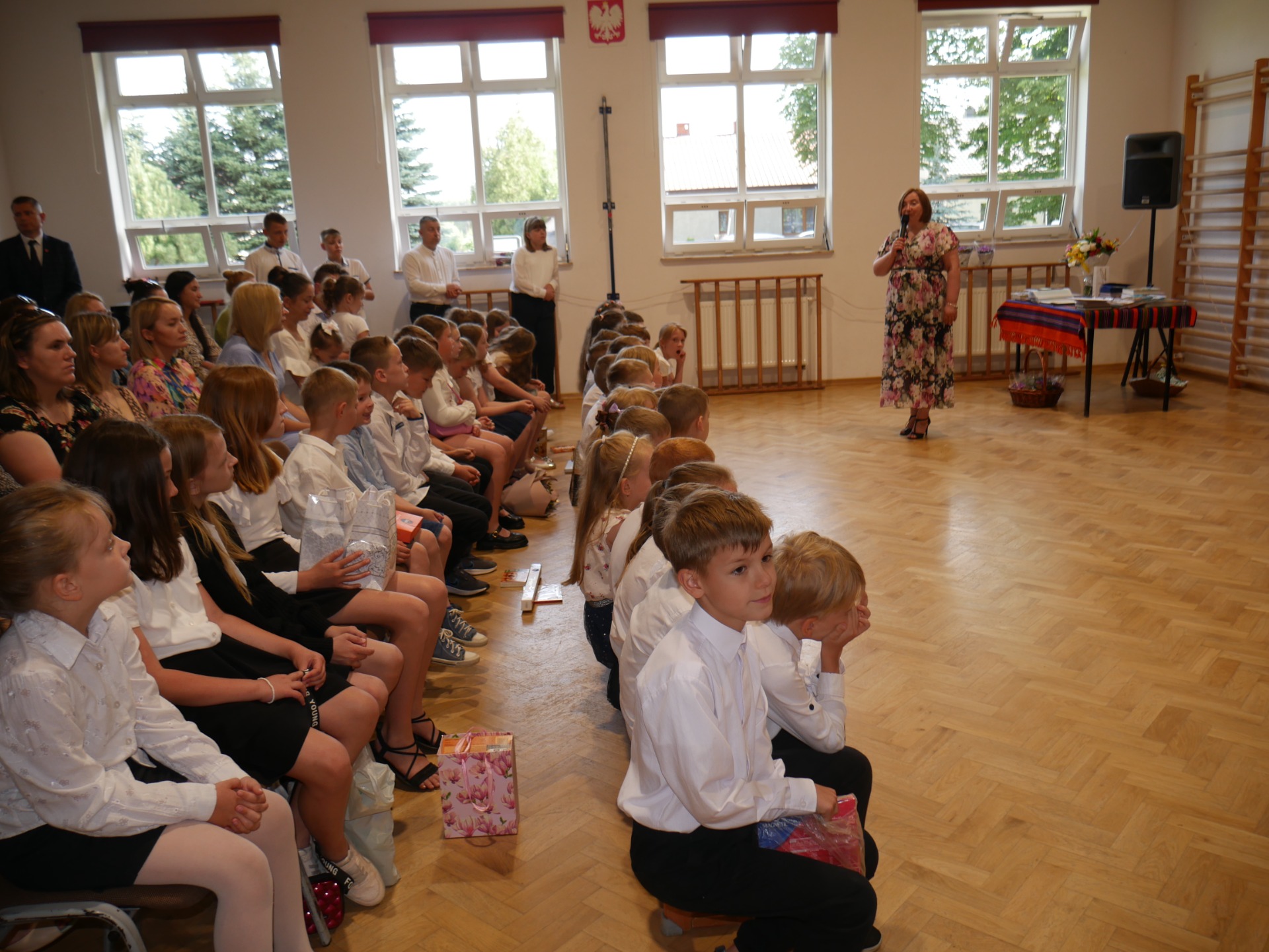 Piątek, 21 czerwca to dzień, na który czekali wszyscy uczniowie z utęsknieniem. To bowiem ostatni dzień roku szkolnego 2023/2024. Punktualnie o godz. 8.30 rozpoczęła się uroczystość w sali gimnastycznej na którą licznie przybyli rodzice, dziadkowie oraz przedstawiciele Rady Rodziców. Pani dyrektor dziękowała za ciężką pracę wszystkim uczniom. Duża grupa otrzymała świadectwa z wyróżnieniem i nagrody książkowe ufundowane przez Radę Rodziców.