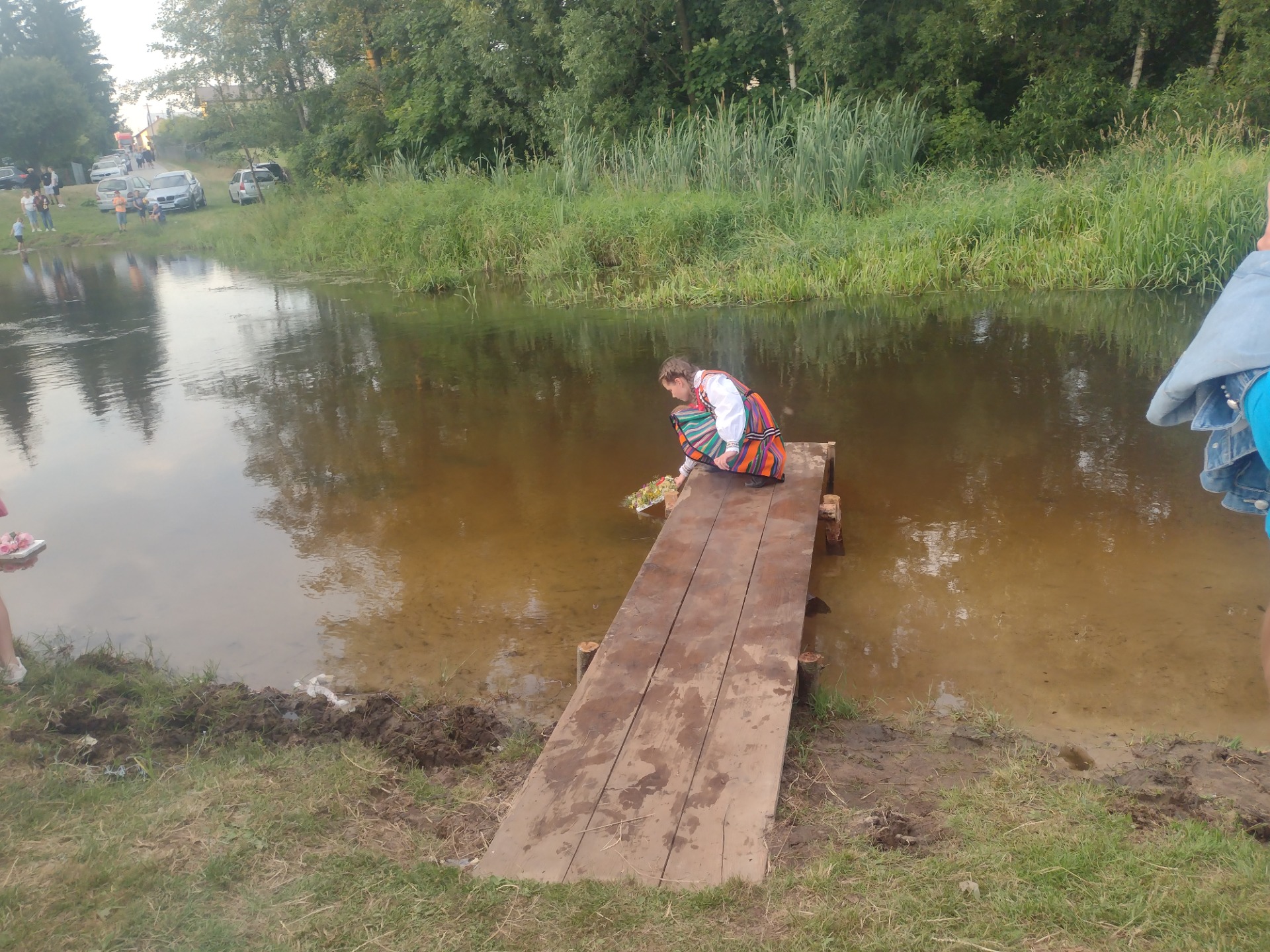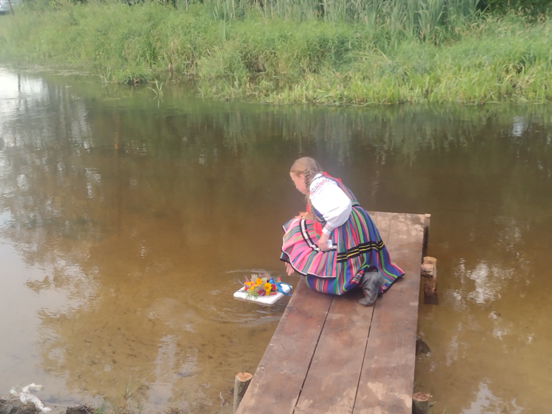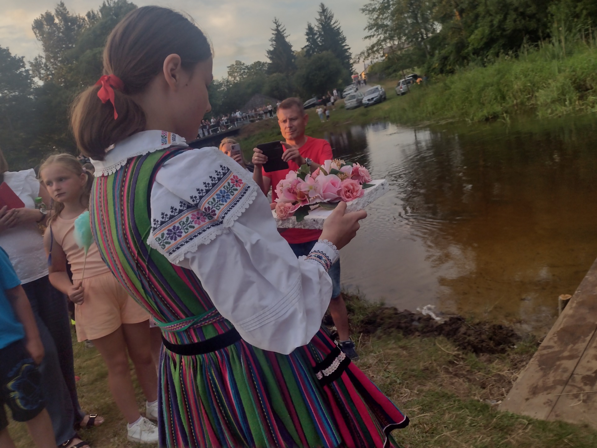 Dziewczęta wykonały piękny taniec wianków. Następnie Koniczynki ze śpiewem zaprezentowały dawny ludowy obrzęd puszczania wianków nad rzeką i przyśpiewki.