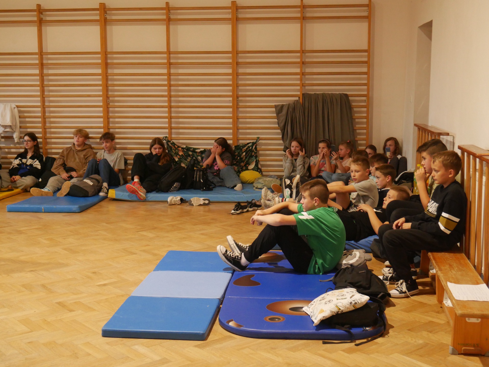 18 października w naszej szkole miało miejsce niecodzienne, wieczorne spotkanie. Nauczycielki biblioteki- p. Małgorzata Juźwik i p. Beata Biegała zaprosiły uczniów do świętowania ogólnopolskiej akcji Noc Bibliotek, która w tym roku nosiła przewrotny tytuł Moc Bibliotek. Wszyscy zgromadzili się w szkole o godzinie 17, by rozpocząć obchody odczytaniem- dedykowanego temu dniu - wiersza Małgorzaty Strzałkowskiej „Moc Bibliotek”. Następnie uczestnicy rywalizowali w quizie literacko- bibliotecznym i kalamburach. Zwycięska drużyna nagrodzona została drobnymi upominkami. Zmęczeni emocjami związanymi z rywalizacją uczniowie i opiekunowie posilili się zamówioną i dostarczoną pizzą. Kolejnym punktem obchodów Dnia bibliotek było obejrzenie filmu familijnego Mój brat ściga dinozaury inspirowanego bestsellerową książką Giacomo Mazzarioli. Jest to niezwykła opowieść o sile więzi rodzinnych, dorastaniu i odwadze bycia sobą.