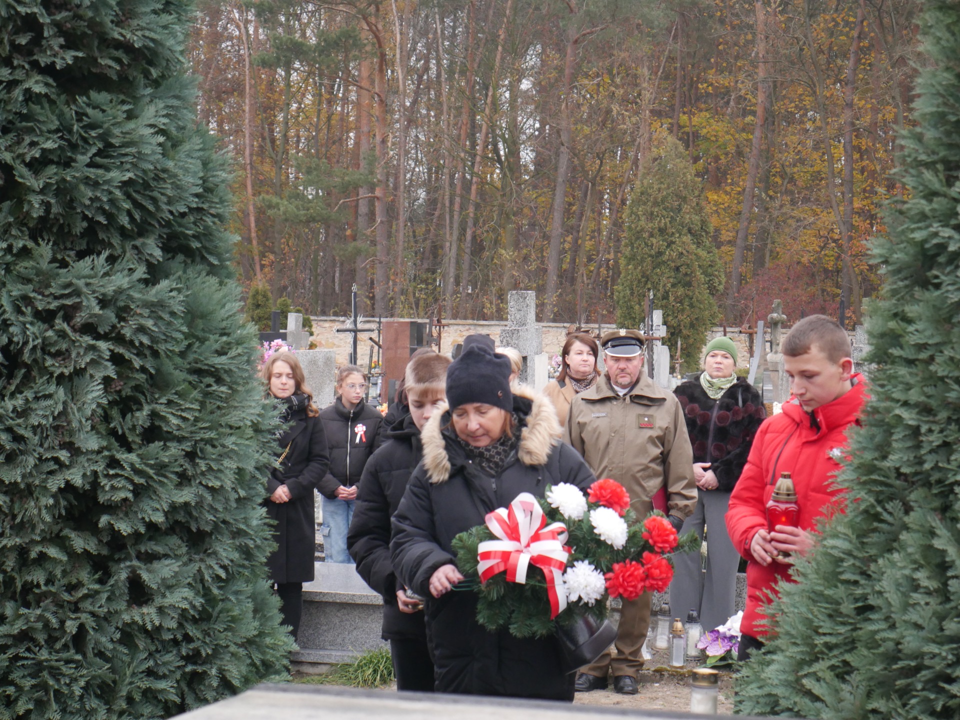 Delegacja uczniów i nauczycieli z p. dyrektor S. Sarną - Jurek wzięła udział w gminnych obchodach Świeta Niepodległości. Żłożone zostały wiązanki i zapalone znicze na grobie partyzantów OP AK "Błysk" i przed Pomnikiem Niepodległości w Paradyżu. Uczniów reprezentował Kacper Cąder i Adam Sikora.