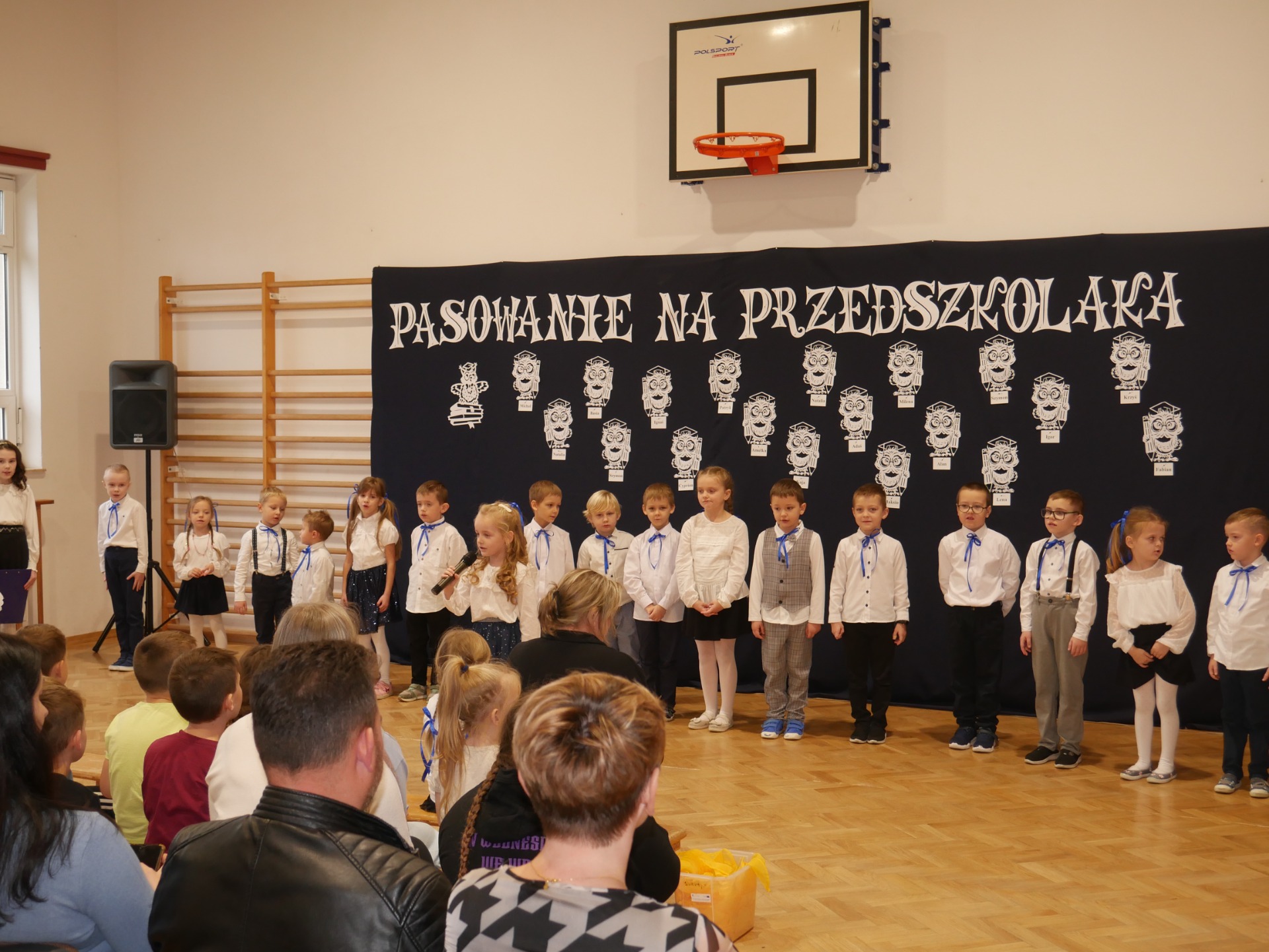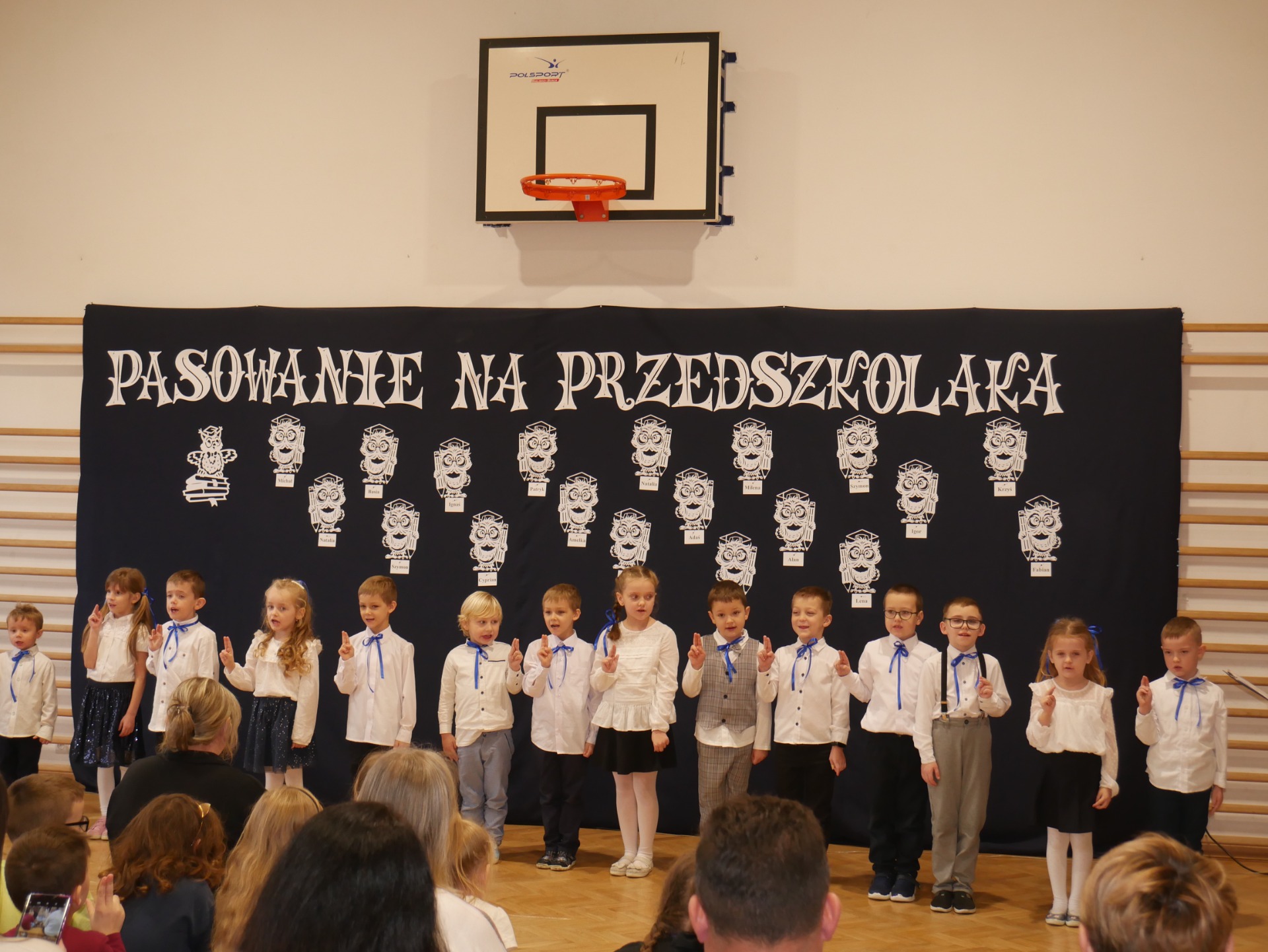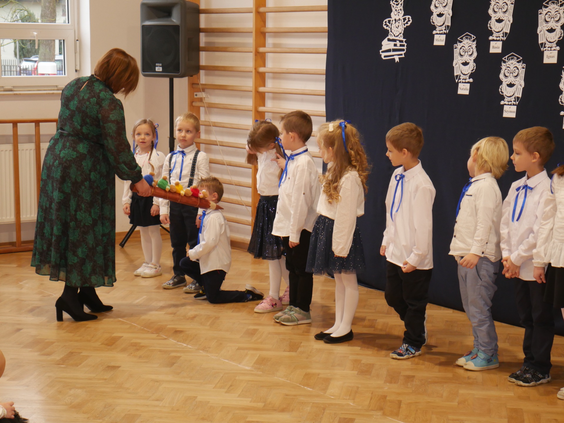 Następnie z wielkim zaangażowaniem przedszkolaki przedstawiły program artystyczny. Pięknie recytowały wierszyki, śpiewały piosenki i tańczyły. Zanim przystąpiono do ceremonii pasowania, przedszkolaki przekonały wszystkich zaproszonych gości o tym, że zasługują na miano PRZEDSZKOLAKA. Obiecały: zgodnie bawić się w przedszkolu, przychodzić każdego dnia z uśmiechem, słuchać pani, pomagać kolegom, być dzielnym przedszkolakiem. Po przyjęciu ślubowania PANI DYREKTOR dużym drewnianym ołówkiem w towarzystwie kolorowych misiów dokonała pasowania każdego przedszkolaka. Na pamiątkę tego ważnego wydarzenia dzieci otrzymały dyplomy, kuferki obfitości oraz upominki ufundowane przez rodziców i radę rodziców. Duma rozpierała każdego maluszka, a także rodziców, którzy z uśmiechem i wzruszeniem patrzyli na swoje pociechy.