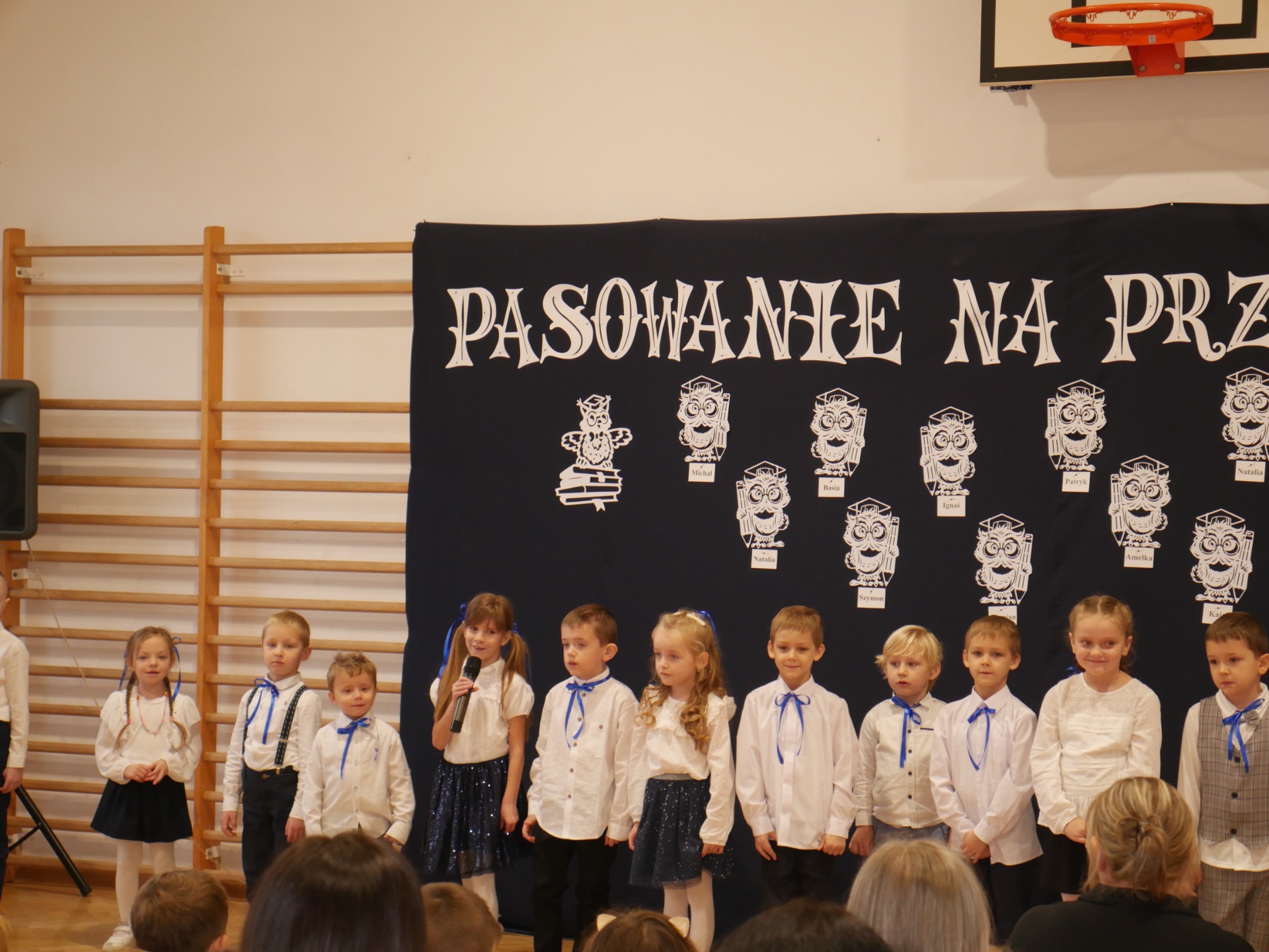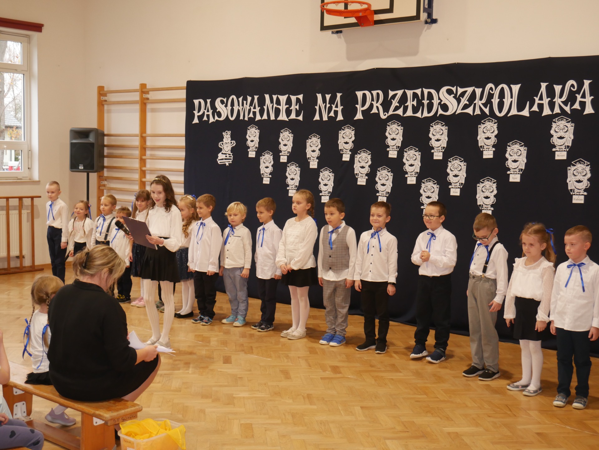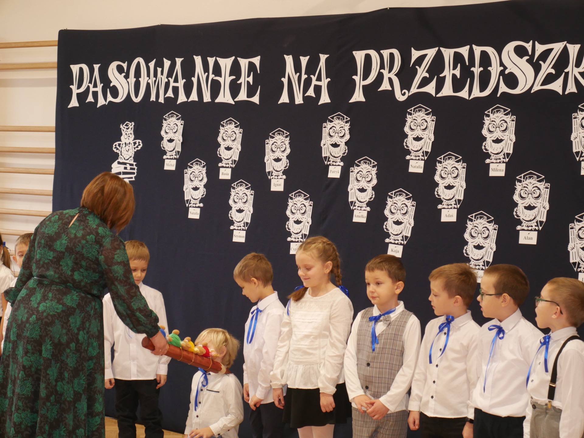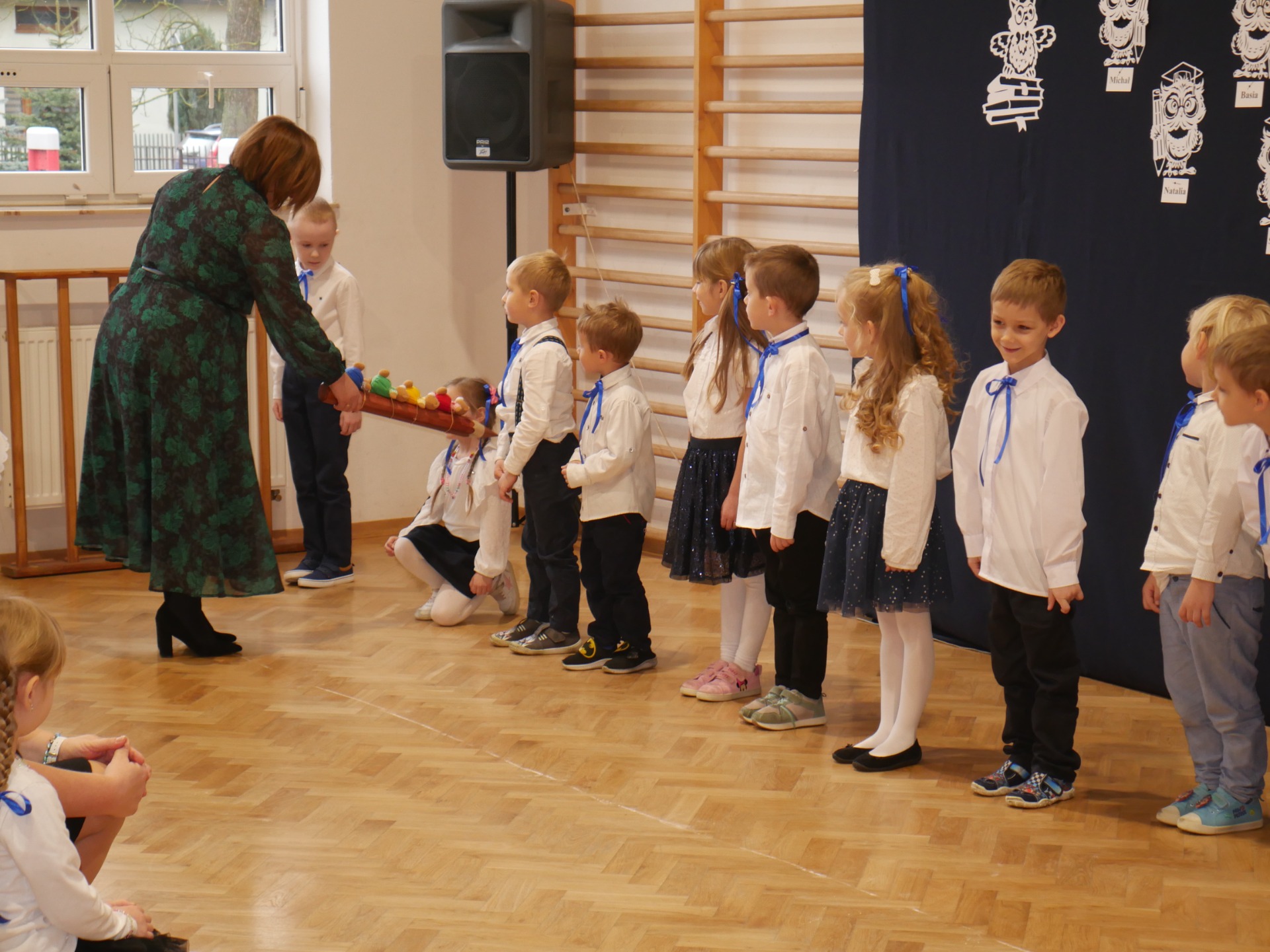 Następnie z wielkim zaangażowaniem przedszkolaki przedstawiły program artystyczny. Pięknie recytowały wierszyki, śpiewały piosenki i tańczyły. Zanim przystąpiono do ceremonii pasowania, przedszkolaki przekonały wszystkich zaproszonych gości o tym, że zasługują na miano PRZEDSZKOLAKA. Obiecały: zgodnie bawić się w przedszkolu, przychodzić każdego dnia z uśmiechem, słuchać pani, pomagać kolegom, być dzielnym przedszkolakiem. Po przyjęciu ślubowania PANI DYREKTOR dużym drewnianym ołówkiem w towarzystwie kolorowych misiów dokonała pasowania każdego przedszkolaka. Na pamiątkę tego ważnego wydarzenia dzieci otrzymały dyplomy, kuferki obfitości oraz upominki ufundowane przez rodziców i radę rodziców. Duma rozpierała każdego maluszka, a także rodziców, którzy z uśmiechem i wzruszeniem patrzyli na swoje pociechy.