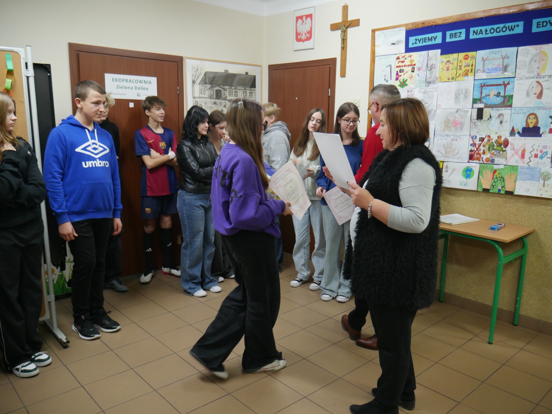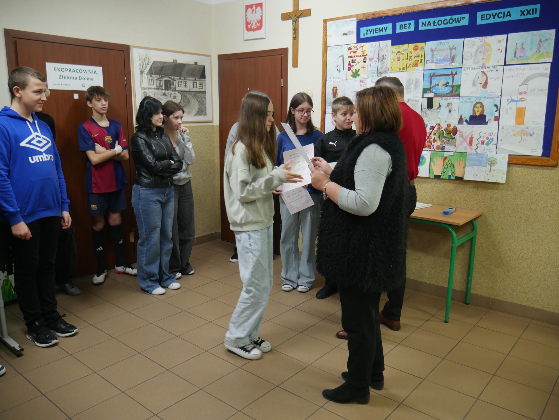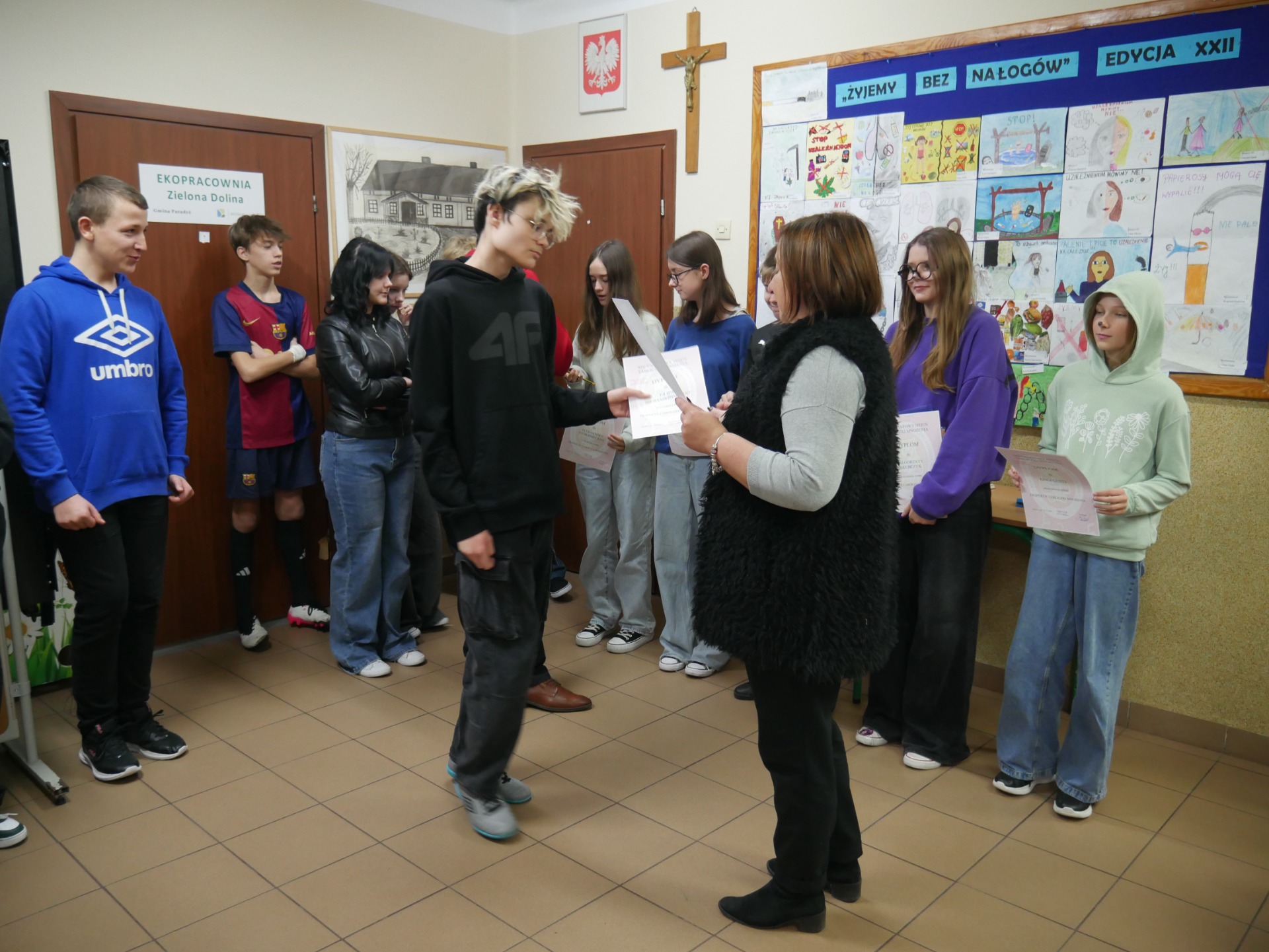 Gusta Magdalena kl. IV, Jakubczyk Małgorzata kl. VI, Gusta Kinga kl. VI, Sikora Adam kl. VII, Stobieniecka Aleksandra kl. VIII, Wróblewska Nikola kl. VIII, Cąder Kacper kl. VIII i Niewiadomski Filip kl. VIII.