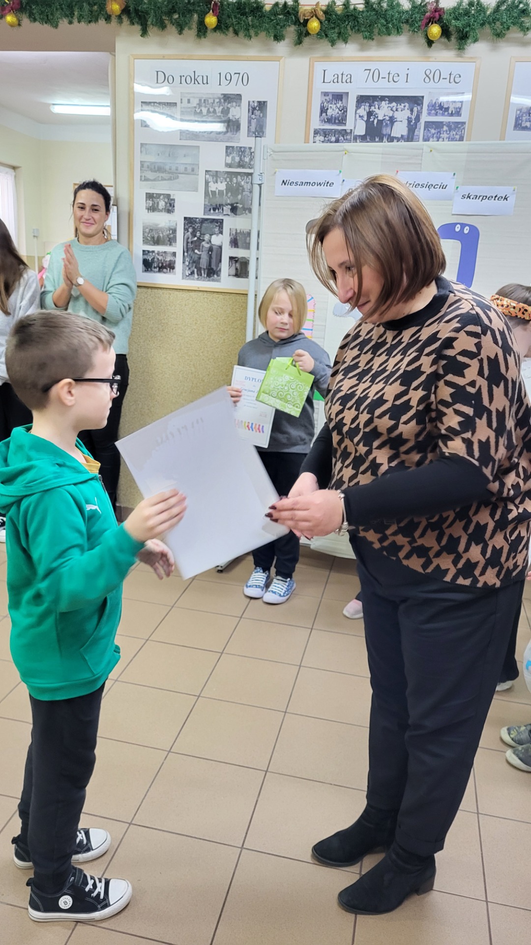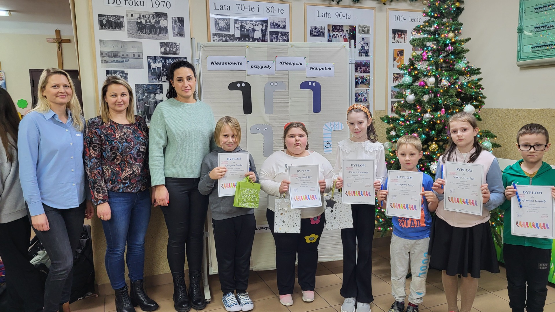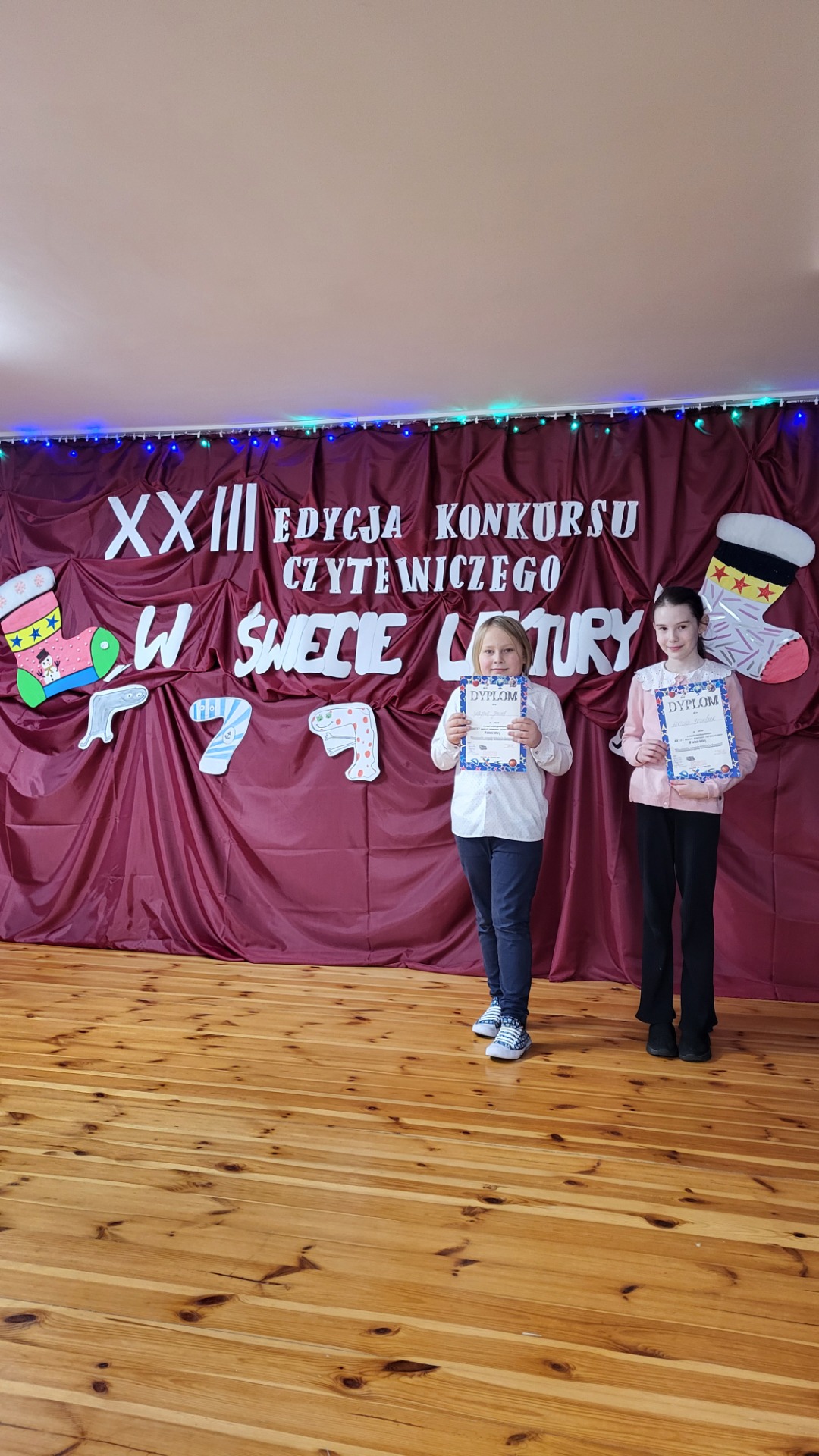 Trzeciego grudnia w naszej szkole odbył się konkurs czytelniczy. Uczniowie klas I-III mieli okazję wykazać się wiedzą ze znajomości treści lektury pod tytułem "Niesamowite przygody dziesięciu skarpetek" autorstwa Justyny Bednarek. Do konkursu przystąpiło sześcioro uczestników. Ich zadaniem było udzielenie ustnej odpowiedzi na 12 pytań jednego z trzech przygotowanych zestawów. Komisja konkursowa przydzielała odpowiednią ilość punktów w zakresie od 0-4, w zależności od stopnia posiadanej wiedzy. Zwyciężczynią konkursu została Wiktoria Bednarek z klasy III. Drugie miejsce zajęła Lena Malicka - uczęszcająca również do klasy III. Na zwycięskim podium stanął także Gracjan Janik z klasy II, zajmując III miejsce. Wymienione osoby zakwalifikowały się do etapu międzygminnego tegoż konkursu. Dyplom uczestnictwa otrzymali: Szczepan Sowa, Wojciech Głąbała i Milena Brzeska.