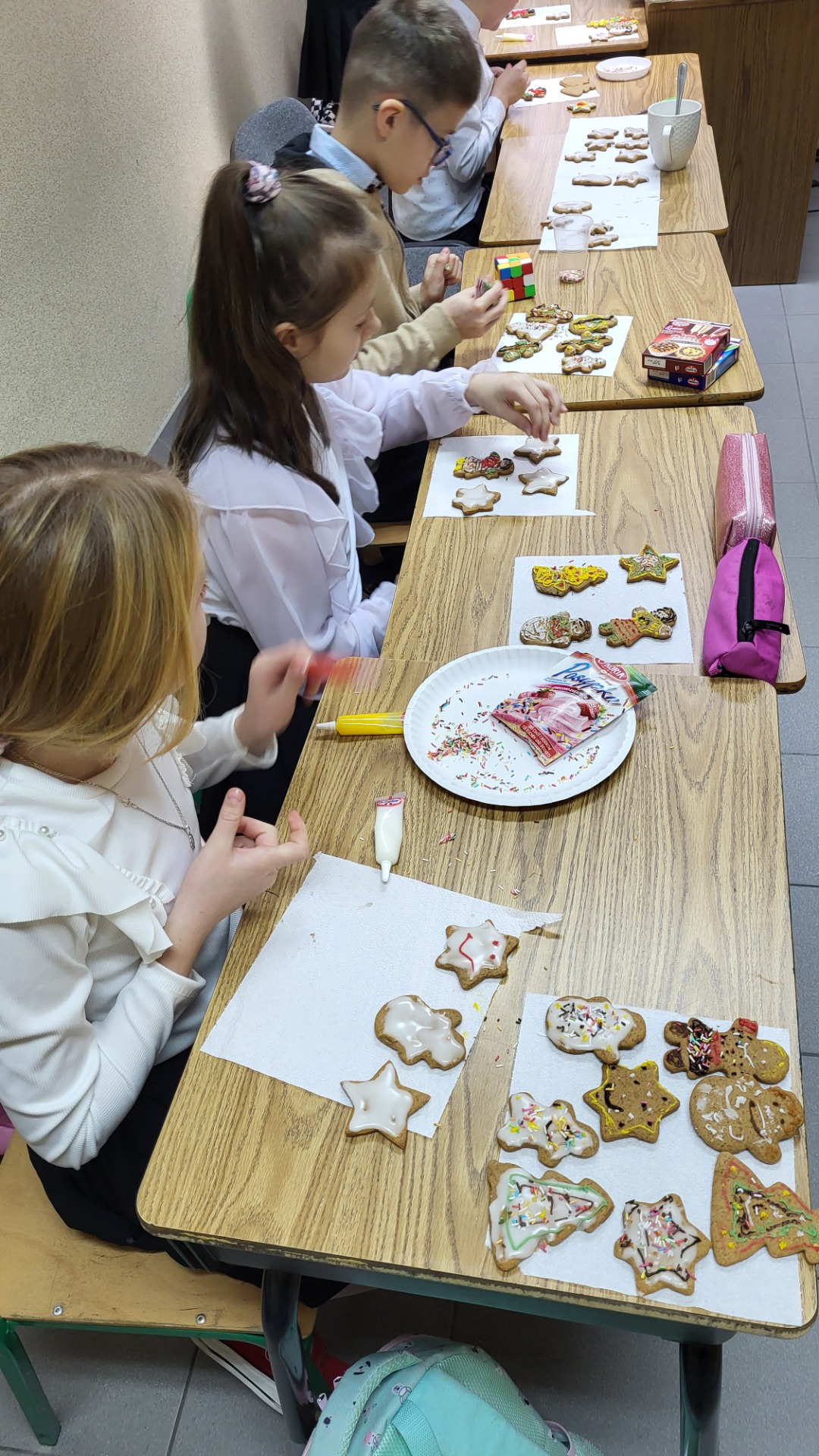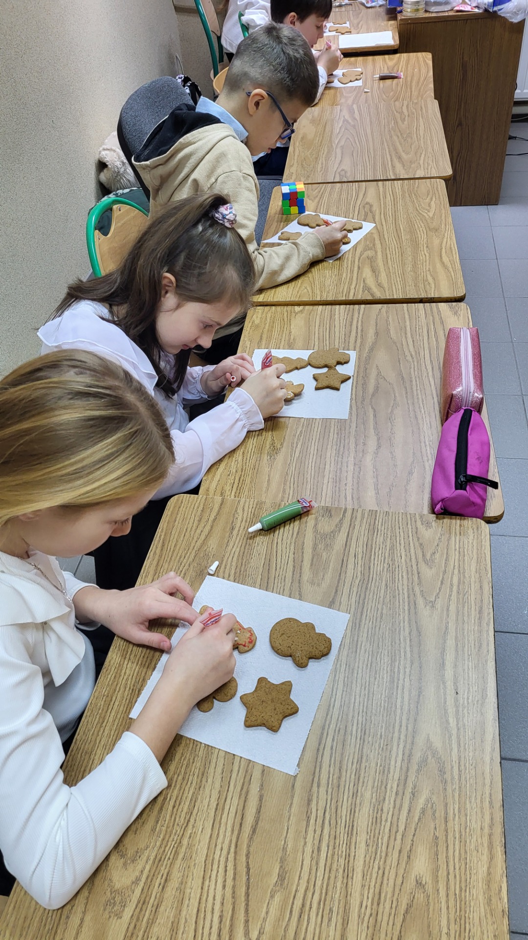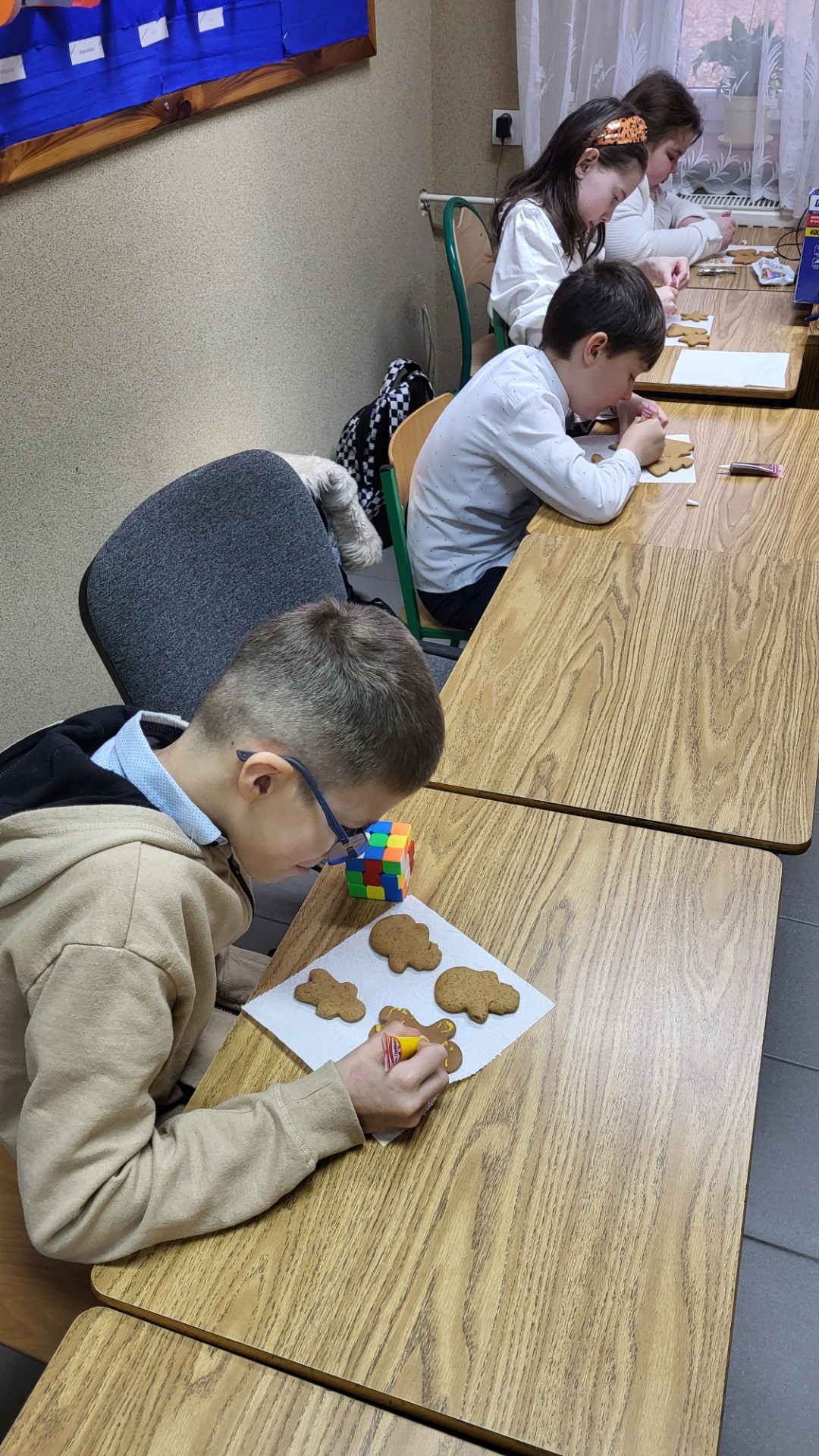 Uczniowie klasy III z zapałem cukierników przygotowali świąteczne pierniczki. Korzystając z przepisu połączyli składniki i zagnietli ciasto. Po rozwałkowaniu przygotowanej masy, przystąpili do wykrawania pierniczków w różnych kształtach. Pieczenie rozniosło po szkolne zapach przyprawy korzennej i sprawiło, że "poczuliśmy" święta. Trzecioklasiści nie mogą się doczekać konsumpcji swoich wypieków, a ta nastąpi podczas wspólnej wigilii.