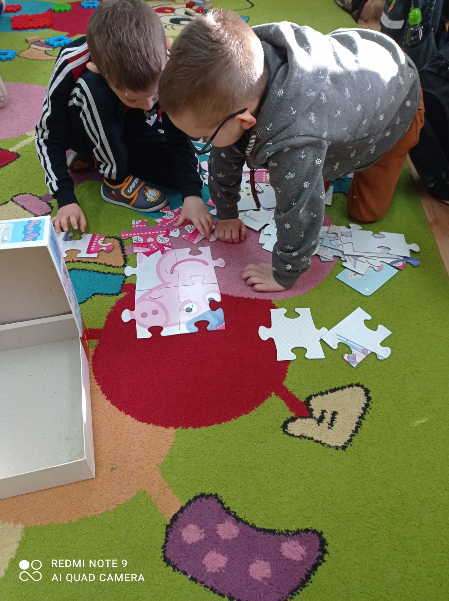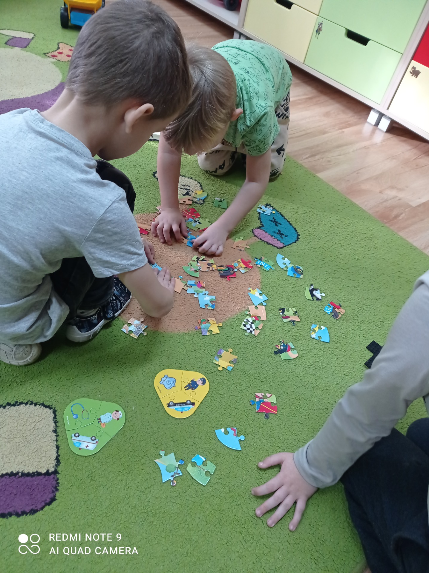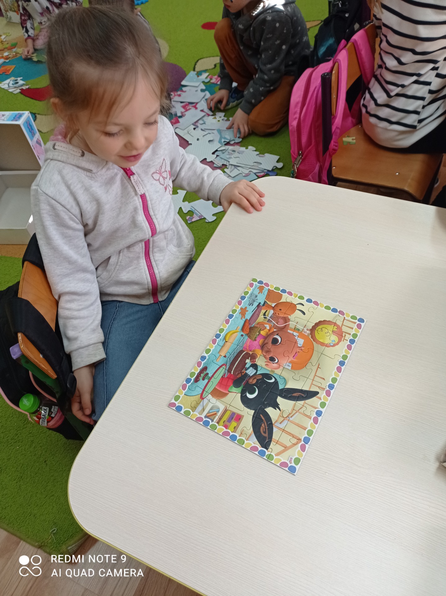 29 stycznia nasze przedszkolaki z radością obchodziły Międzynarodowy Dzień Puzzli - jedno z wielu nietypowych świąt. Jak wiadomo, układanie puzzli to świetna zabawa, która posiada walory edukacyjne. To znakomity trening pamięci i koncentracji, który dodatkowo uczy rozpoznawania kształtów oraz logicznego myślenia. Puzzle rozwijają też wiarę we własne możliwości, ćwiczą sprawność manualną dłoni, wytrwałość i cierpliwość, są świetną porcją zabawy i nauki. Zabawa puzzlami od najmłodszych lat sprawia, że dziecko rozwija tak zwaną zdolność analizy i syntezy wzrokowej, czyli rozkładania całości na poszczególne elementy i ponownego składania ich w całość. Ponadto stymulują one rozwój mózgu oraz ćwiczą spostrzegawczość. Dzieci układały puzzle różnorodnych rodzajów, jednak najwięcej radości dostarczyło im stworzenie swoich własnych puzzli!.