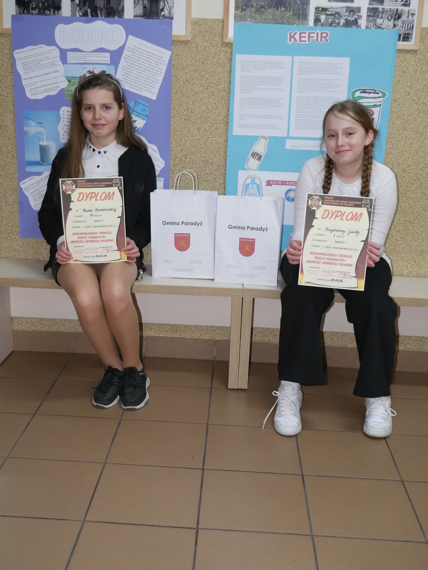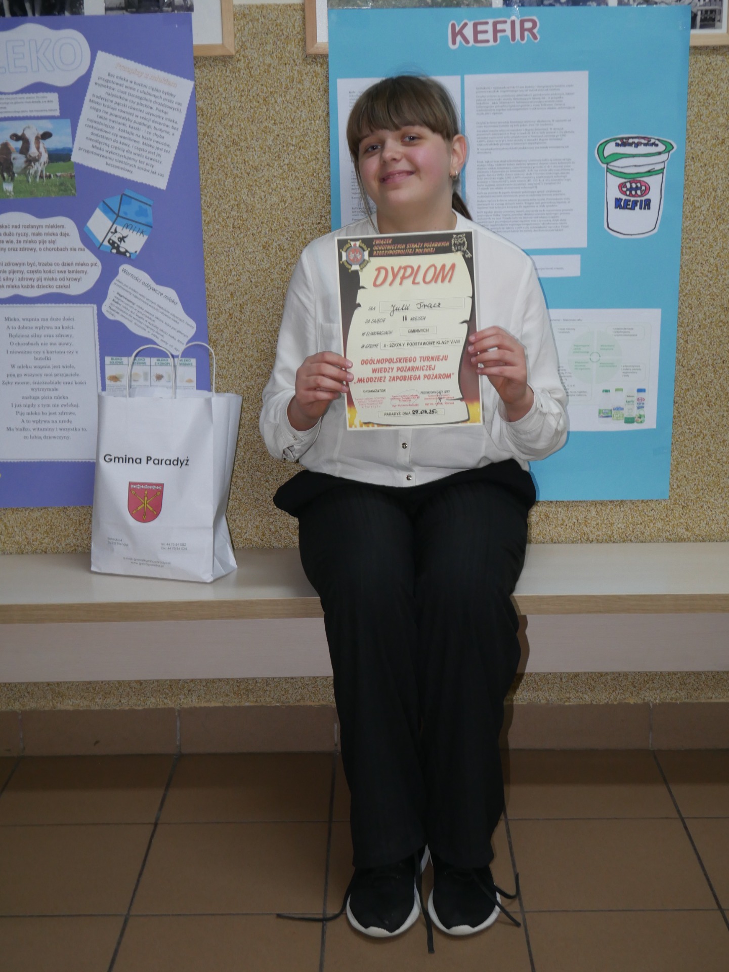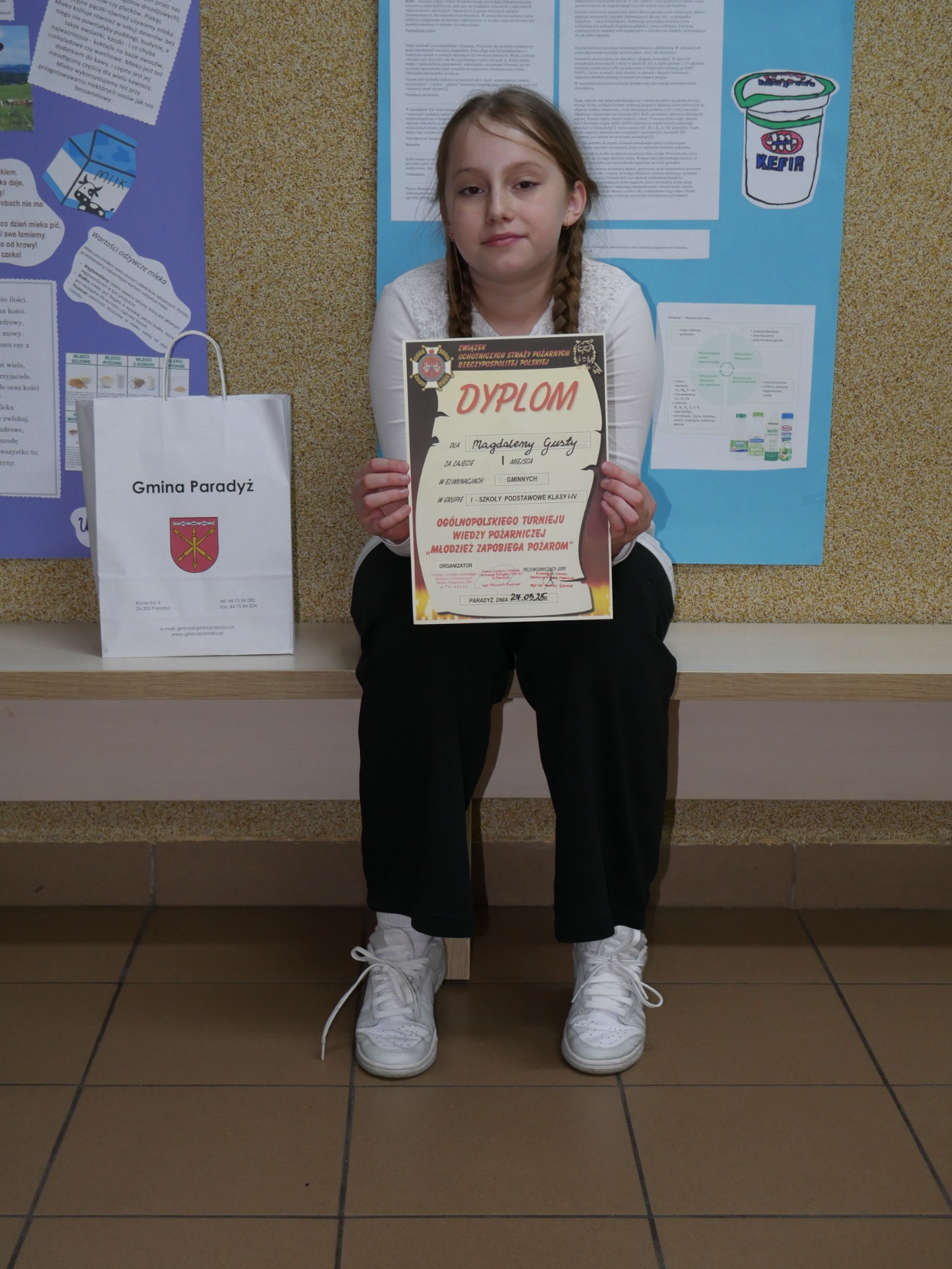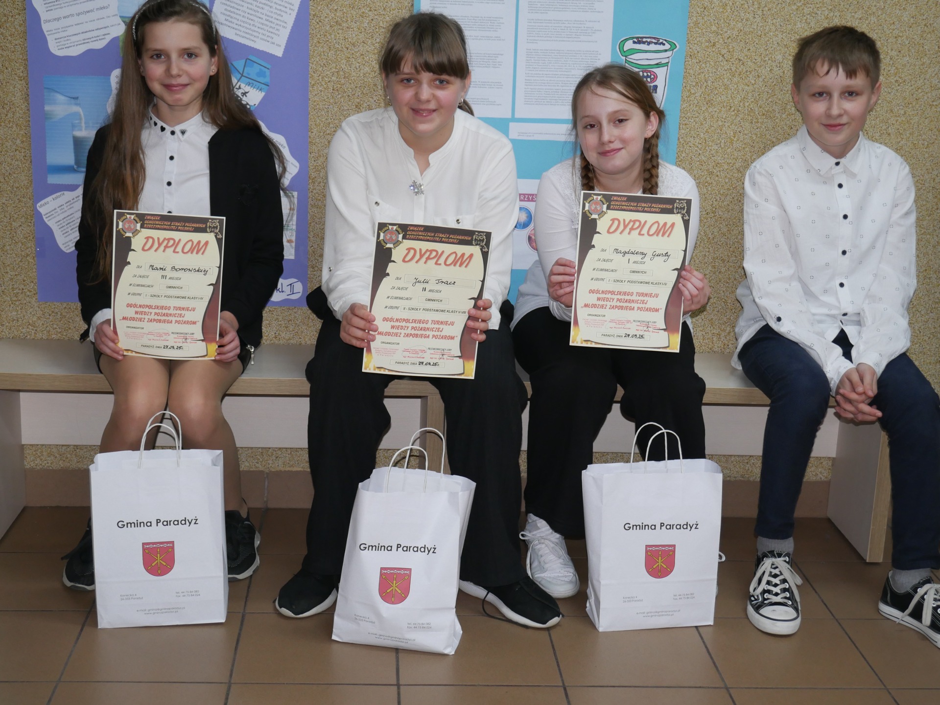 Nagrody rzeczowe i pamiątkowe dyplomy ufundował Urząd Gminy w Paradyżu, a wręczał Wójt Gminy Paradyż – Wojciech Rudalski wraz ze st. bryg. Andrzejem Śpiewakiem. Zwycięzcy w poszczególnych grupach wiekowych będą reprezentowali Gminę Paradyż na eliminacjach powiatowych w dniu 11 kwietnia br., które odbędą się w siedzibie Komendy Powiatowej PSP w Opocznie. Uczniów do konkursu przygotowała Pani Beata Biegała.