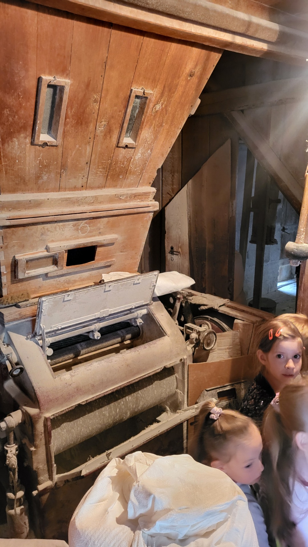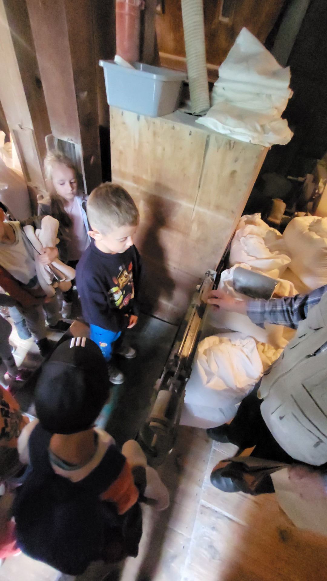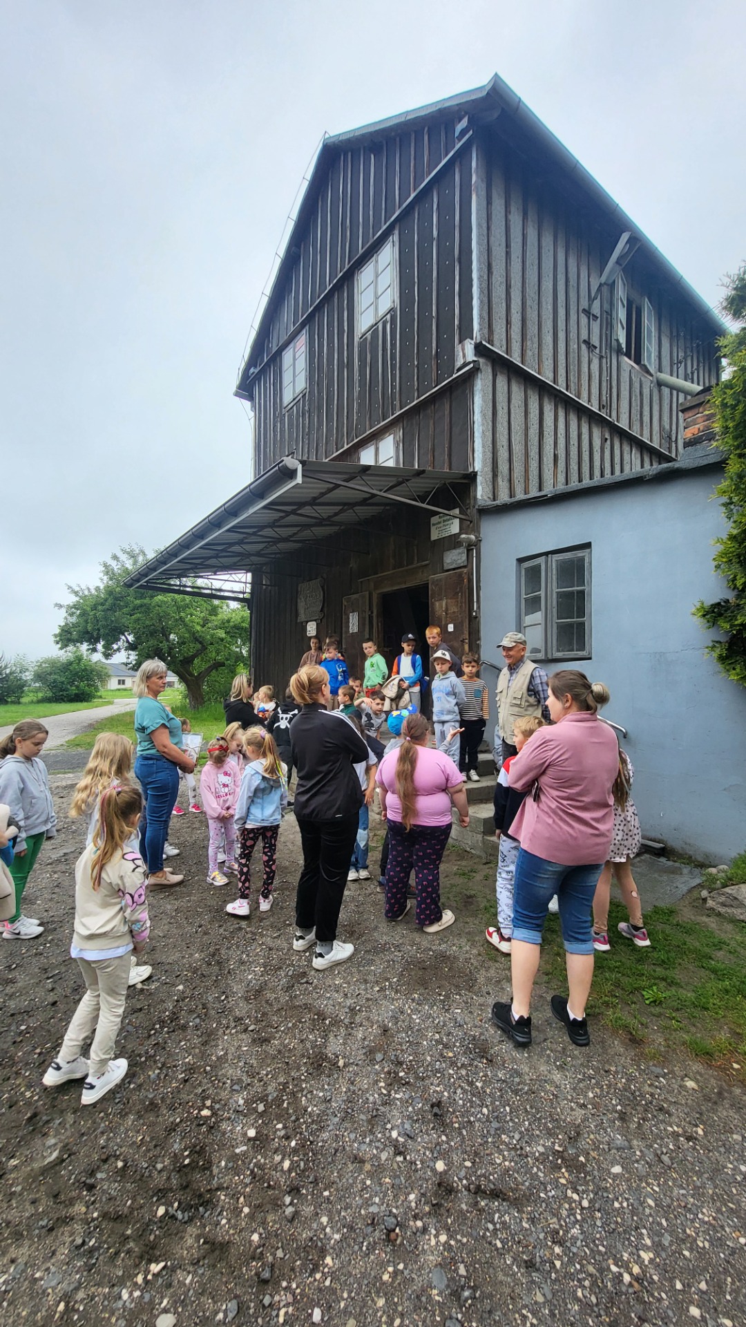 W dniu 03.06.2025r., uczniowie klas 0 – III wraz z opiekunami wybrali się na wycieczkę do Grążowic oraz Januszewic. Pierwszym punktem wyjazdu była wizyta w młynie w Grążowicach. Dzieci miały okazję odwiedzić zabytkowy młyn. Właścicielem młyna jest Pan Ryszard Kupis. Miejsce to zrobiło na wszystkich bardzo duże wrażenie. Uczniowie zwiedzili młyn, poznali i zobaczyli cały proces produkcji mąki od ziarenka do gotowego produktu z wykorzystaniem znajdujących się tam maszyn. Miały okazję również poznać pracę młynarza - dziś już tak zapomnianego zawodu. Pan Ryszard bardzo ciekawie i z zaangażowaniem opowiadał o historii tego miejsca, zaprezentował eksponaty prawdziwej rzemieślniczej pracy młynarza oraz cierpliwie odpowiadał na wszystkie pytania. Pokazał w jaki sposób działają maszyny, jak przerabiane jest zboże począwszy od przyjęcia w młynie, aż do momentu gdy mąka trafia do piekarni, cukierni lub do sklepu.
