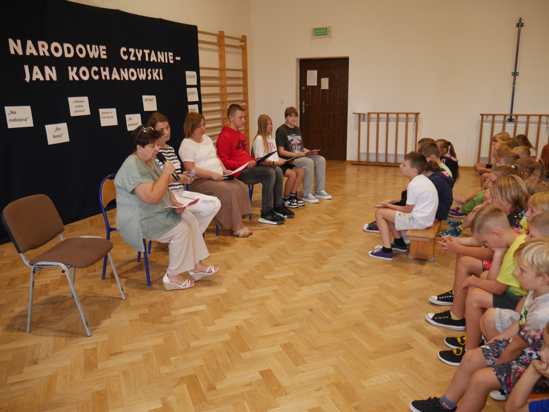 Swoje interpretacje utworów Jana Kochanowskiego zaprezentowali: p. dyrektor Sylwia Sarna- Jurek, p. Małgorzata Juźwik, p. Małgorzata Wilk, Julia Tracz, Adam Sikora i Kinga Gusta.