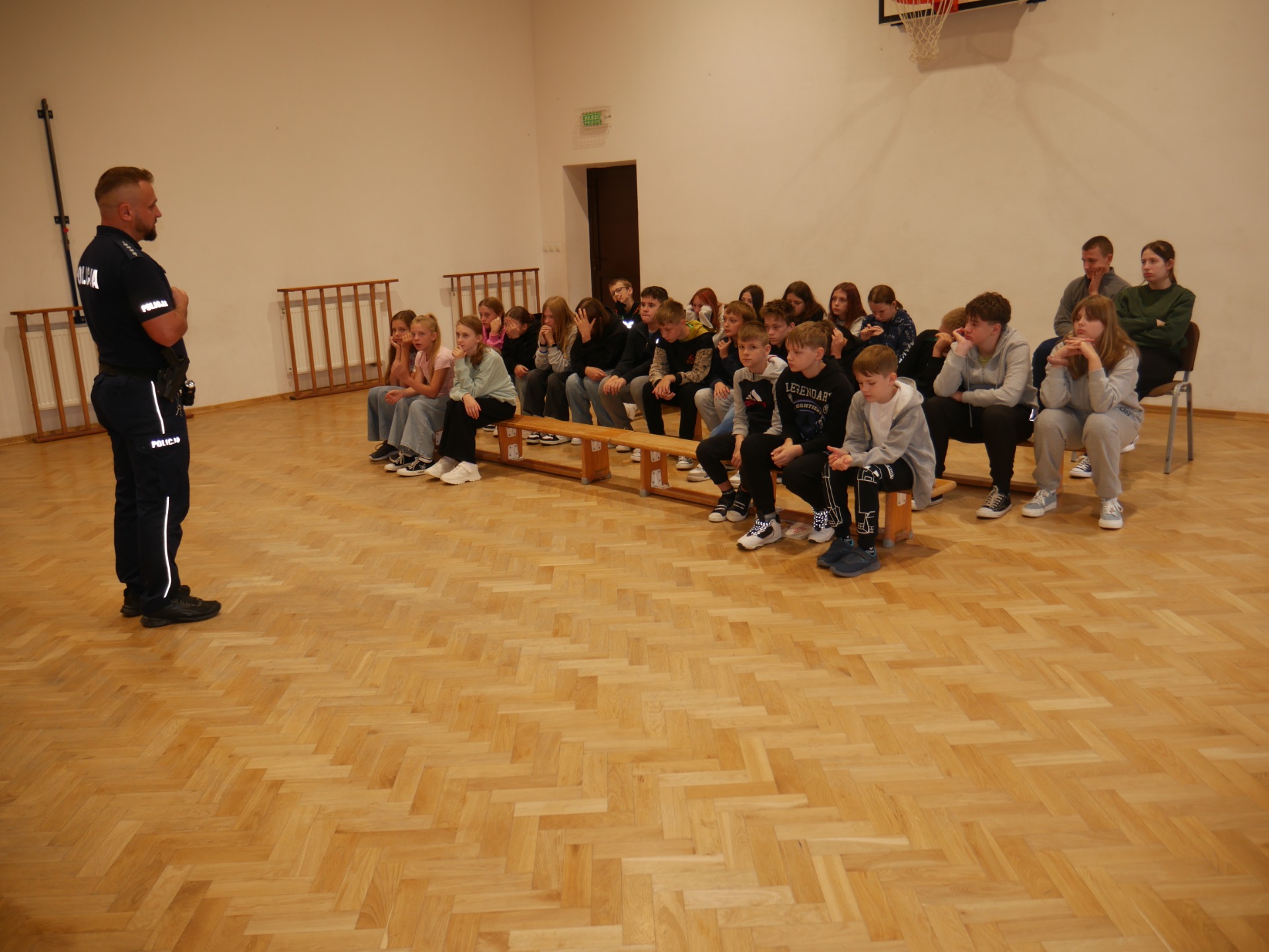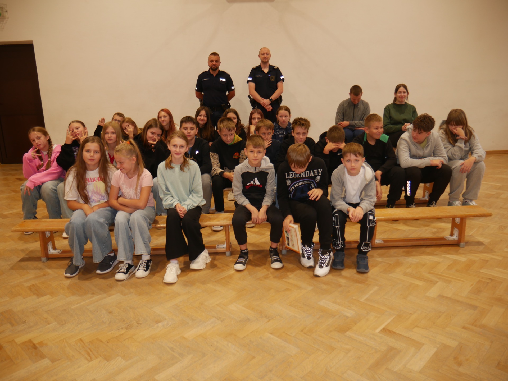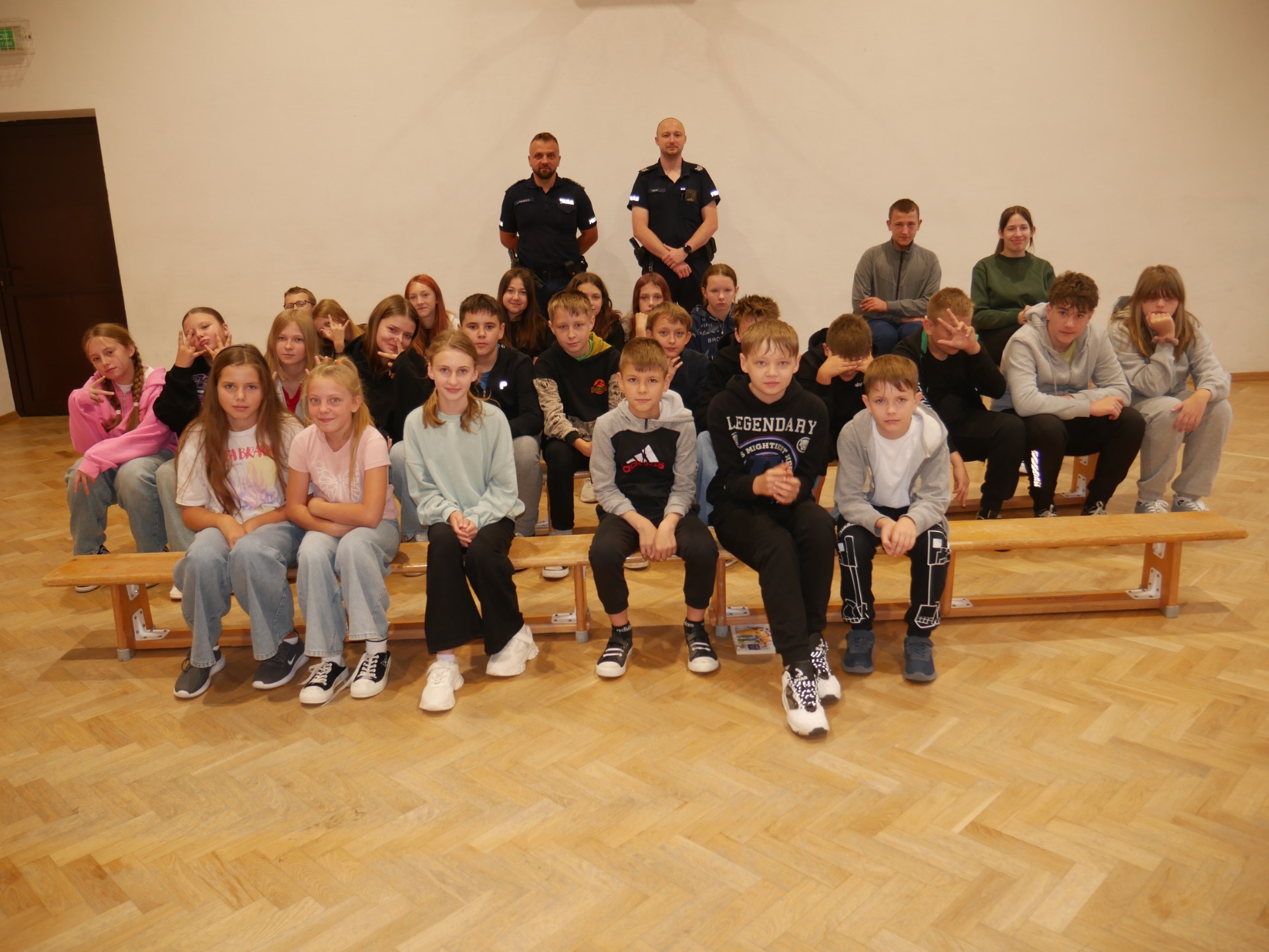 Panowie policjanci poinformowali uczniów o zagrożeniach płynących z poruszania sie po drogach jak również z udziałem w mediach społecznościowych.