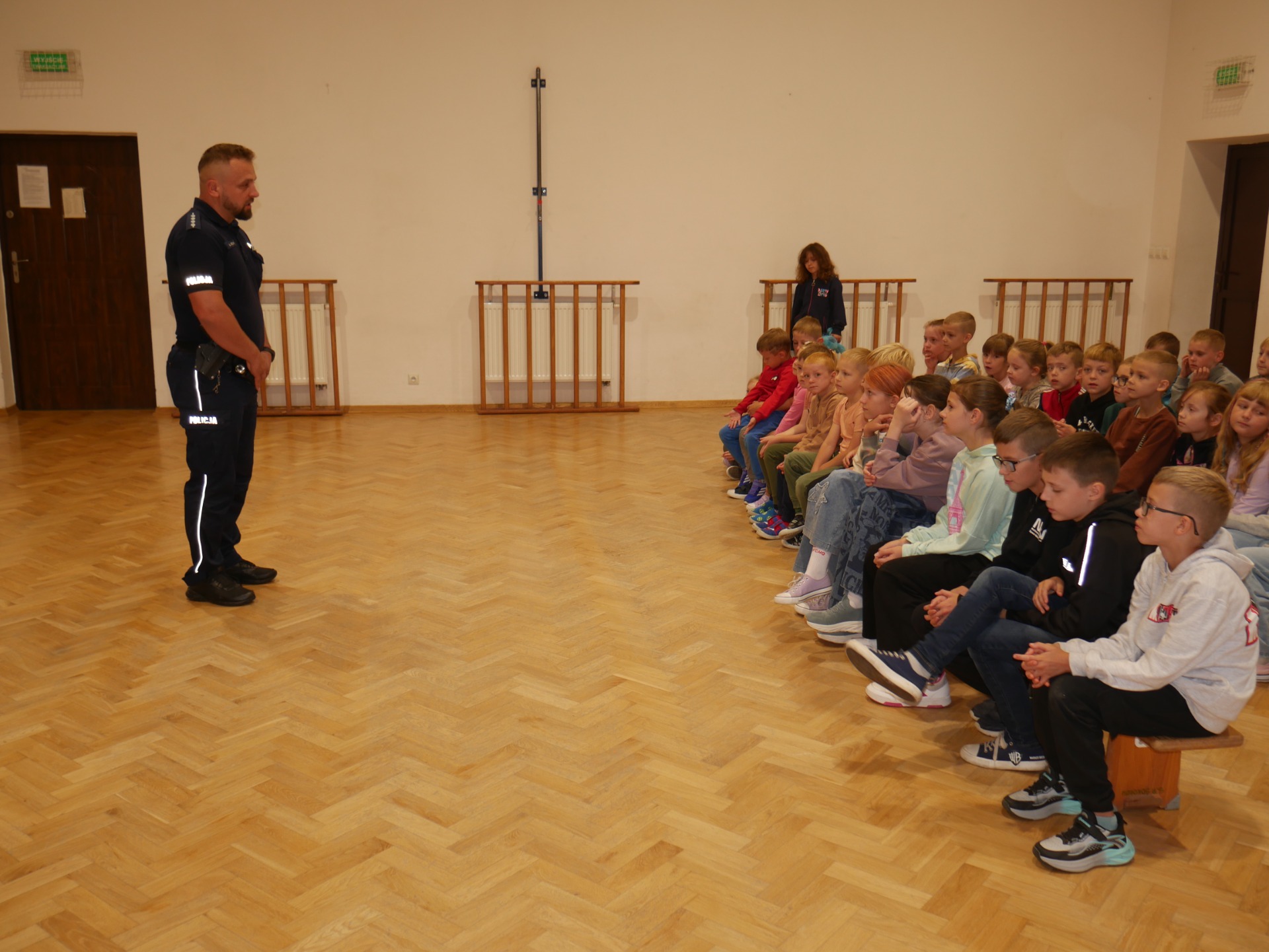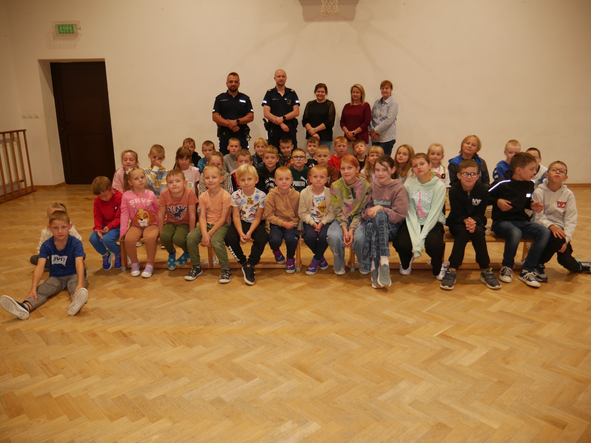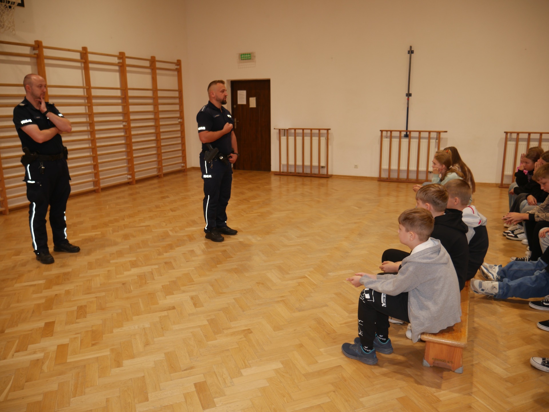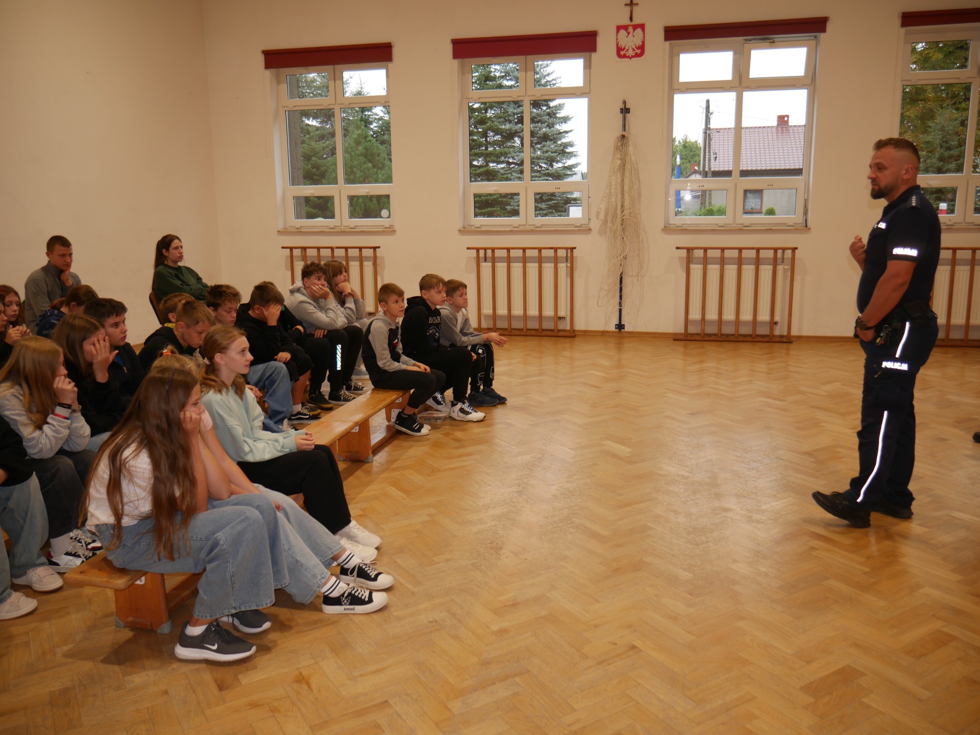 Panowie policjanci poinformowali uczniów o zagrożeniach płynących z poruszania sie po drogach jak również z udziałem w mediach społecznościowych.