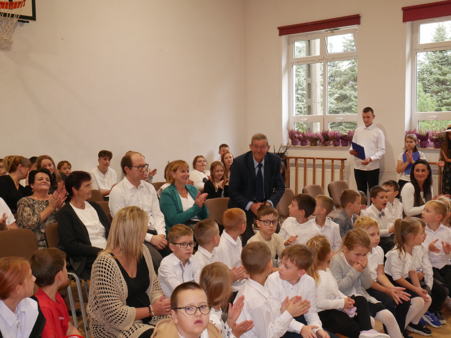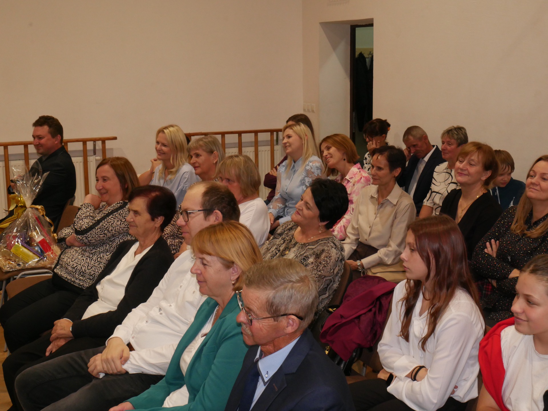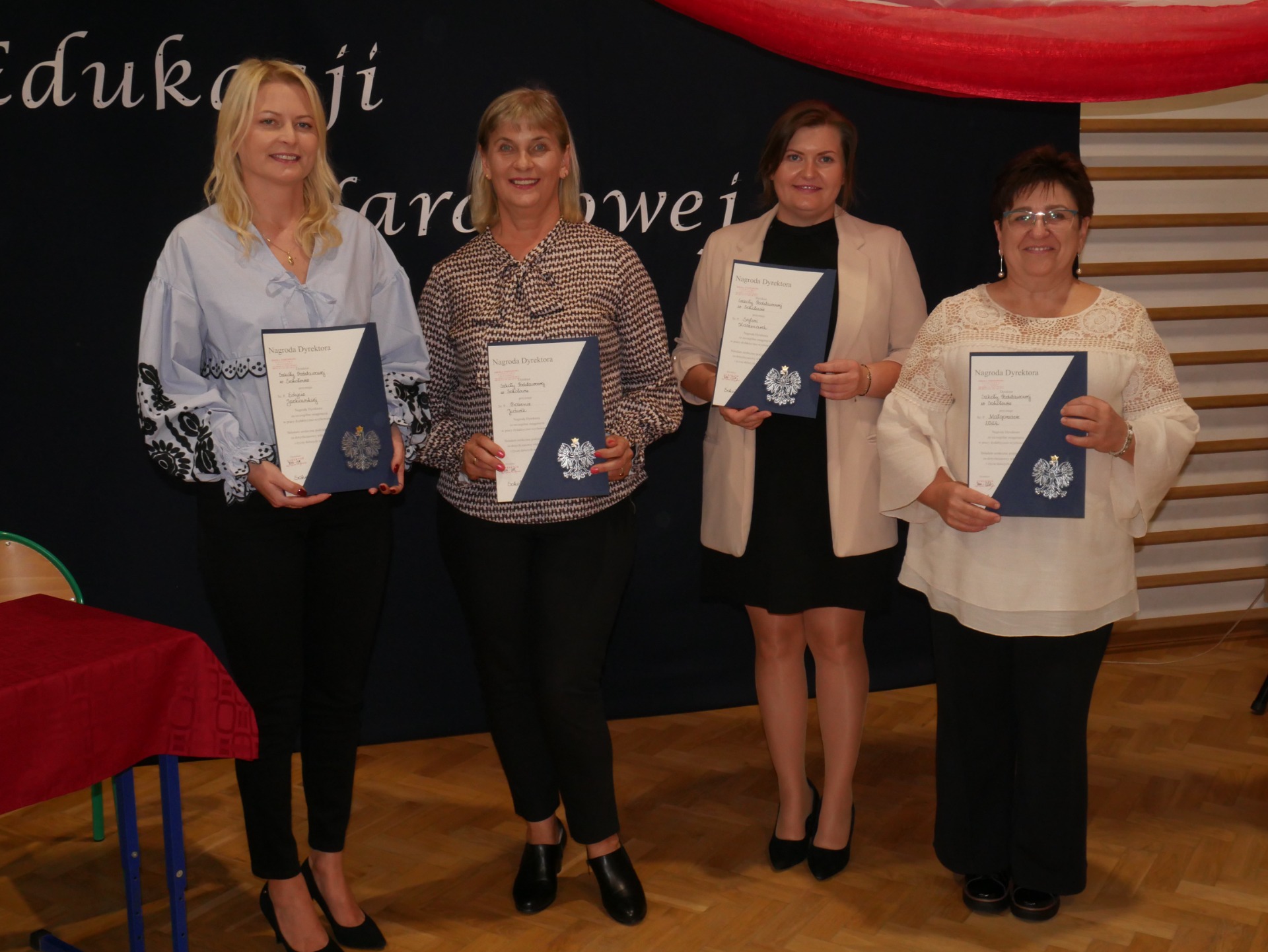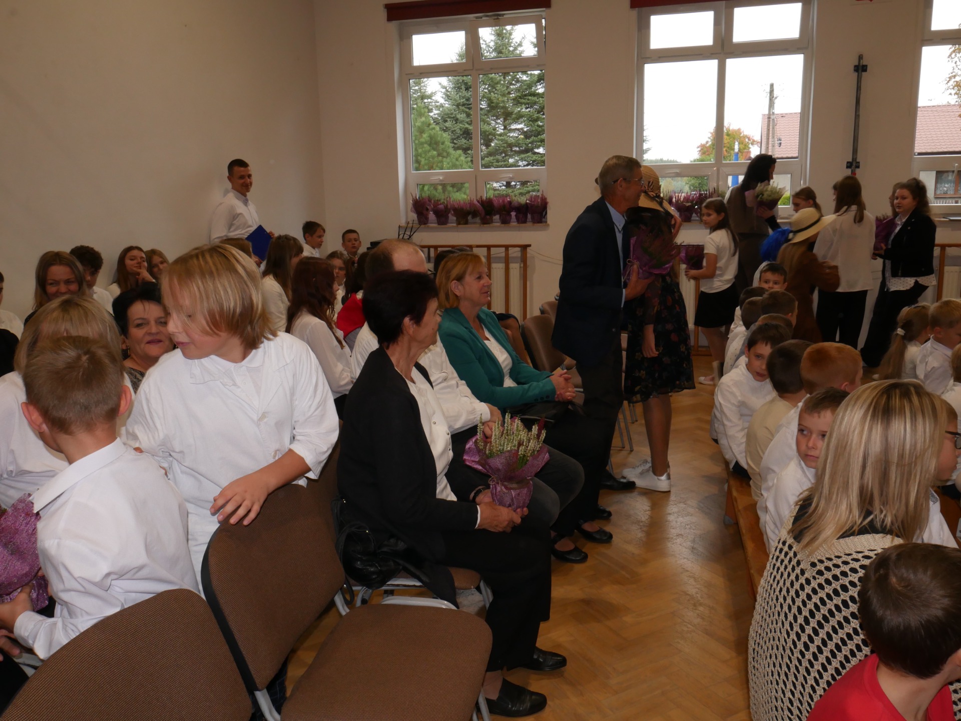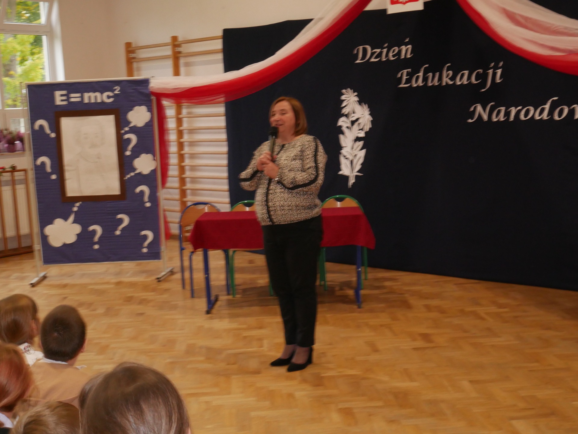 Uroczystość rozpoczęła się od Hymnu i powitania przybyłych gości w osobach: p. Anny Gliszczyńskiej, p. Stanisława Kamińskiego, p. Jolanty Gajzler, p. Bożeny Juźwik, p. przewodniczacego Gąsiorowskiego oraz p. Haliny Biniek z kapelą i wszystkich pozostałych uczestników. Uczniowie uświetnili uroczystość słowno - muzycznym występem, pełnym humoru i zabawy. Pracownicy szkoły zostali obdarowani pięknymi kwiatami - wrzosami. Pani dyrektor Sylwia Sarna - Jurek wręczła nagrody dla nauczycieli i pracowników administracji. Otrzymali je państwo: Edyta Jackowska, Bożena Juźwik, Sylwia Kaczmarek, Małgorzata Wilk, Dorota Pawlik, Zuzanna Wiktorowicz, Przemysław Borowski i Grzegorz Pawlik. Przewodniczący Rady Rodziców podziękował za miłą wspólpracę i wręczył na ręce p. dyrektor słodki upominek