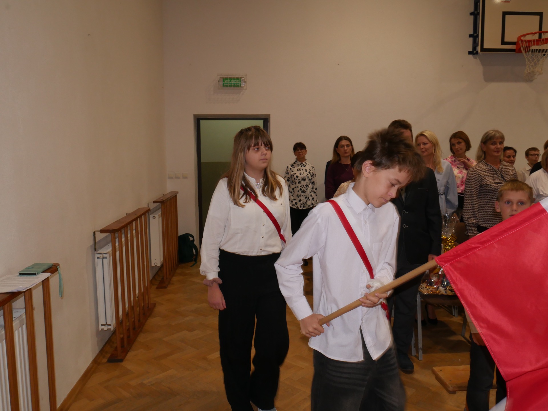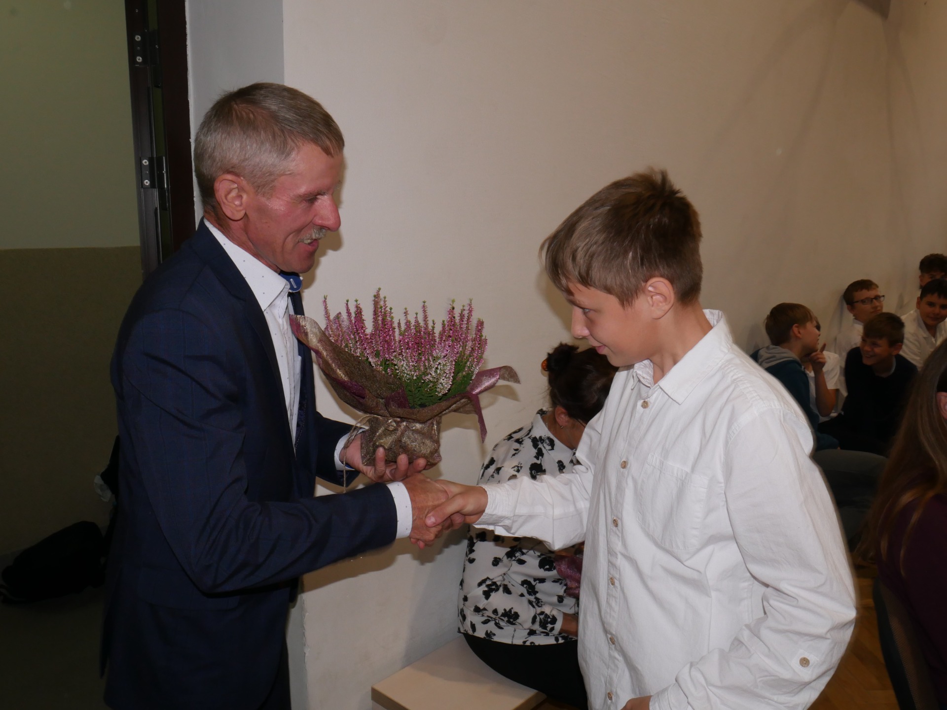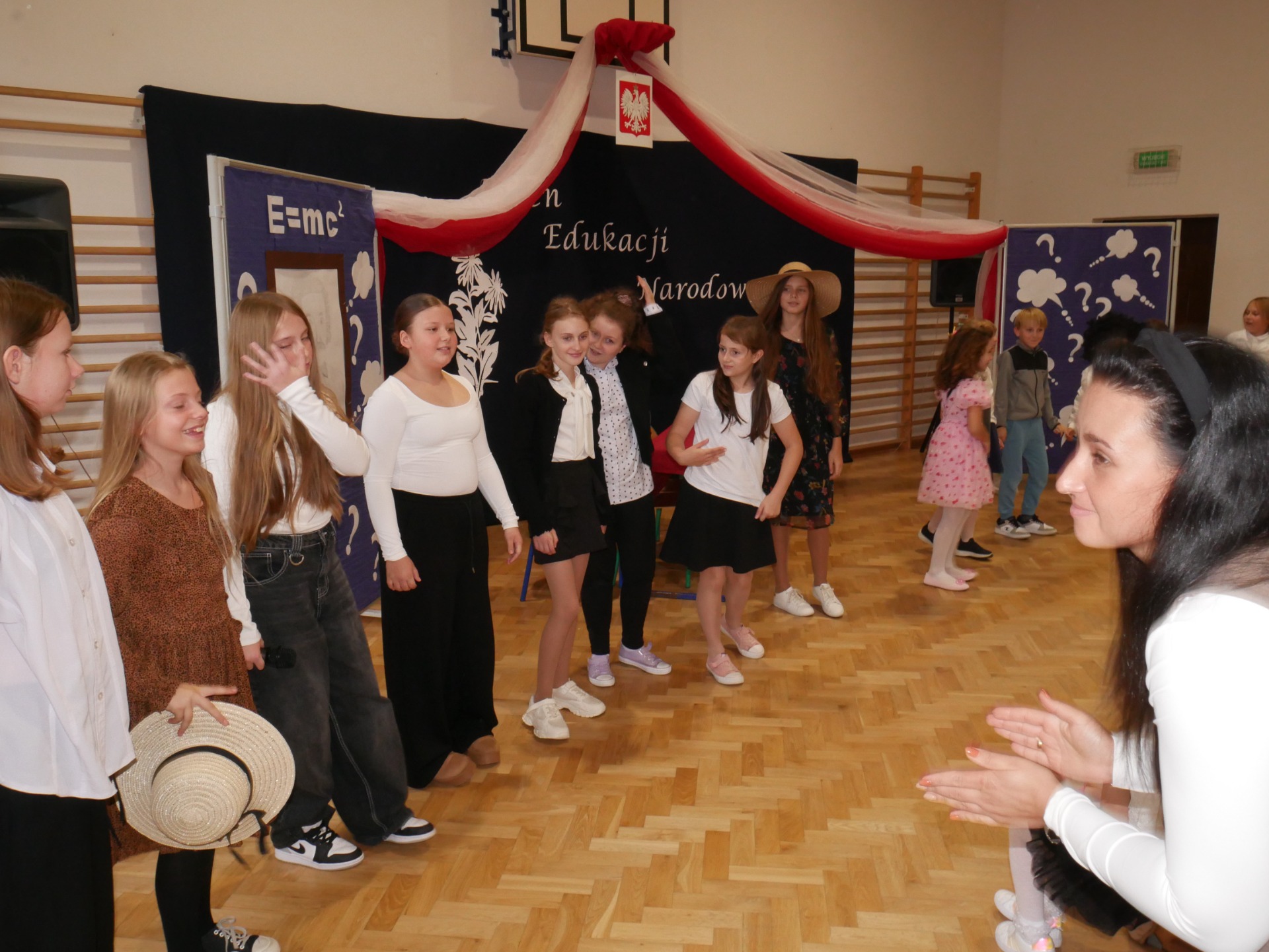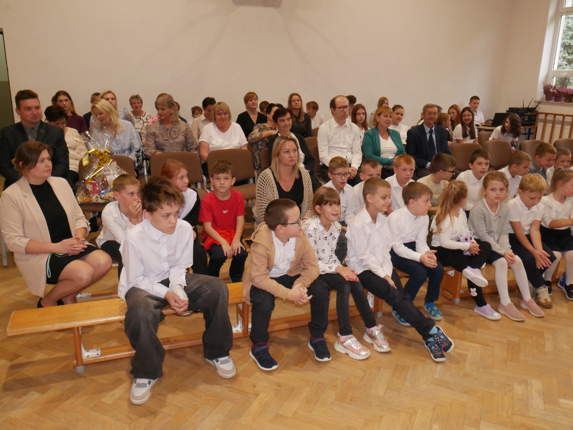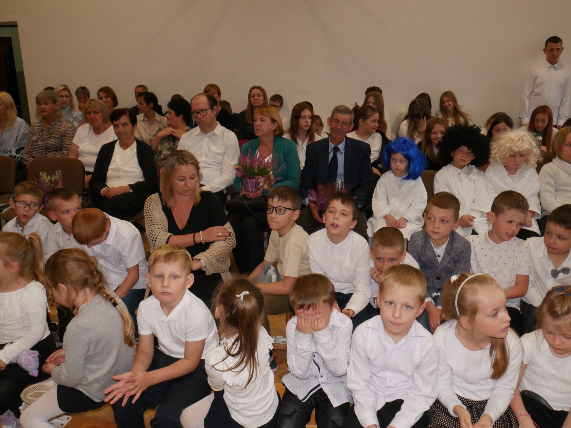 Uroczystość rozpoczęła się od Hymnu i powitania przybyłych gości w osobach: p. Anny Gliszczyńskiej, p. Stanisława Kamińskiego, p. Jolanty Gajzler, p. Bożeny Juźwik, p. przewodniczacego Gąsiorowskiego oraz p. Haliny Biniek z kapelą i wszystkich pozostałych uczestników. Uczniowie uświetnili uroczystość słowno - muzycznym występem, pełnym humoru i zabawy. Pracownicy szkoły zostali obdarowani pięknymi kwiatami - wrzosami. Pani dyrektor Sylwia Sarna - Jurek wręczła nagrody dla nauczycieli i pracowników administracji. Otrzymali je państwo: Edyta Jackowska, Bożena Juźwik, Sylwia Kaczmarek, Małgorzata Wilk, Dorota Pawlik, Zuzanna Wiktorowicz, Przemysław Borowski i Grzegorz Pawlik. Przewodniczący Rady Rodziców podziękował za miłą wspólpracę i wręczył na ręce p. dyrektor słodki upominek