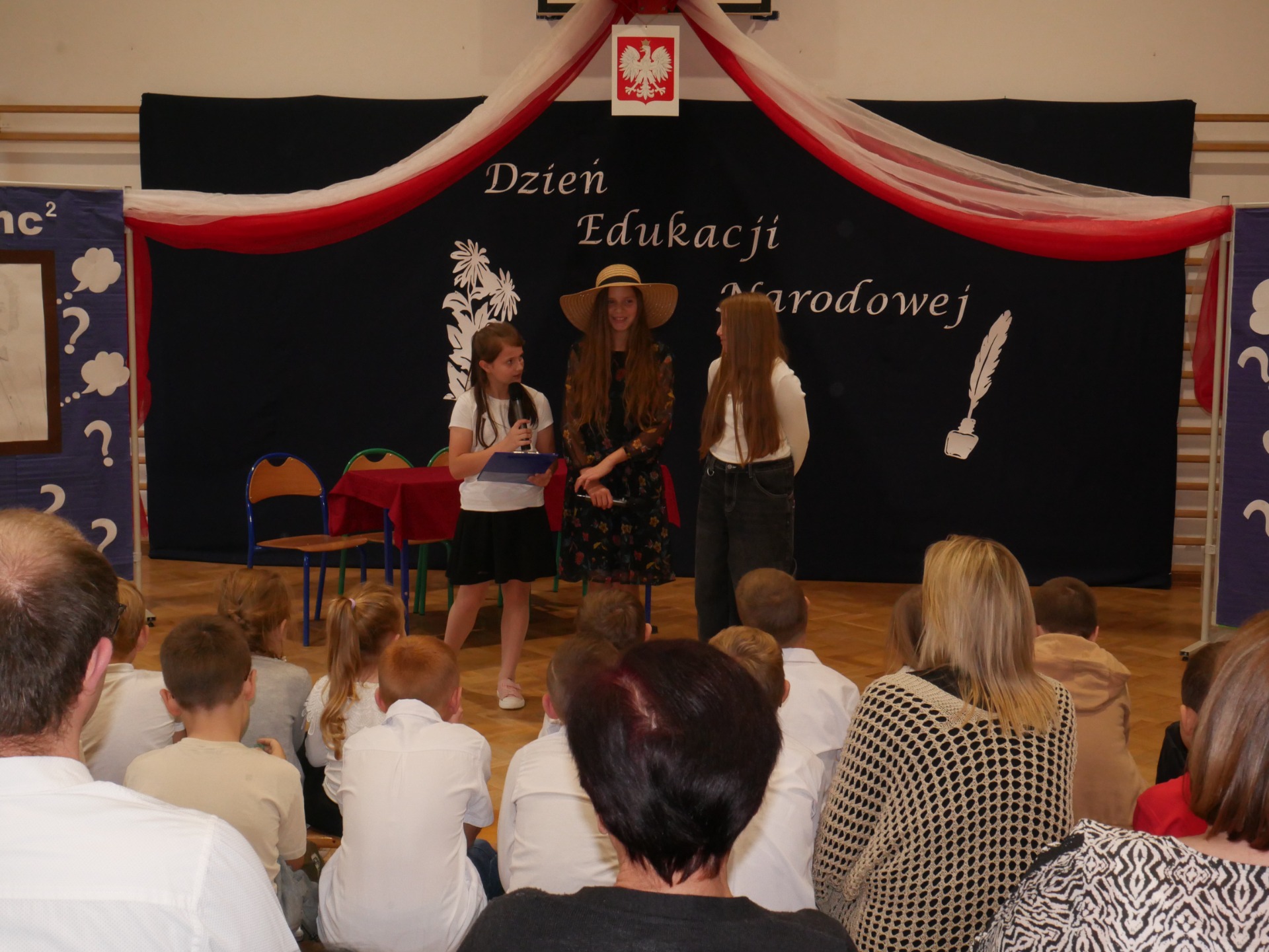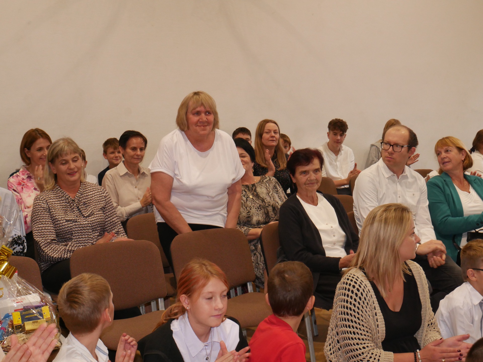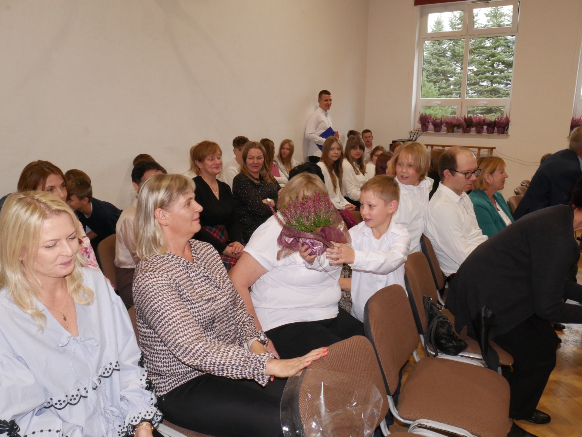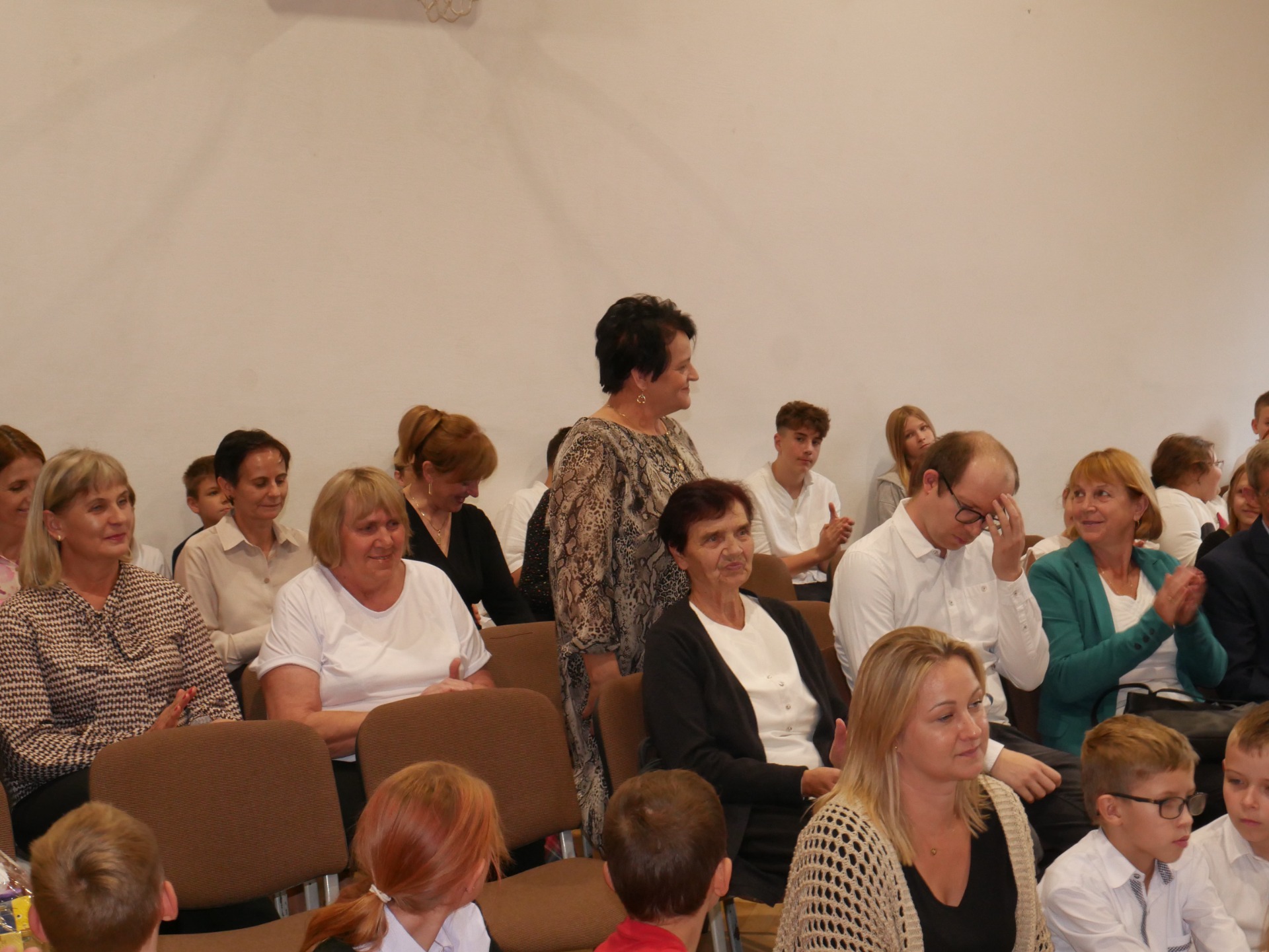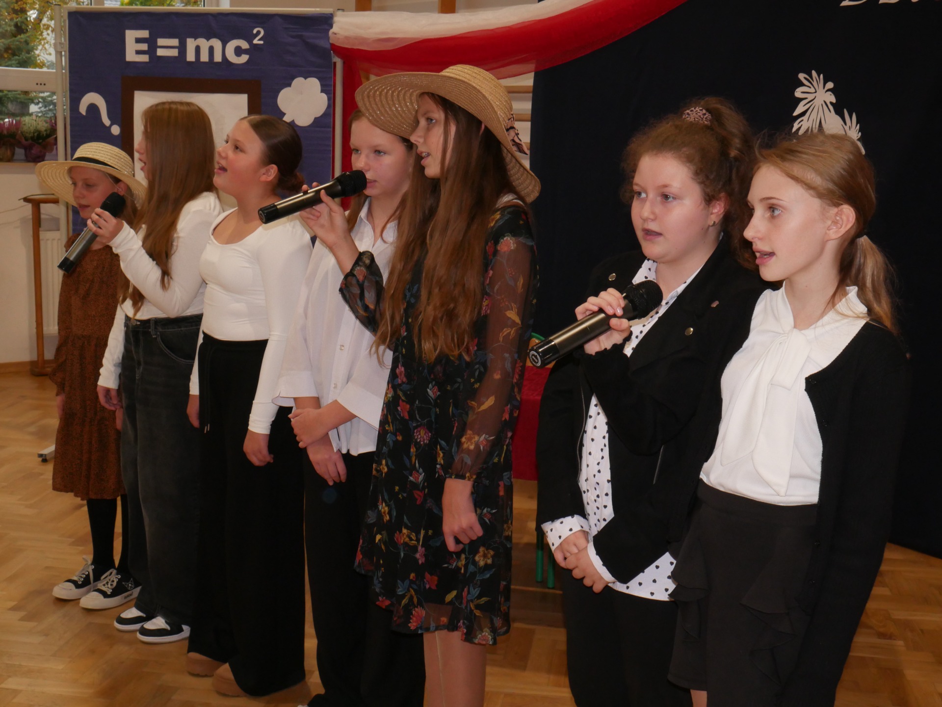 Uroczystość rozpoczęła się od Hymnu i powitania przybyłych gości w osobach: p. Anny Gliszczyńskiej, p. Stanisława Kamińskiego, p. Jolanty Gajzler, p. Bożeny Juźwik, p. przewodniczacego Gąsiorowskiego oraz p. Haliny Biniek z kapelą i wszystkich pozostałych uczestników. Uczniowie uświetnili uroczystość słowno - muzycznym występem, pełnym humoru i zabawy. Pracownicy szkoły zostali obdarowani pięknymi kwiatami - wrzosami. Pani dyrektor Sylwia Sarna - Jurek wręczła nagrody dla nauczycieli i pracowników administracji. Otrzymali je państwo: Edyta Jackowska, Bożena Juźwik, Sylwia Kaczmarek, Małgorzata Wilk, Dorota Pawlik, Zuzanna Wiktorowicz, Przemysław Borowski i Grzegorz Pawlik. Przewodniczący Rady Rodziców podziękował za miłą wspólpracę i wręczył na ręce p. dyrektor słodki upominek
