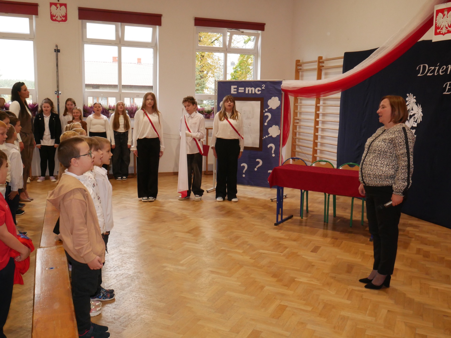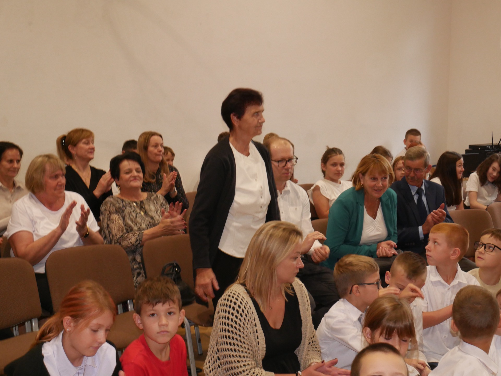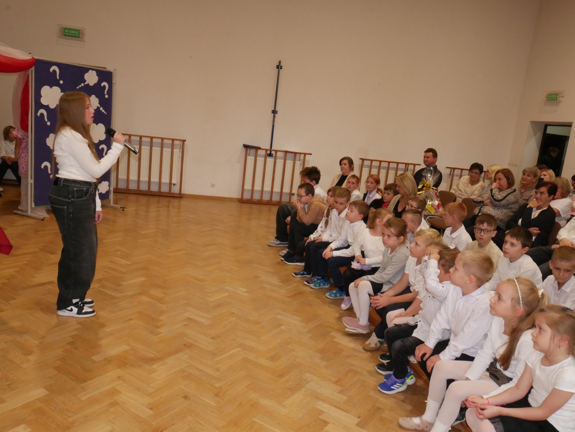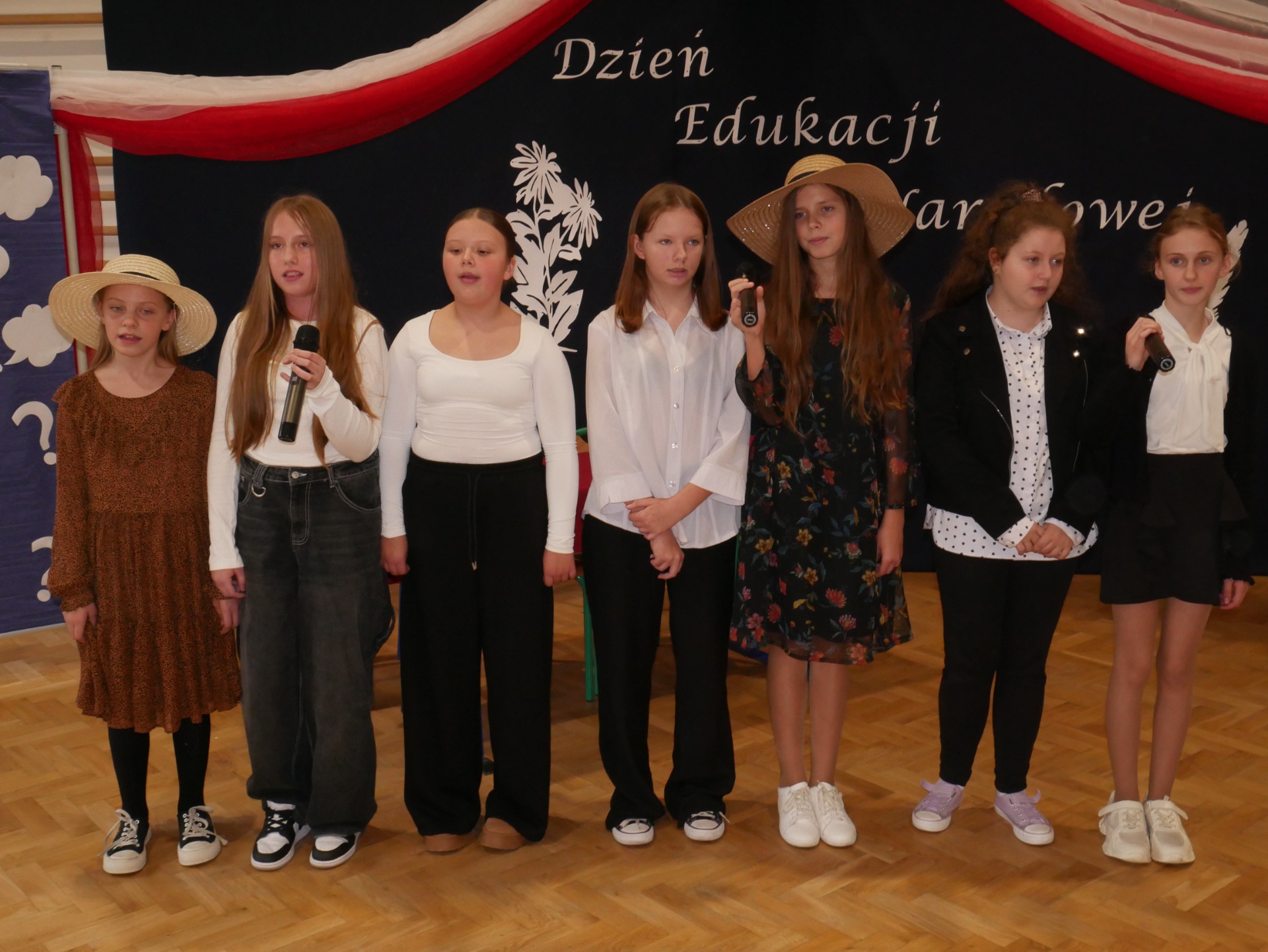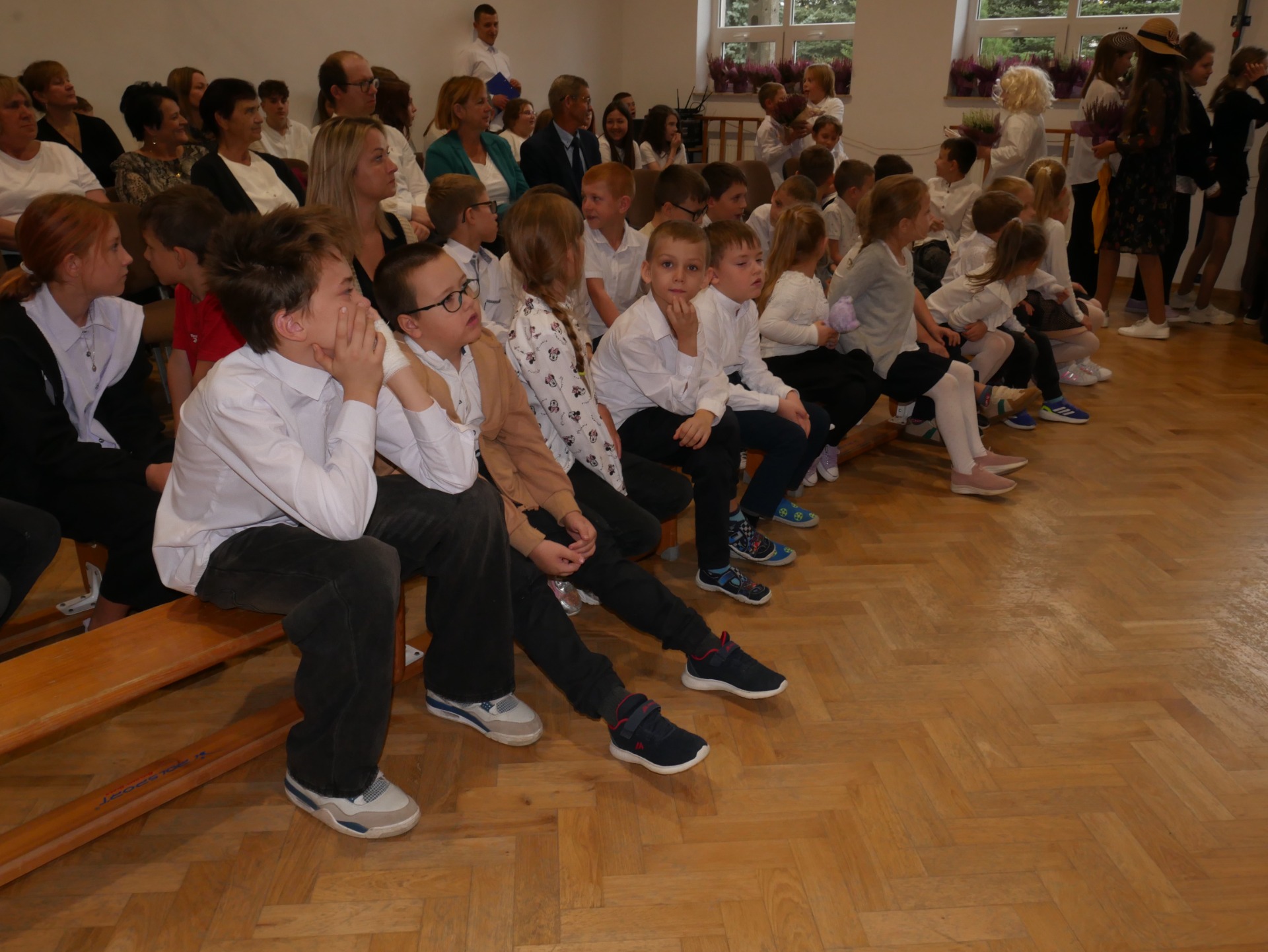Uroczystość rozpoczęła się od Hymnu i powitania przybyłych gości w osobach: p. Anny Gliszczyńskiej, p. Stanisława Kamińskiego, p. Jolanty Gajzler, p. Bożeny Juźwik, p. przewodniczacego Gąsiorowskiego oraz p. Haliny Biniek z kapelą i wszystkich pozostałych uczestników. Uczniowie uświetnili uroczystość słowno - muzycznym występem, pełnym humoru i zabawy. Pracownicy szkoły zostali obdarowani pięknymi kwiatami - wrzosami. Pani dyrektor Sylwia Sarna - Jurek wręczła nagrody dla nauczycieli i pracowników administracji. Otrzymali je państwo: Edyta Jackowska, Bożena Juźwik, Sylwia Kaczmarek, Małgorzata Wilk, Dorota Pawlik, Zuzanna Wiktorowicz, Przemysław Borowski i Grzegorz Pawlik. Przewodniczący Rady Rodziców podziękował za miłą wspólpracę i wręczył na ręce p. dyrektor słodki upominek