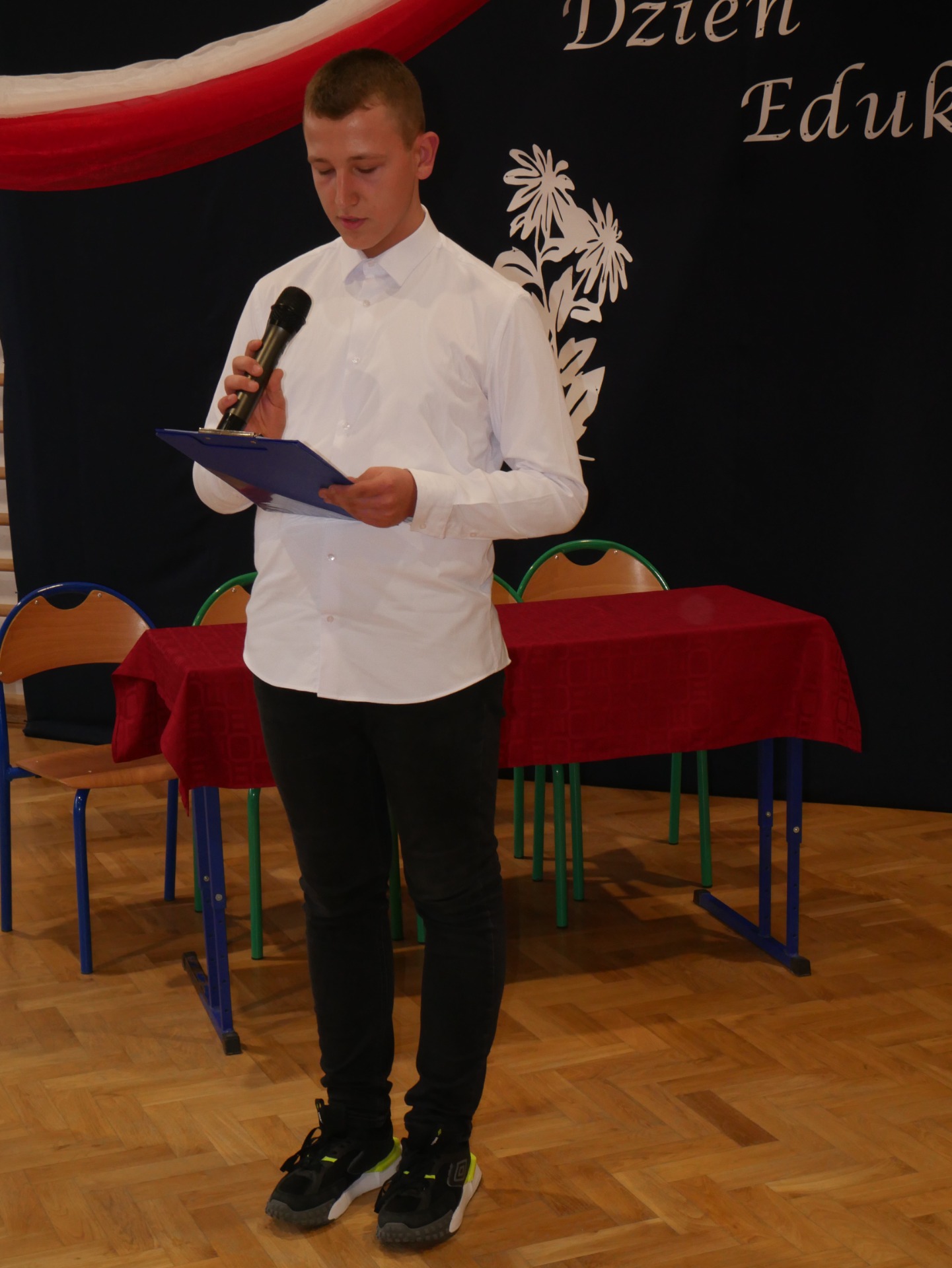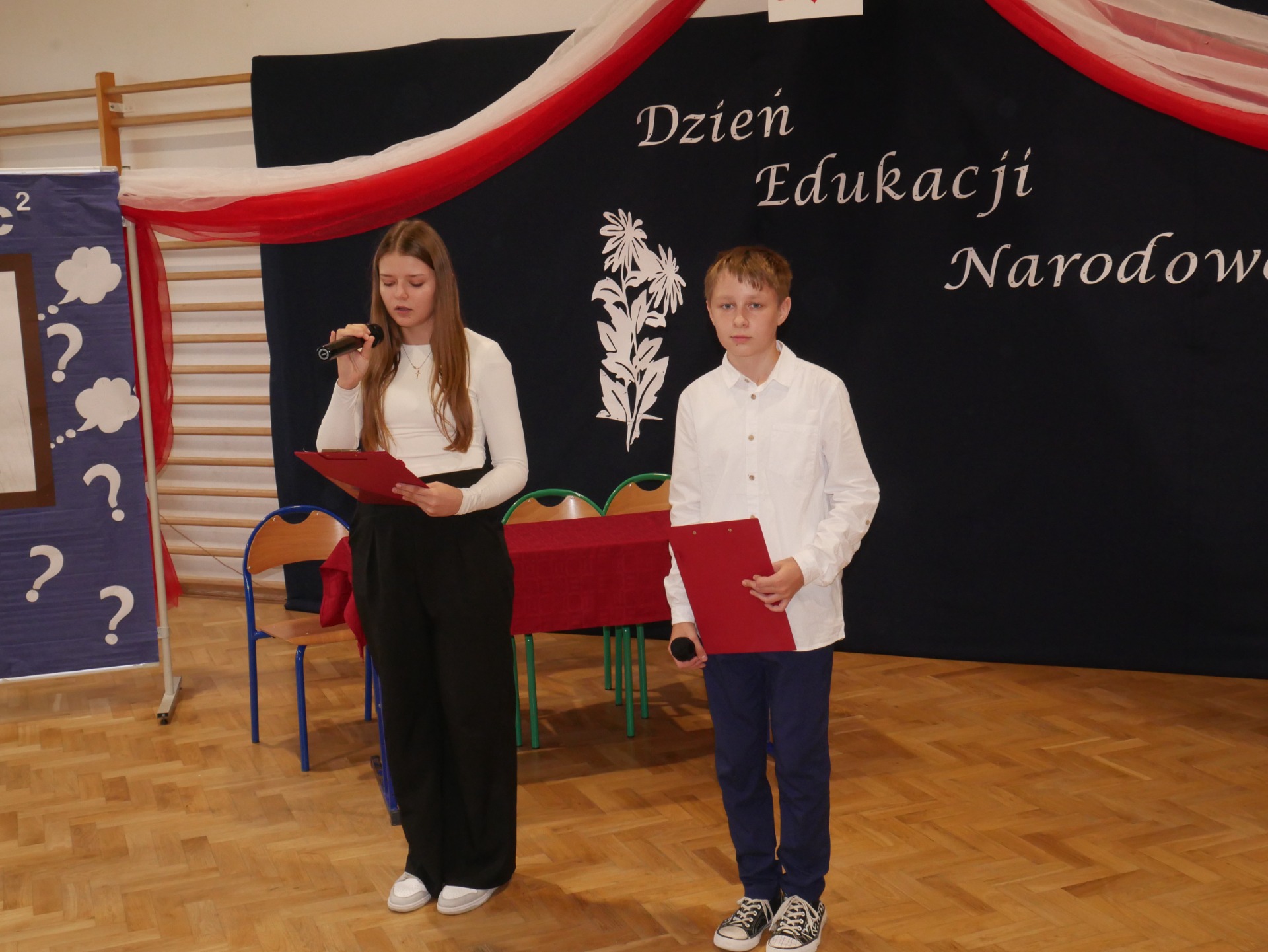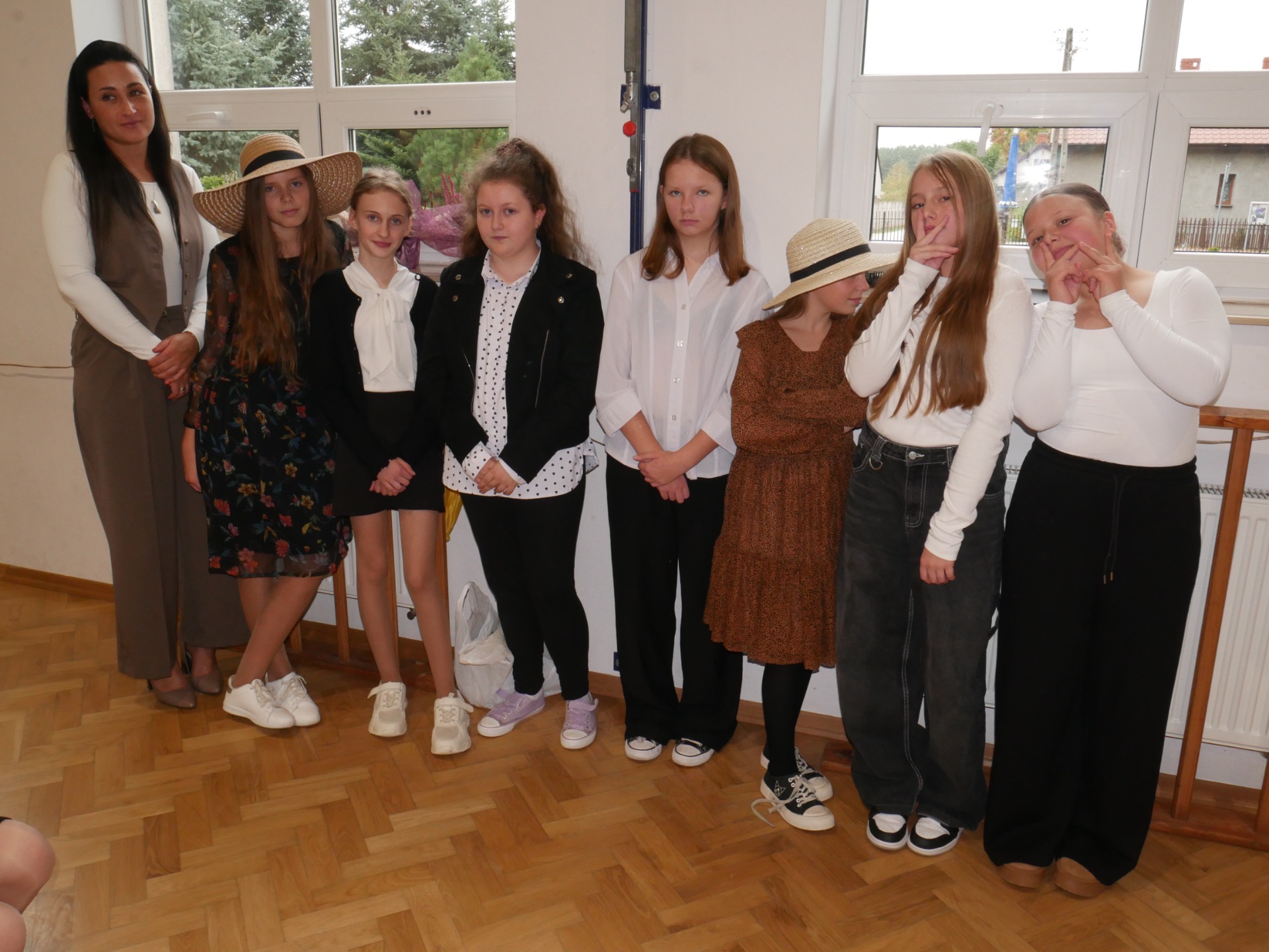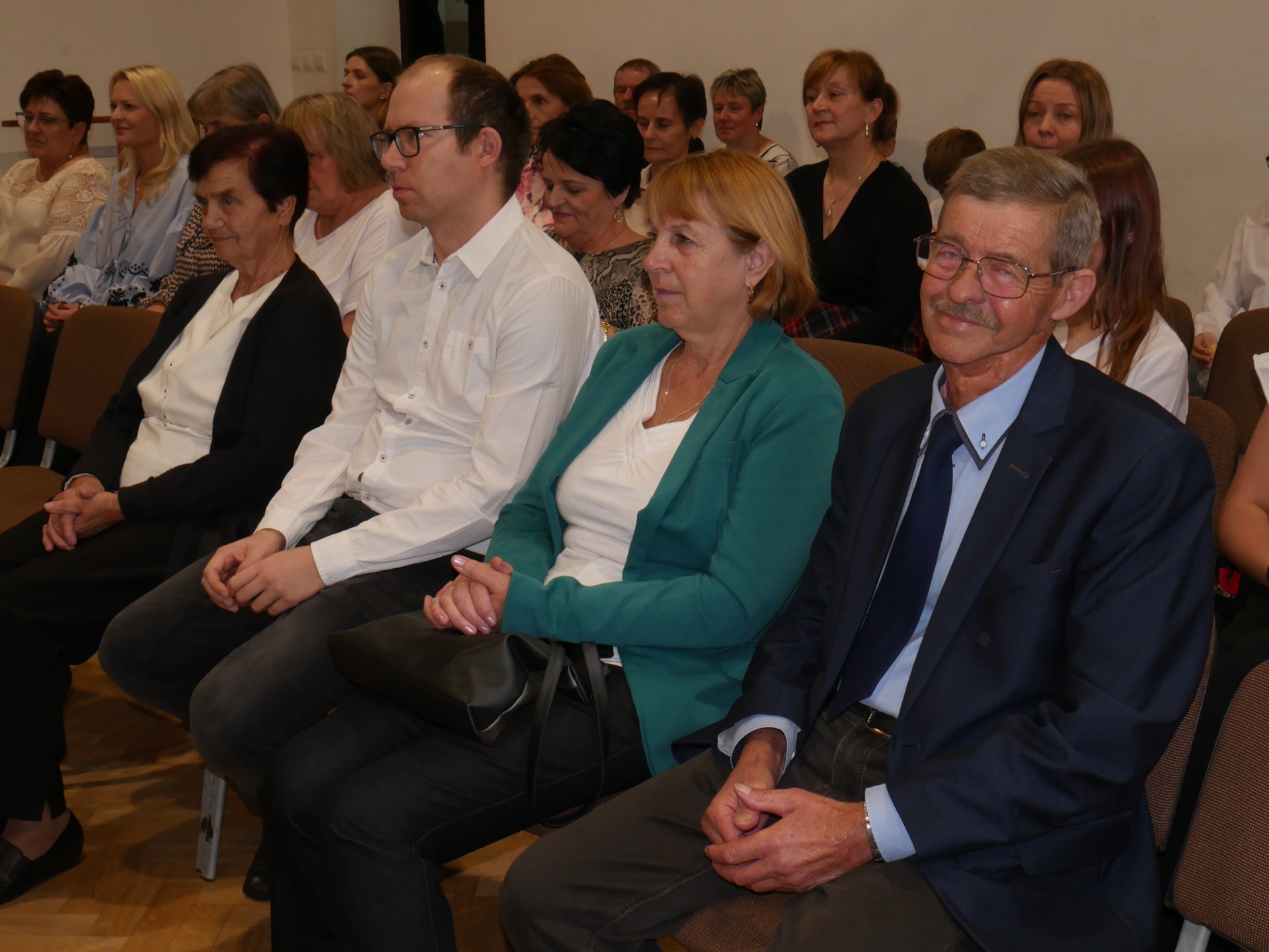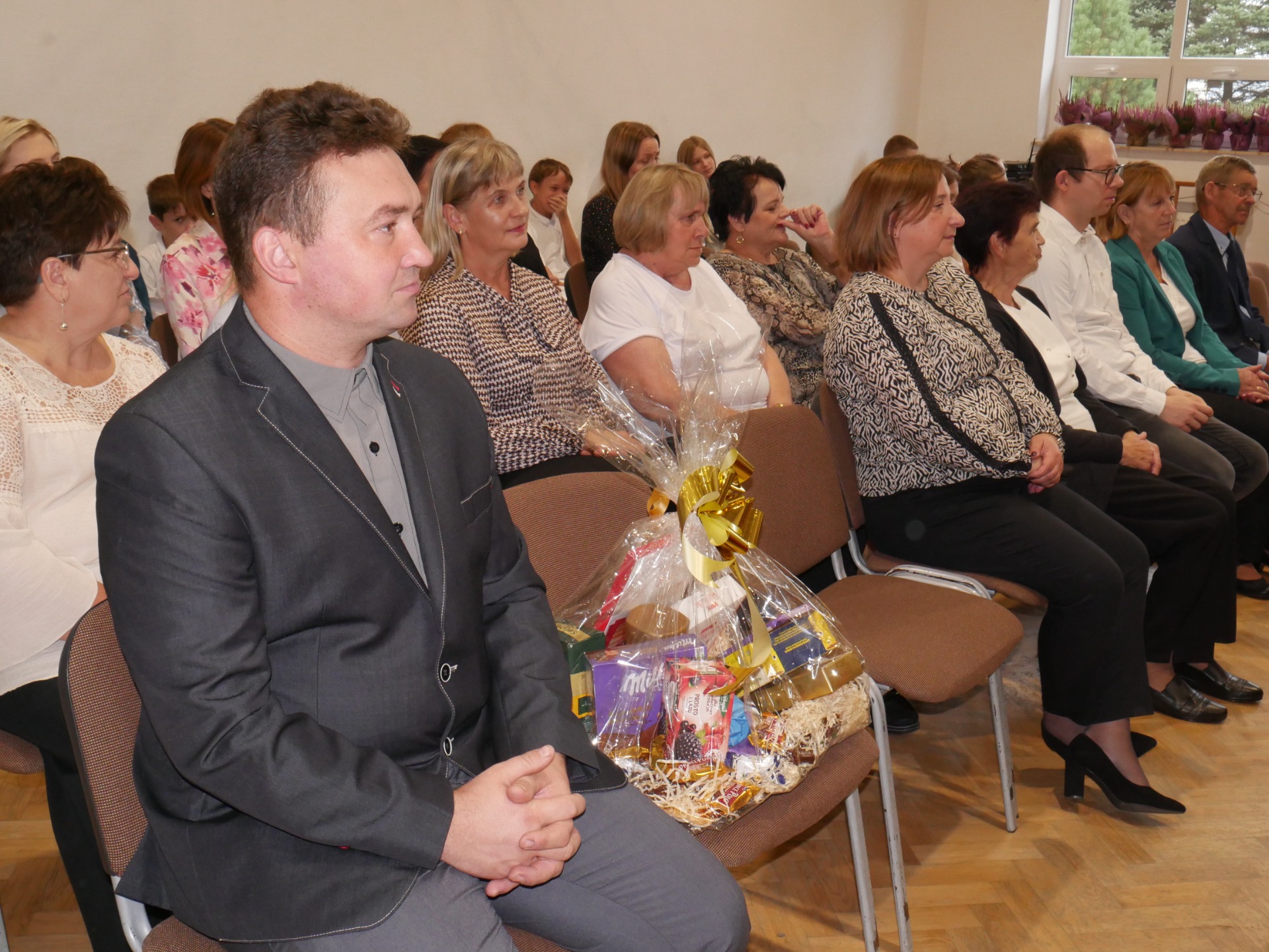 Uroczystość rozpoczęła się od Hymnu i powitania przybyłych gości w osobach: p. Anny Gliszczyńskiej, p. Stanisława Kamińskiego, p. Jolanty Gajzler, p. Bożeny Juźwik, p. przewodniczacego Gąsiorowskiego oraz p. Haliny Biniek z kapelą i wszystkich pozostałych uczestników. Uczniowie uświetnili uroczystość słowno - muzycznym występem, pełnym humoru i zabawy. Pracownicy szkoły zostali obdarowani pięknymi kwiatami - wrzosami. Pani dyrektor Sylwia Sarna - Jurek wręczła nagrody dla nauczycieli i pracowników administracji. Otrzymali je państwo: Edyta Jackowska, Bożena Juźwik, Sylwia Kaczmarek, Małgorzata Wilk, Dorota Pawlik, Zuzanna Wiktorowicz, Przemysław Borowski i Grzegorz Pawlik. Przewodniczący Rady Rodziców podziękował za miłą wspólpracę i wręczył na ręce p. dyrektor słodki upominek