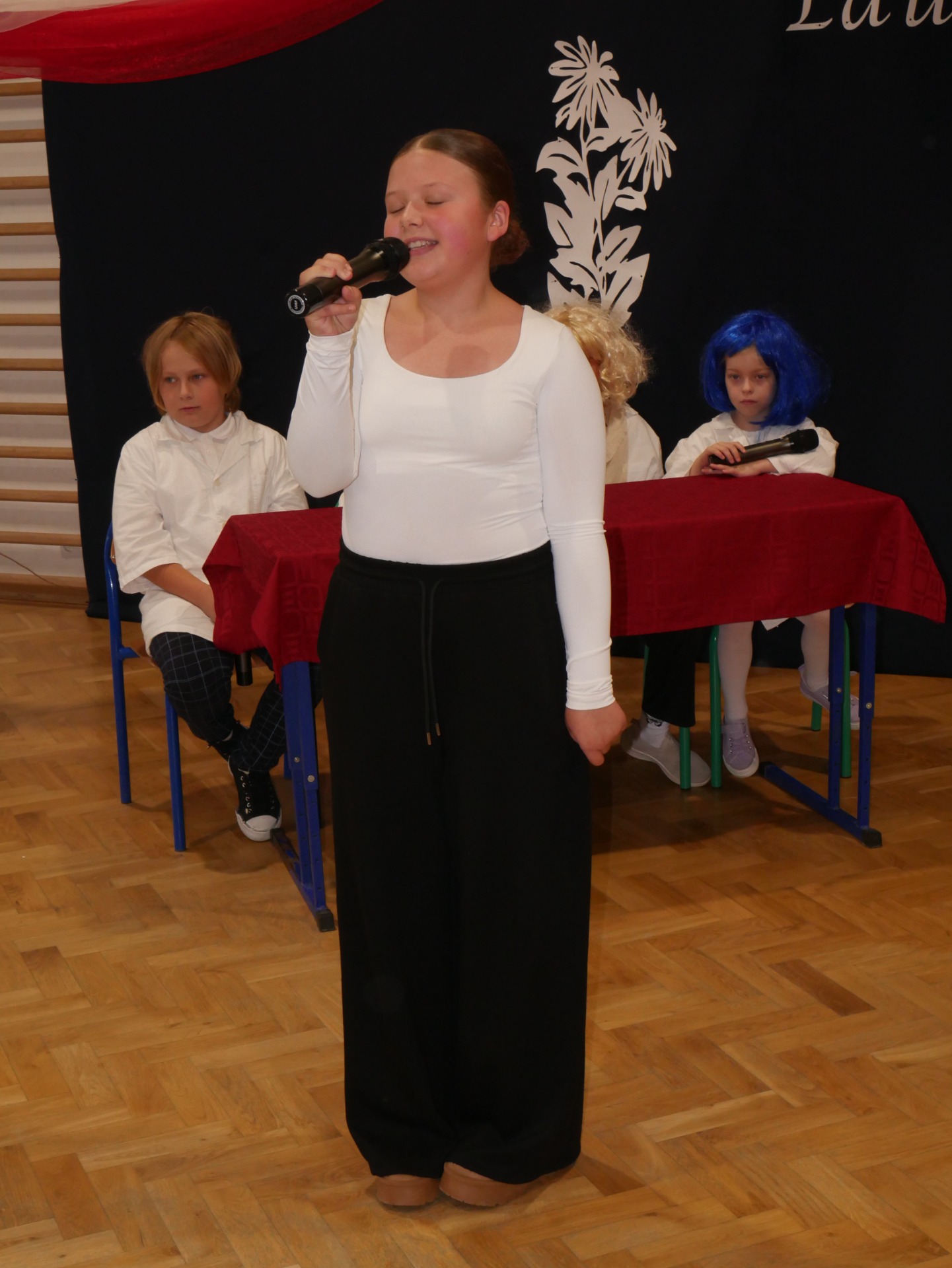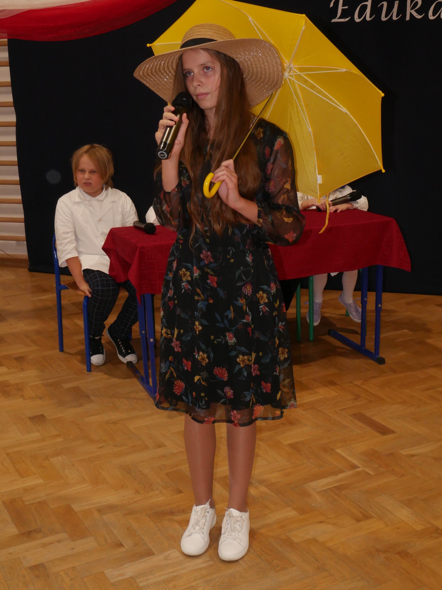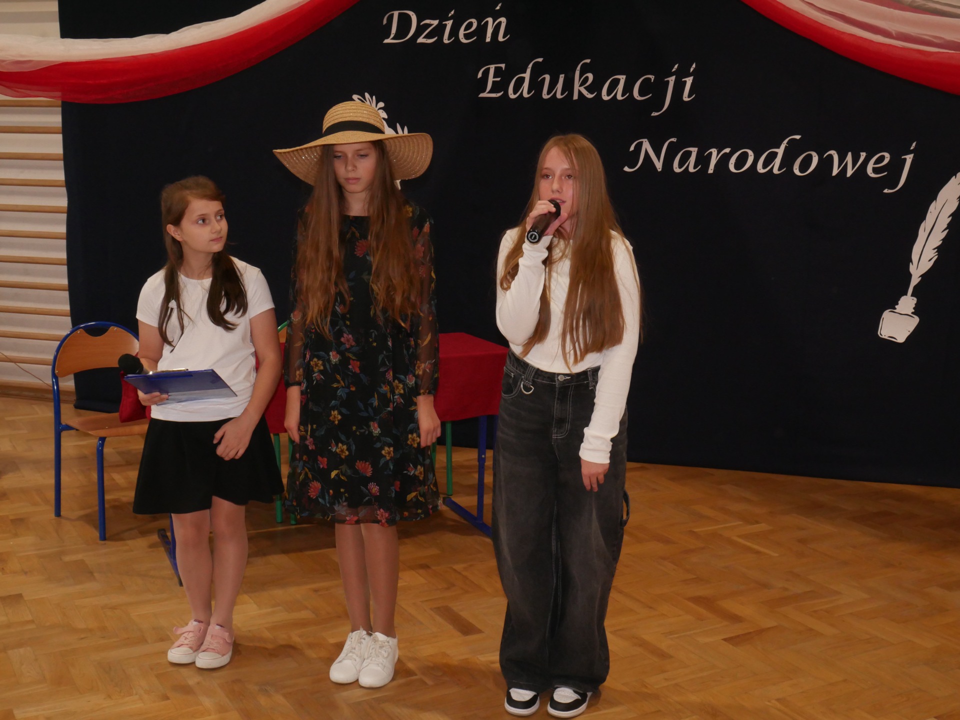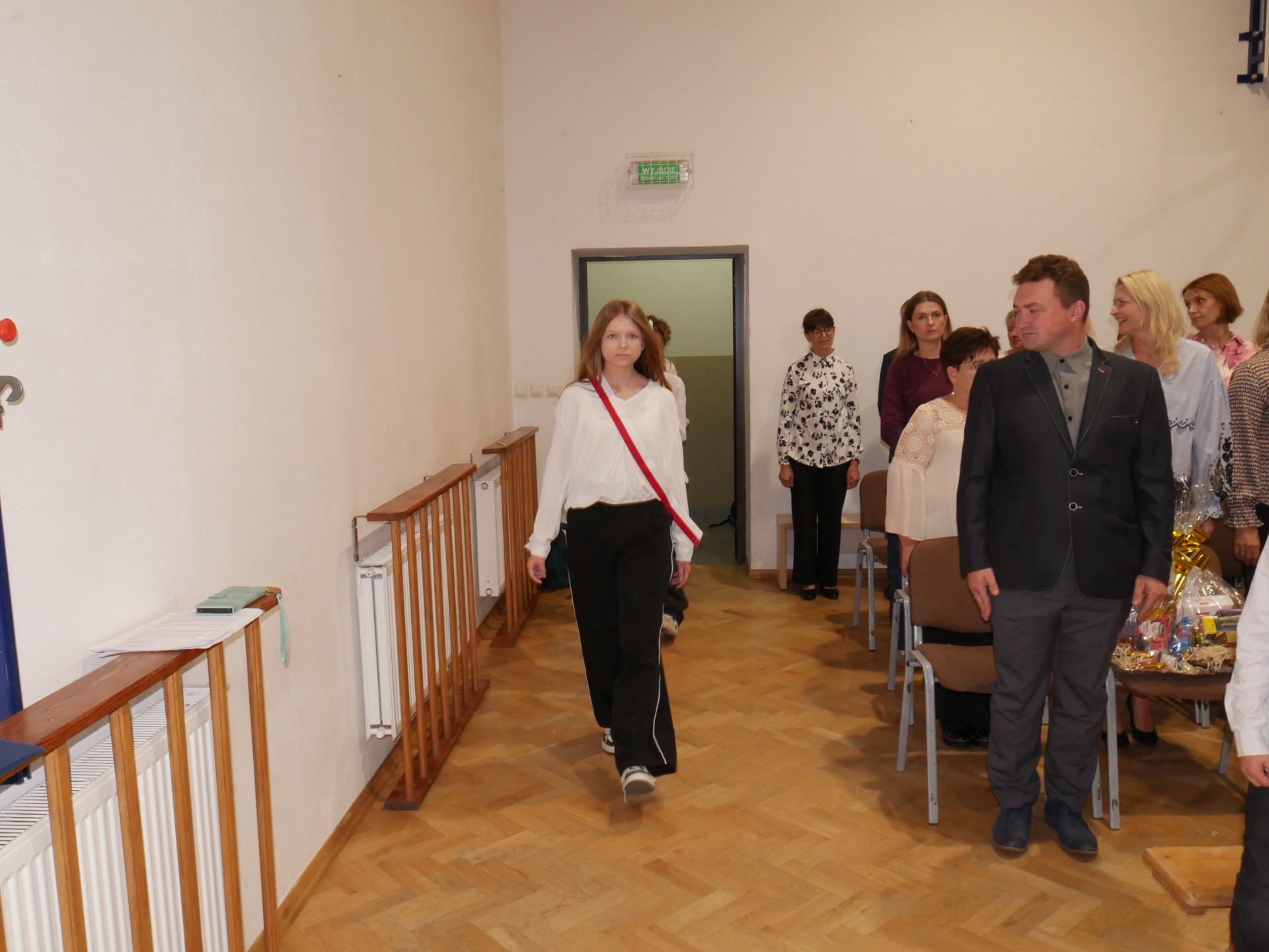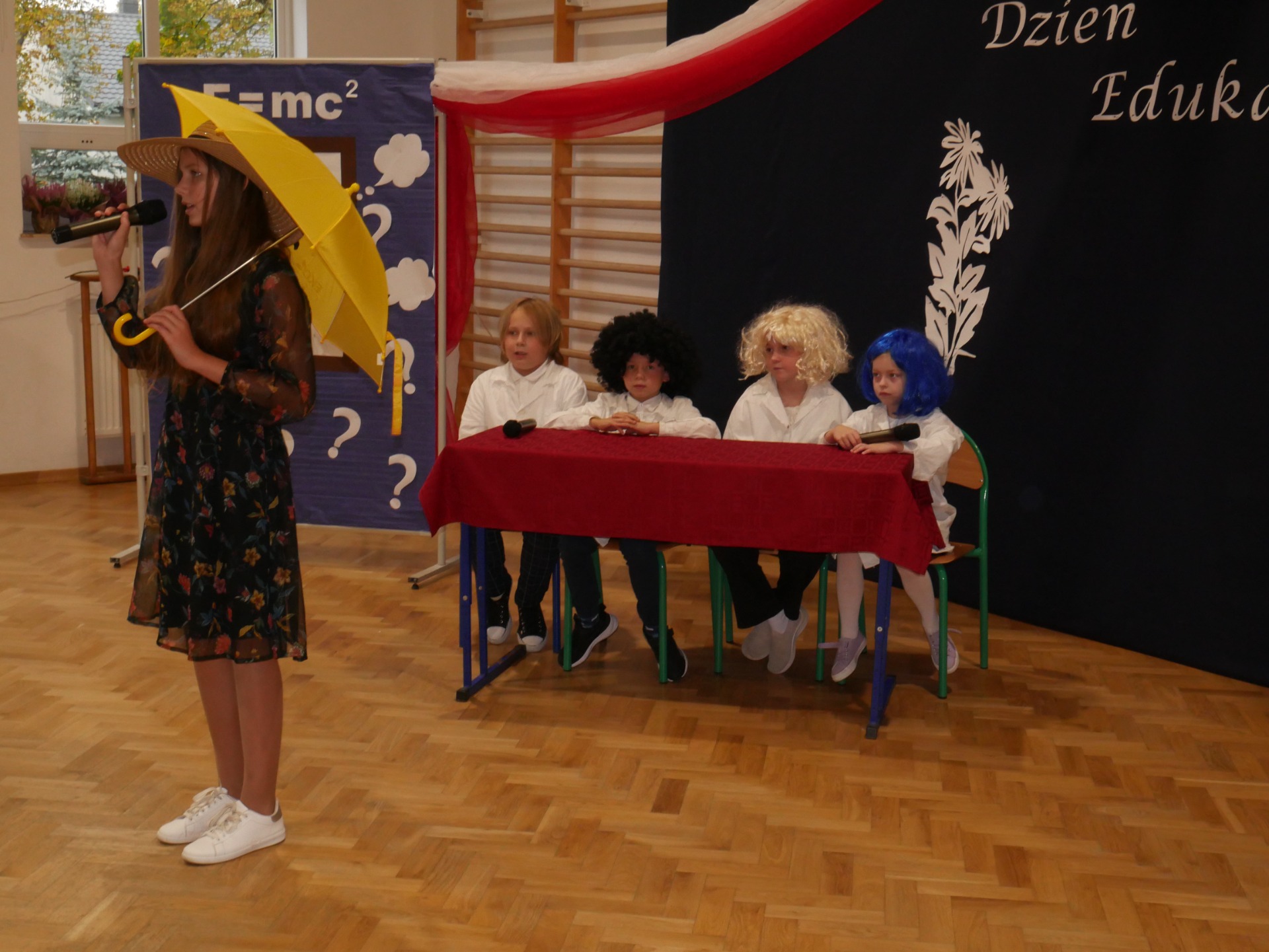 Uroczystość rozpoczęła się od Hymnu i powitania przybyłych gości w osobach: p. Anny Gliszczyńskiej, p. Stanisława Kamińskiego, p. Jolanty Gajzler, p. Bożeny Juźwik, p. przewodniczacego Gąsiorowskiego oraz p. Haliny Biniek z kapelą i wszystkich pozostałych uczestników. Uczniowie uświetnili uroczystość słowno - muzycznym występem, pełnym humoru i zabawy. Pracownicy szkoły zostali obdarowani pięknymi kwiatami - wrzosami. Pani dyrektor Sylwia Sarna - Jurek wręczła nagrody dla nauczycieli i pracowników administracji. Otrzymali je państwo: Edyta Jackowska, Bożena Juźwik, Sylwia Kaczmarek, Małgorzata Wilk, Dorota Pawlik, Zuzanna Wiktorowicz, Przemysław Borowski i Grzegorz Pawlik. Przewodniczący Rady Rodziców podziękował za miłą wspólpracę i wręczył na ręce p. dyrektor słodki upominek