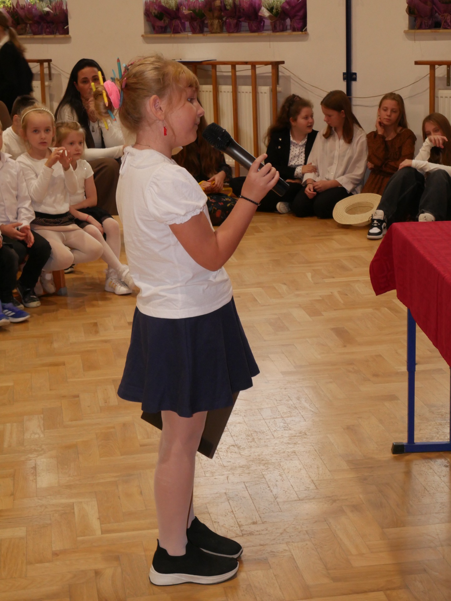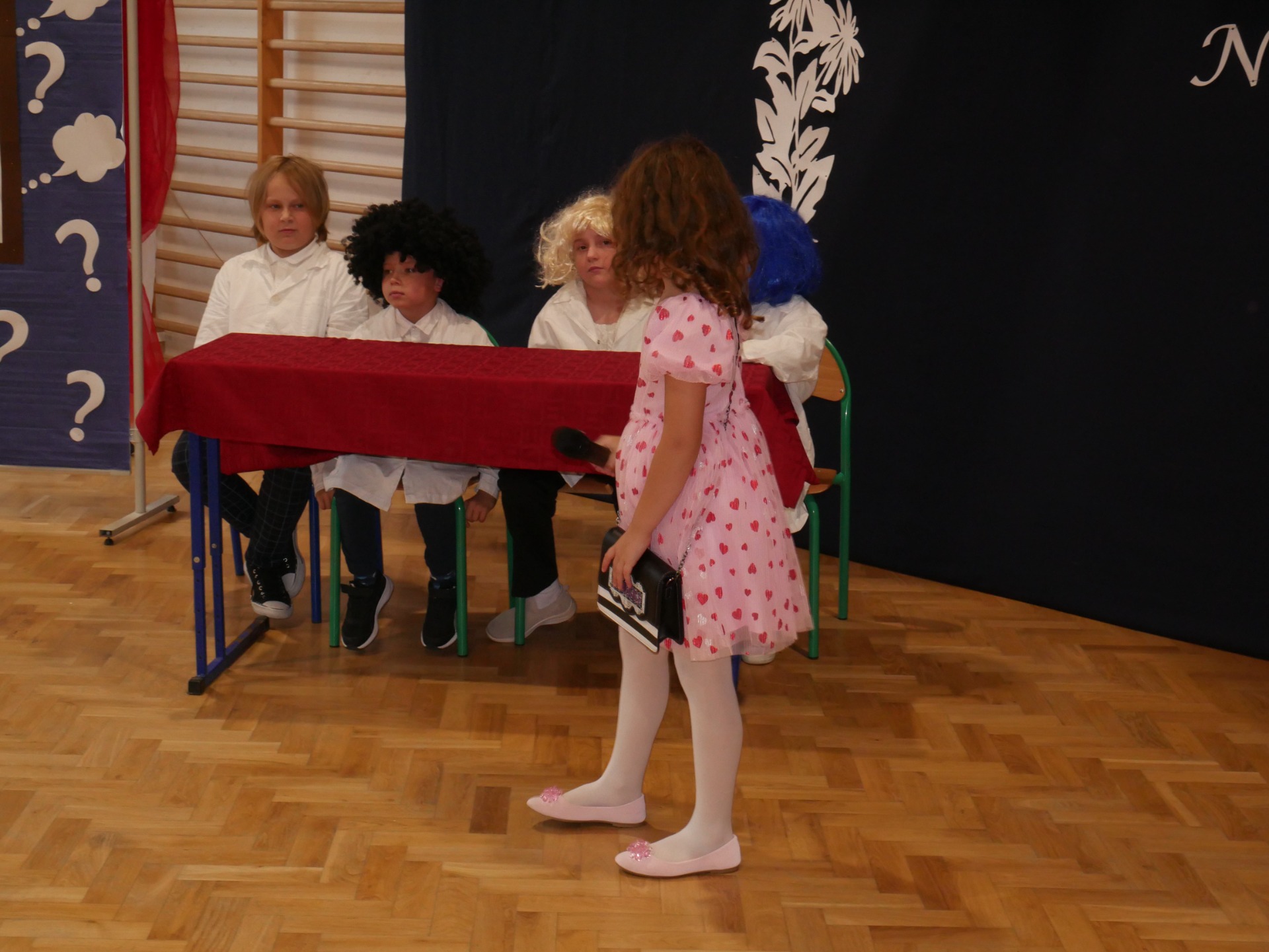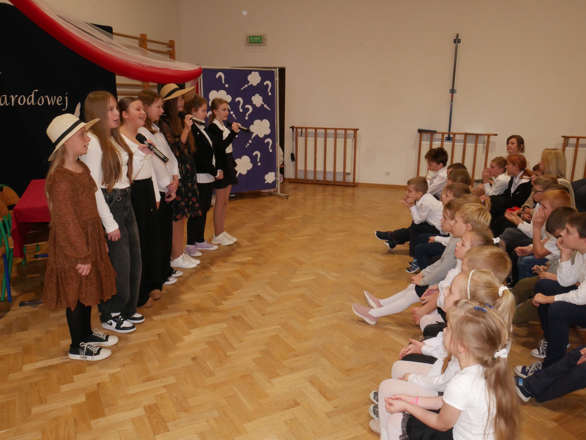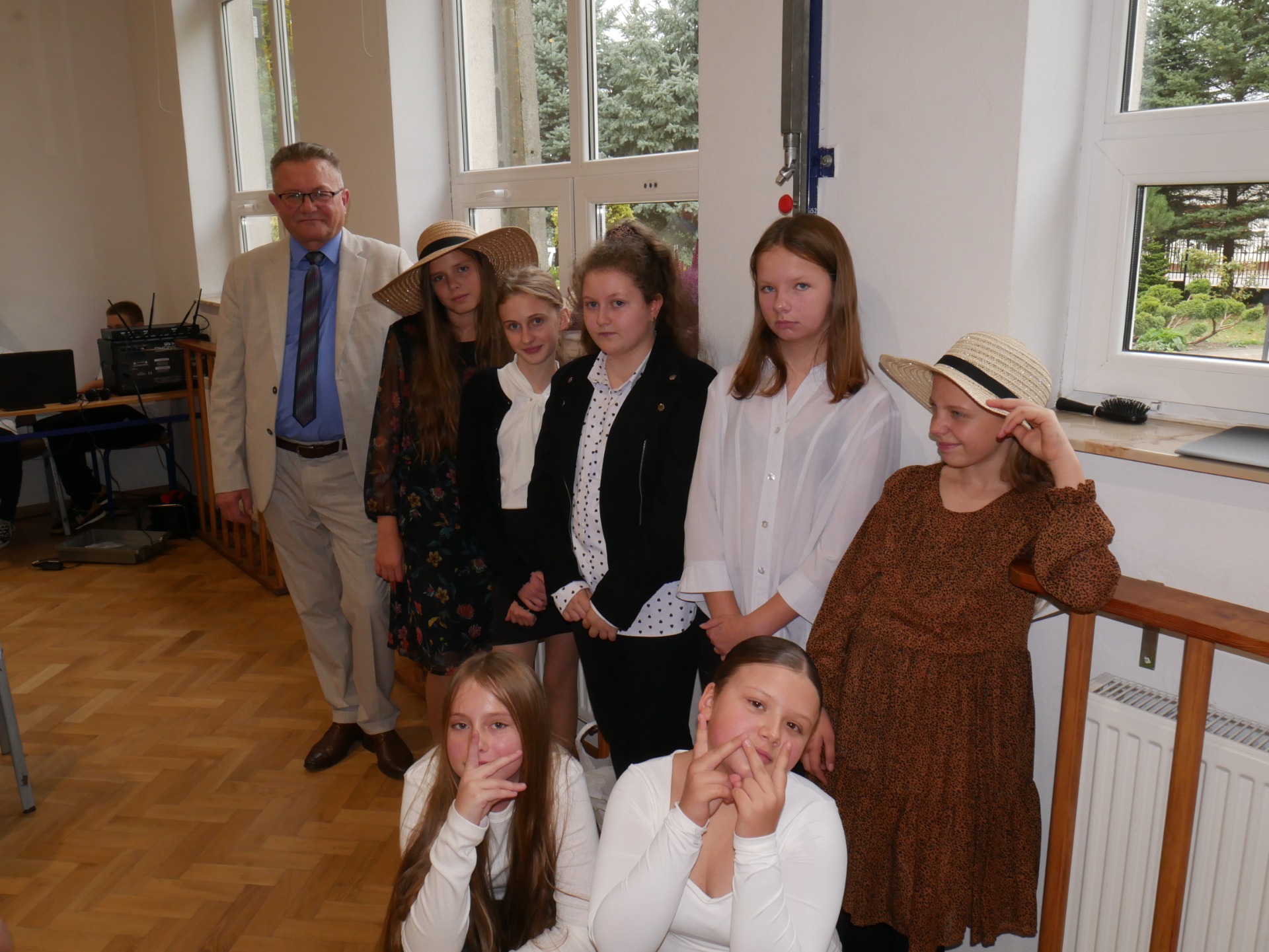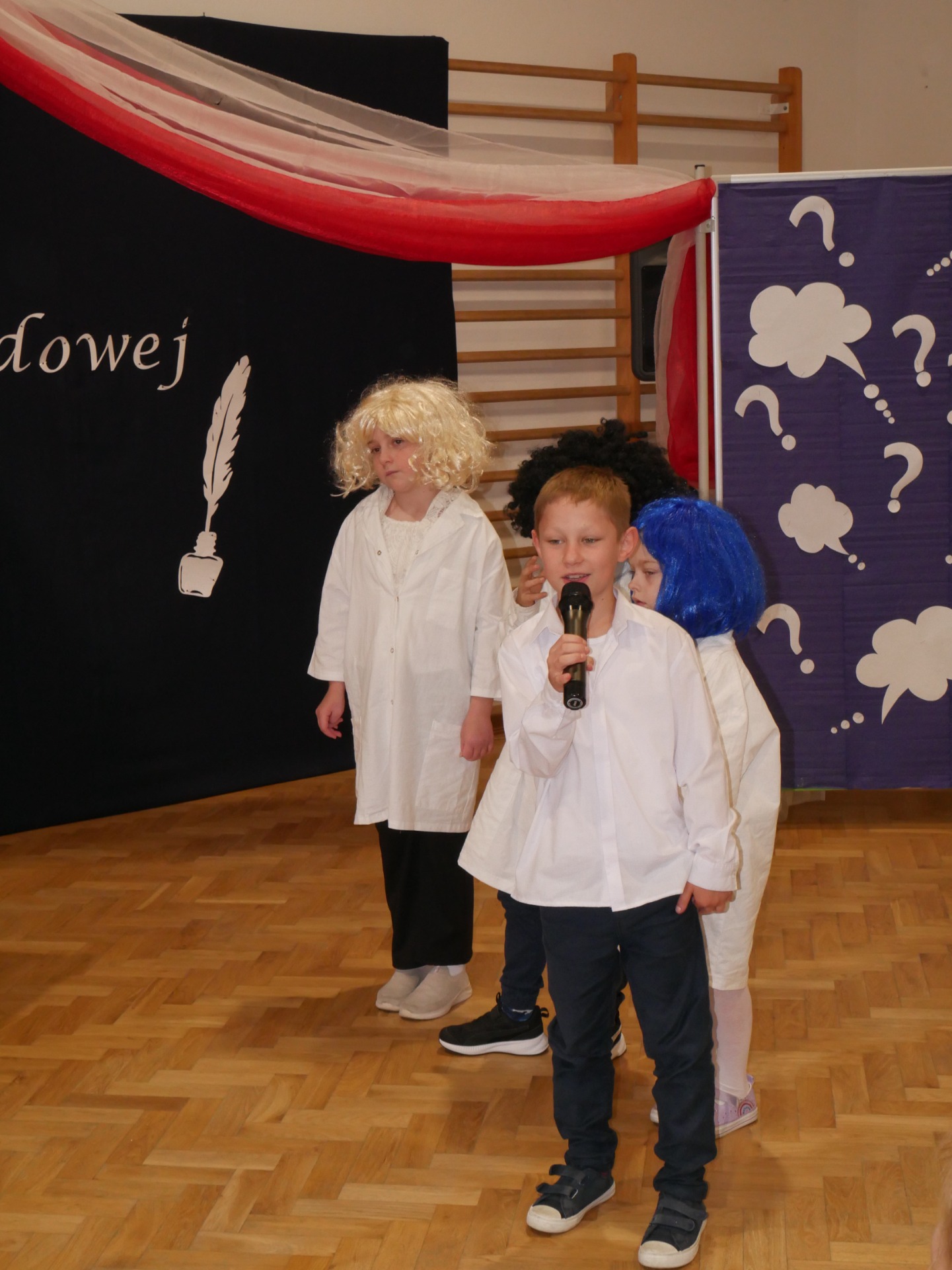 Uroczystość rozpoczęła się od Hymnu i powitania przybyłych gości w osobach: p. Anny Gliszczyńskiej, p. Stanisława Kamińskiego, p. Jolanty Gajzler, p. Bożeny Juźwik, p. przewodniczacego Gąsiorowskiego oraz p. Haliny Biniek z kapelą i wszystkich pozostałych uczestników. Uczniowie uświetnili uroczystość słowno - muzycznym występem, pełnym humoru i zabawy. Pracownicy szkoły zostali obdarowani pięknymi kwiatami - wrzosami. Pani dyrektor Sylwia Sarna - Jurek wręczła nagrody dla nauczycieli i pracowników administracji. Otrzymali je państwo: Edyta Jackowska, Bożena Juźwik, Sylwia Kaczmarek, Małgorzata Wilk, Dorota Pawlik, Zuzanna Wiktorowicz, Przemysław Borowski i Grzegorz Pawlik. Przewodniczący Rady Rodziców podziękował za miłą wspólpracę i wręczył na ręce p. dyrektor słodki upominek