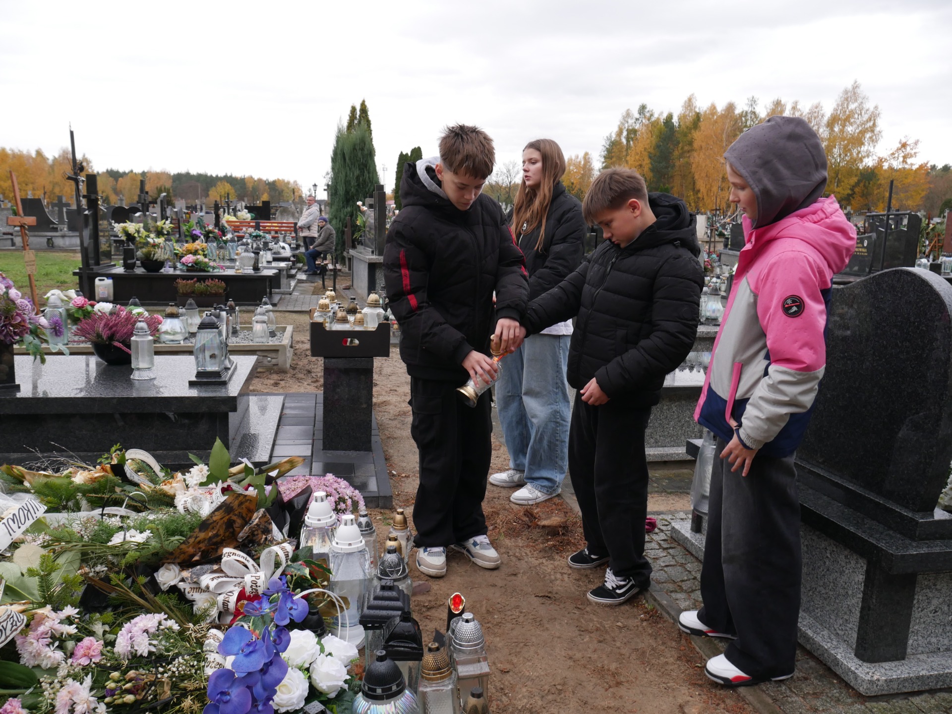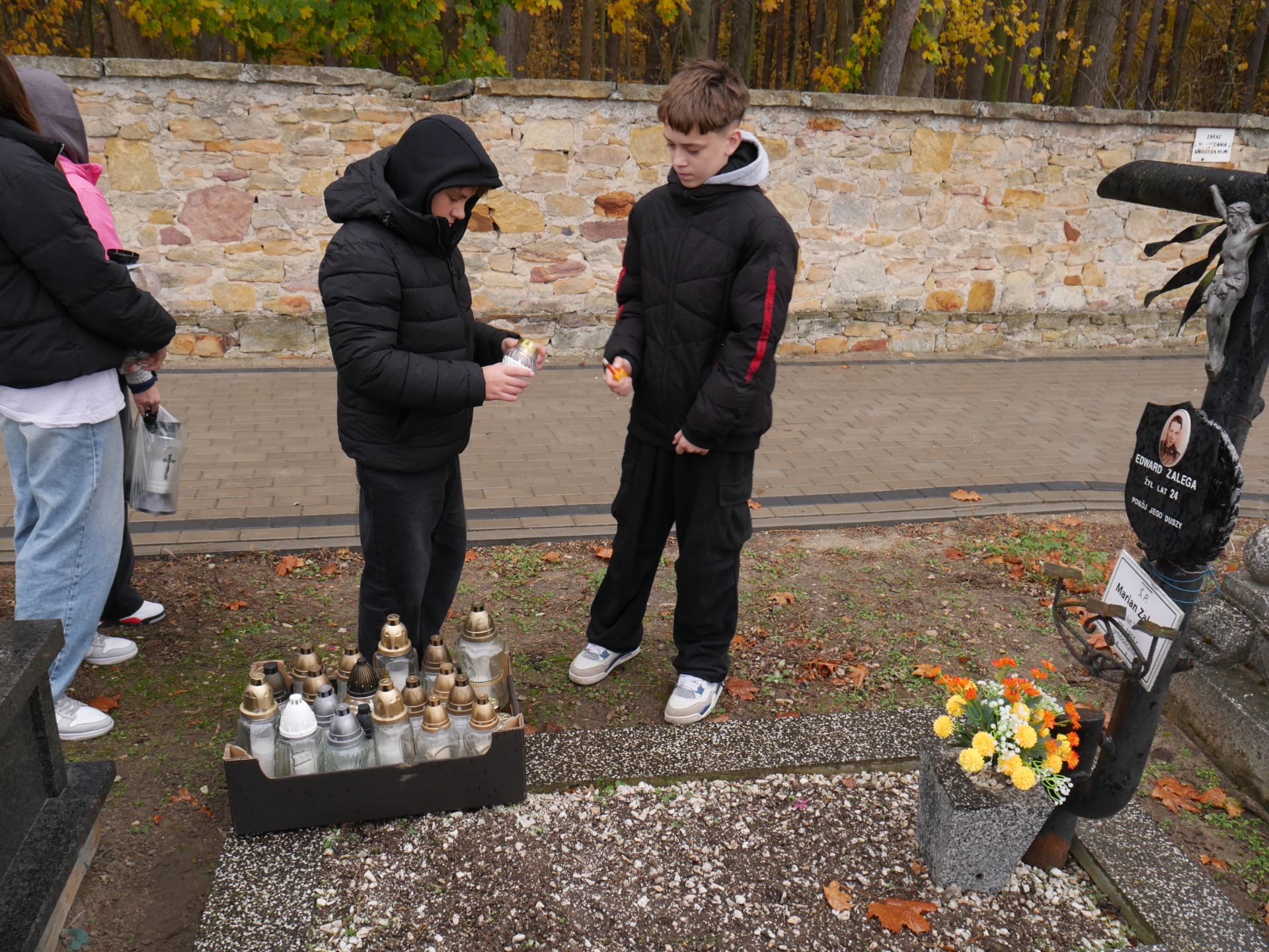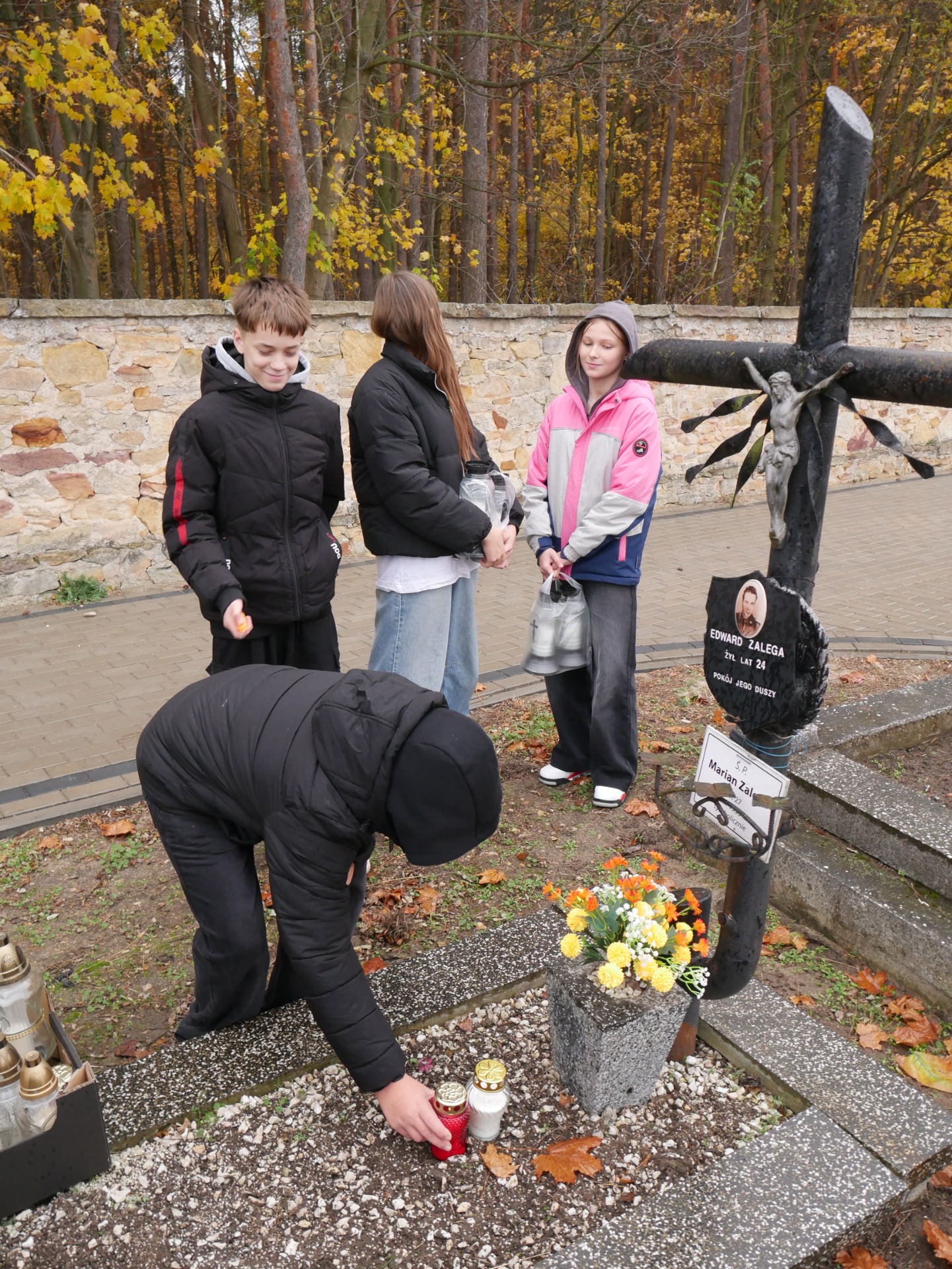 Jak co roku uczniowie naszej szkoły zorganizowali zbiórkę zniczy. Delegacja Samorządu Uczniowskiego w składzie: Gusta Kinga, Jakubczyk Małgorzata, Grudnik Kamil i Kolasiński Paweł, zapaliła je na grobach Partyzantów, Nieznanego Zołnierza, zmarłych nauczycieli i innych osób zasłużonych dla społeczności. Ta tradycja kontynuowana jest od kilku lat z tytułu "Wszystkich Świętych" jako wyraz pamięci dla zmarłych.