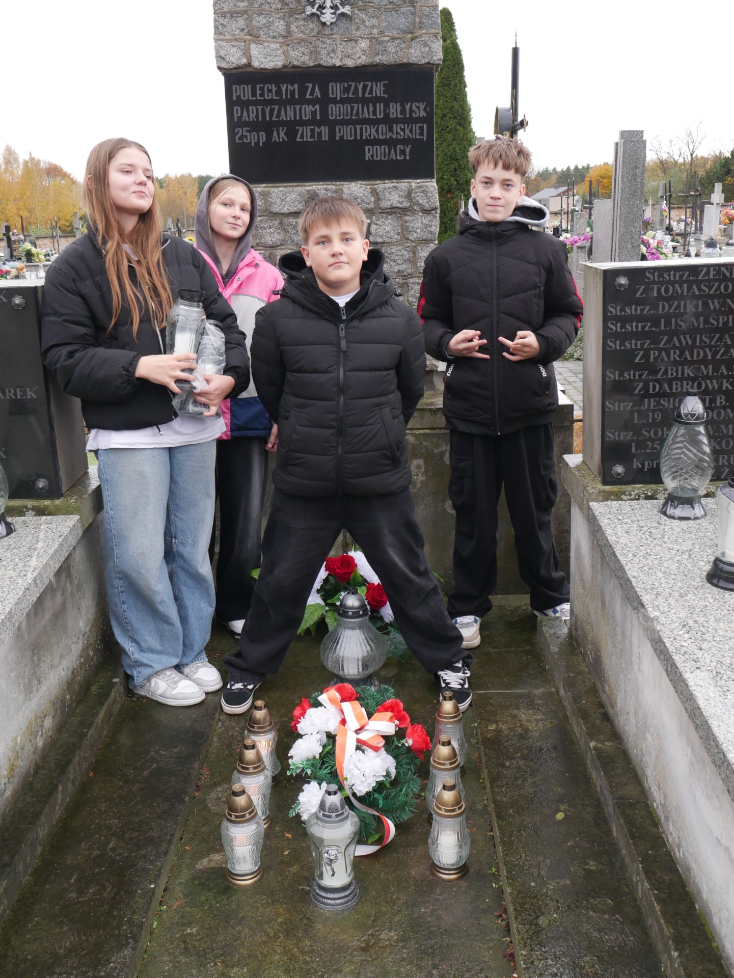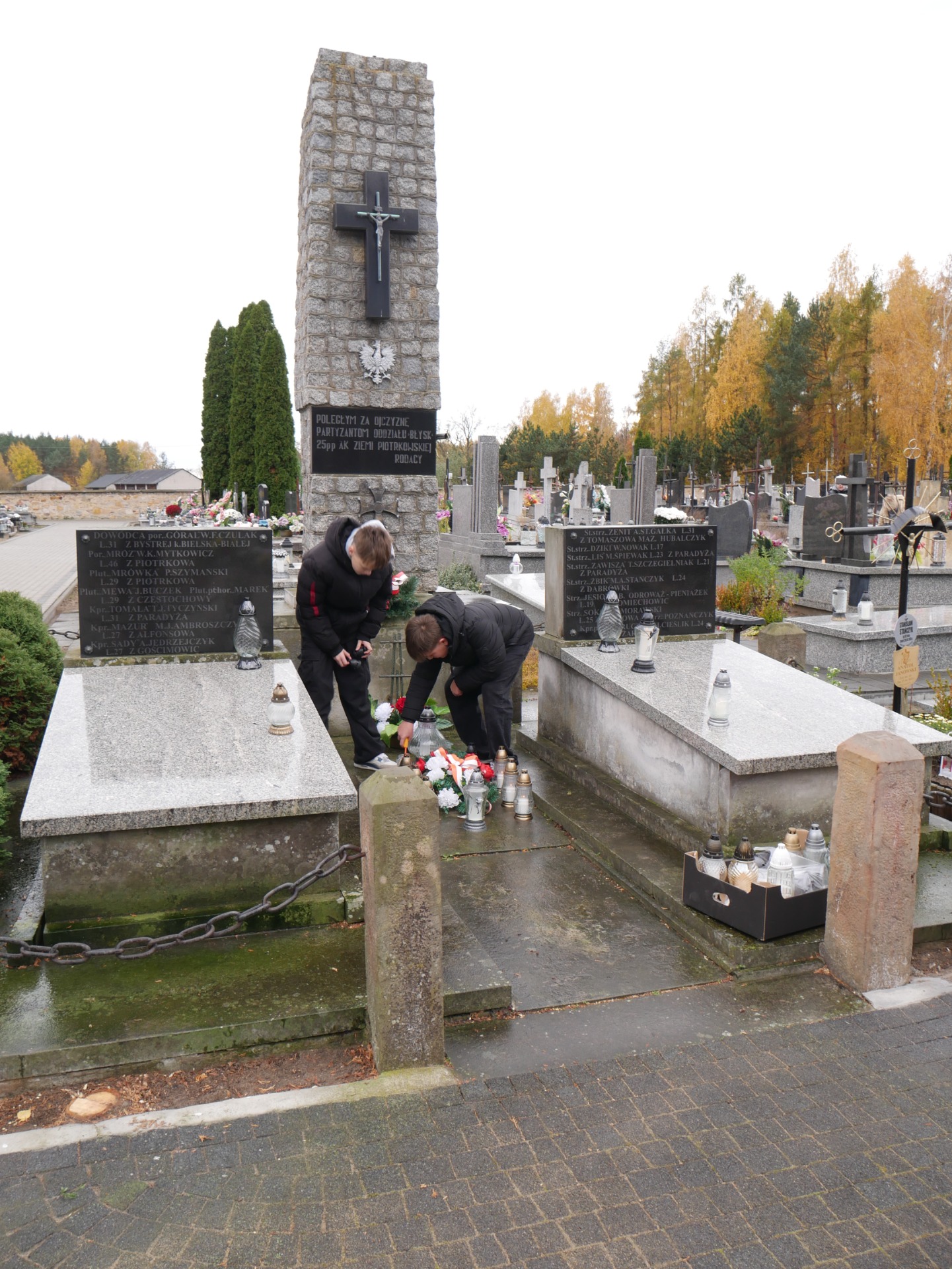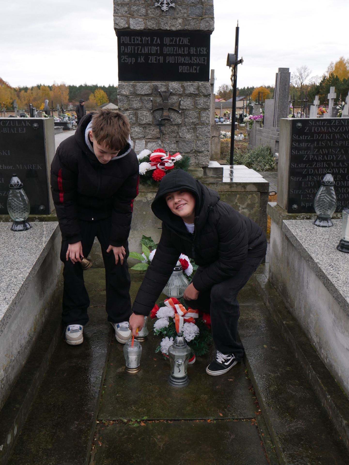 Jak co roku uczniowie naszej szkoły zorganizowali zbiórkę zniczy. Delegacja Samorządu Uczniowskiego w składzie: Gusta Kinga, Jakubczyk Małgorzata, Grudnik Kamil i Kolasiński Paweł, zapaliła je na grobach Partyzantów, Nieznanego Zołnierza, zmarłych nauczycieli i innych osób zasłużonych dla społeczności. Ta tradycja kontynuowana jest od kilku lat z tytułu "Wszystkich Świętych" jako wyraz pamięci dla zmarłych.