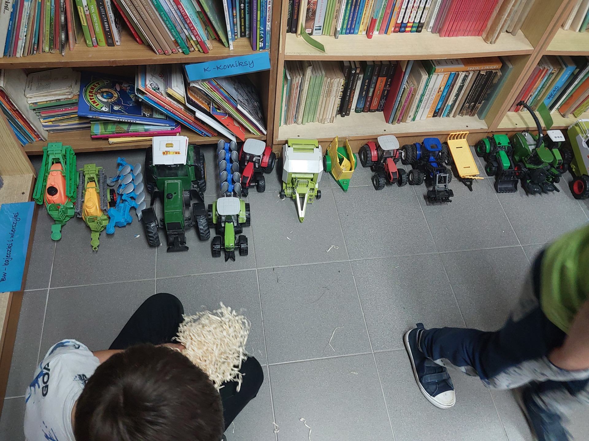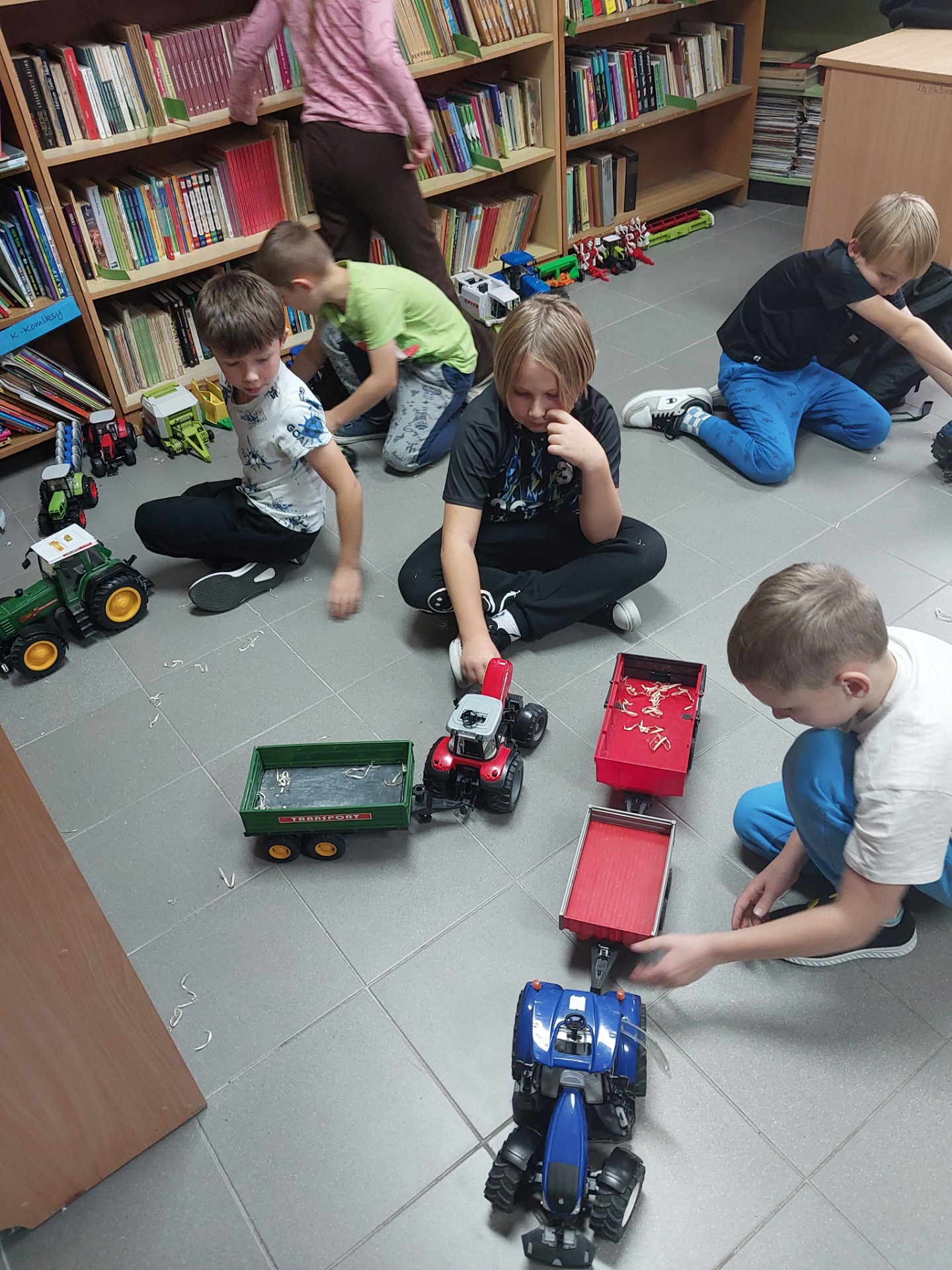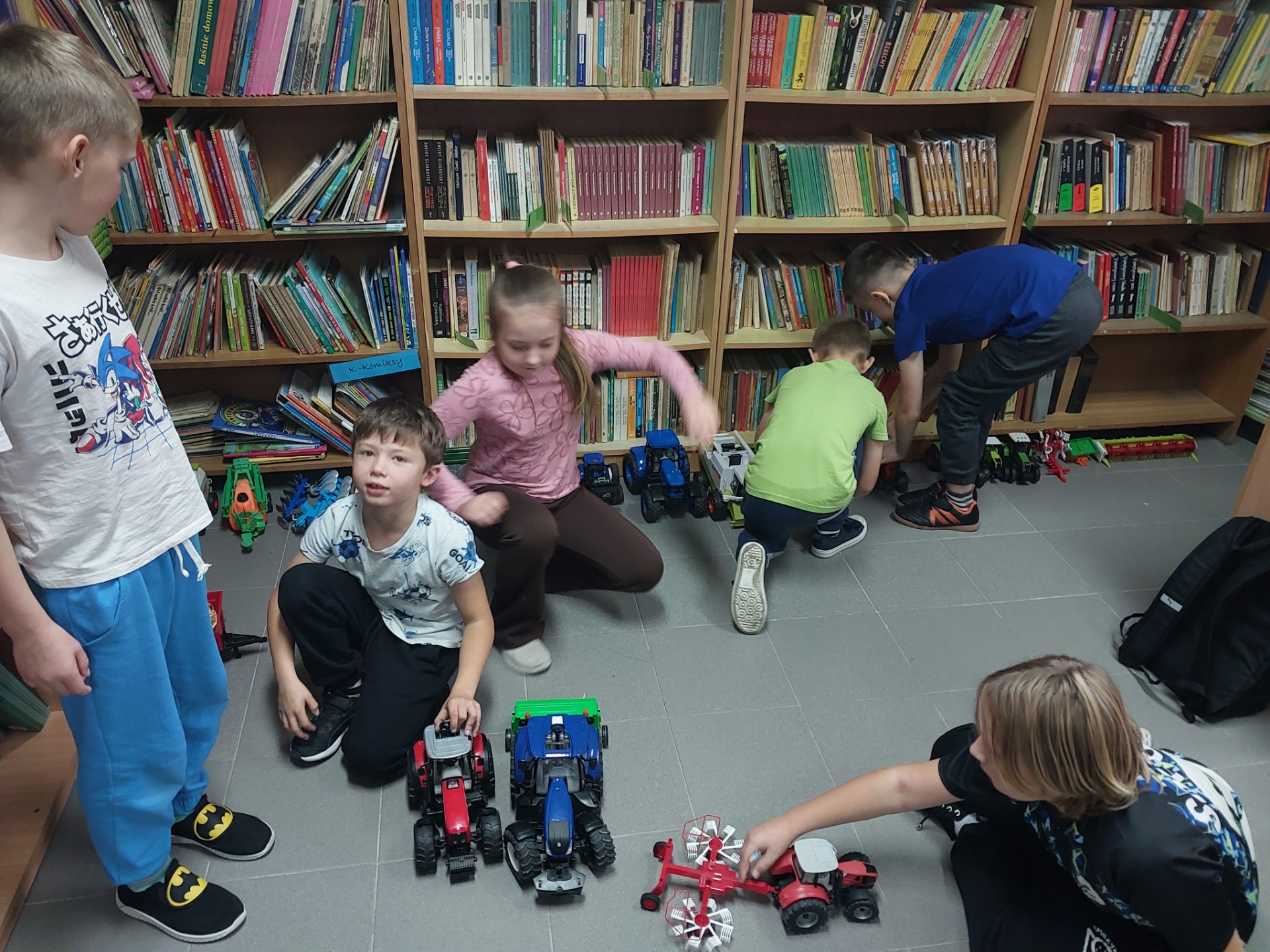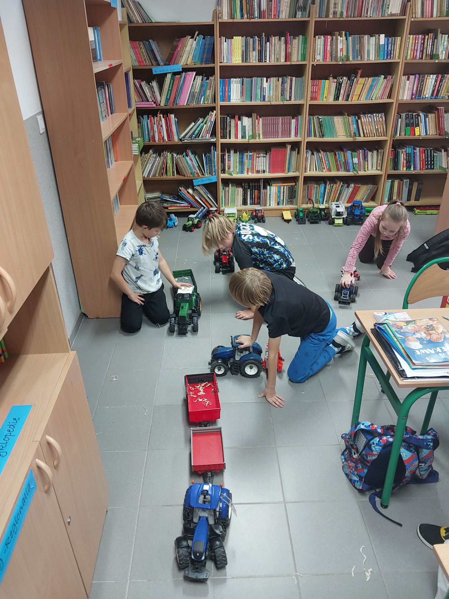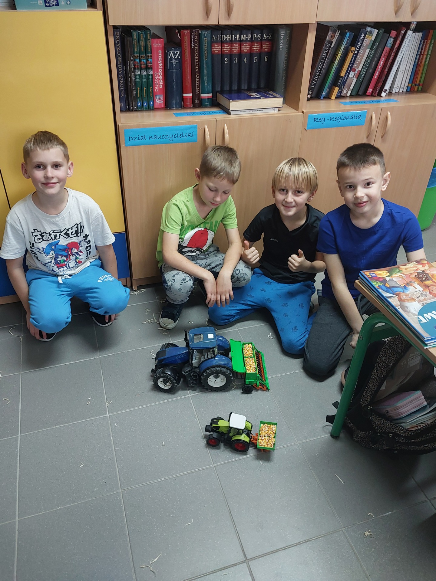Uczniowie klasy 3 mieli okazję bliżej poznać trudną, ale bardzo ważną pracę rolnika. Podczas zajęć dowiedzieli się, jak wiele wysiłku wymaga uprawa ziemi, sadzenie i zbieranie plonów oraz jak ważną rolę rolnicy odgrywają w naszym codziennym życiu. Dzieci poznały różne maszyny rolnicze, takie jak traktory, kombajny czy siewniki, oraz dowiedziały się, do czego każda z nich służy. Rozmawialiśmy również o uprawie zbóż, warzyw i owoców, które trafiają później na nasze stoły. Aby lepiej zrozumieć temat, uczniowie przynieśli z domu swoje zabawki – traktory i maszyny rolnicze, które wykorzystali podczas wspólnej zabawy. Dzięki temu mogli w praktyczny i kreatywny sposób zobaczyć, jak wygląda praca rolnika. Zajęcia były nie tylko bardzo ciekawe, ale też sprzyjały integracji klasy – wspólna zabawa, rozmowy i nauka przez działanie sprawiły, że wszyscy świetnie się bawili i jednocześnie wiele się nauczyli!