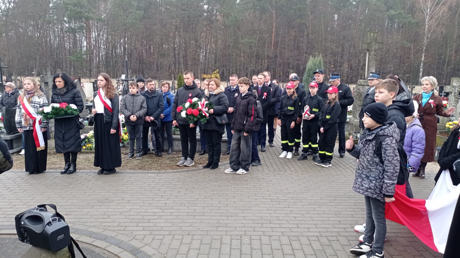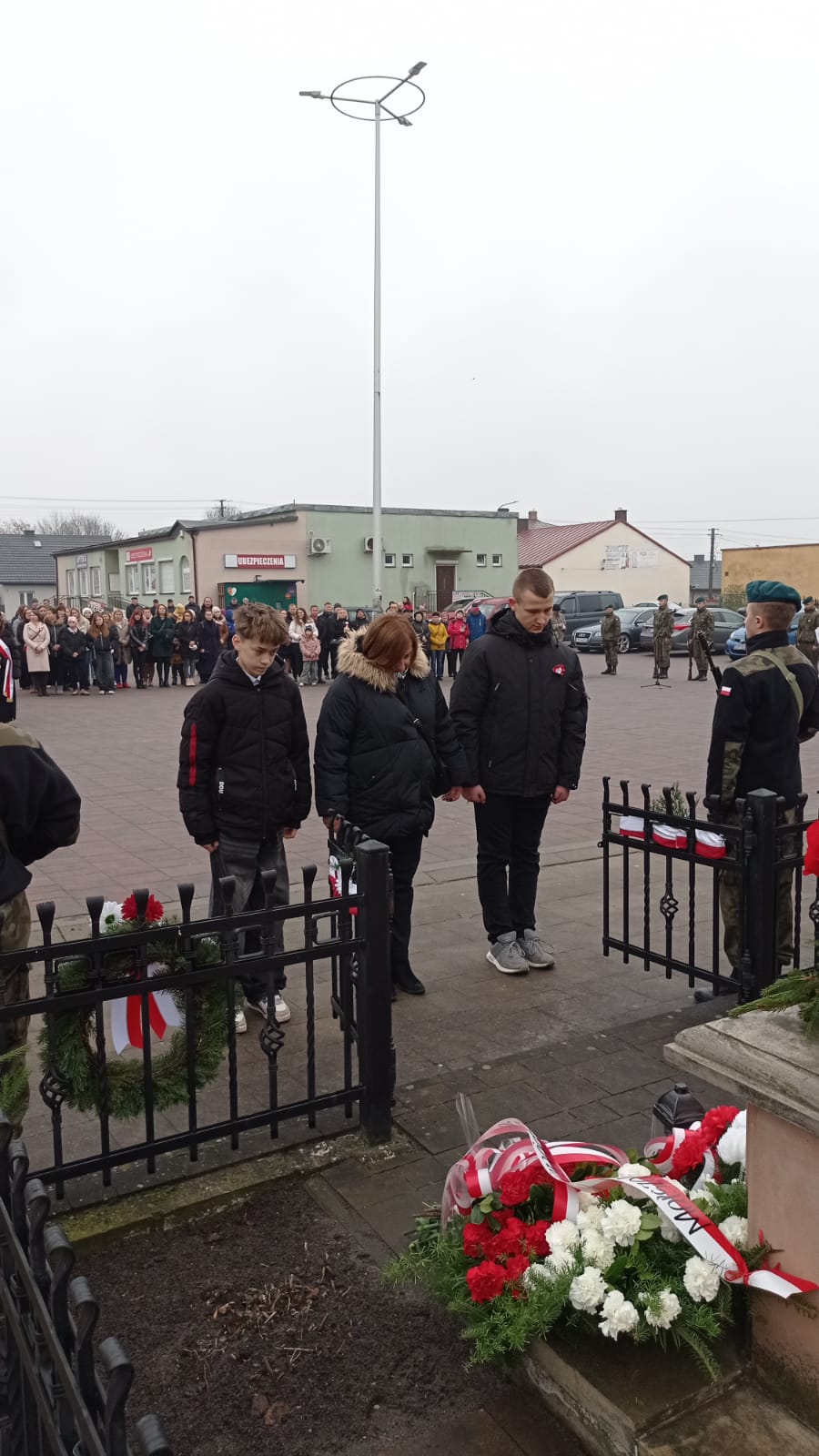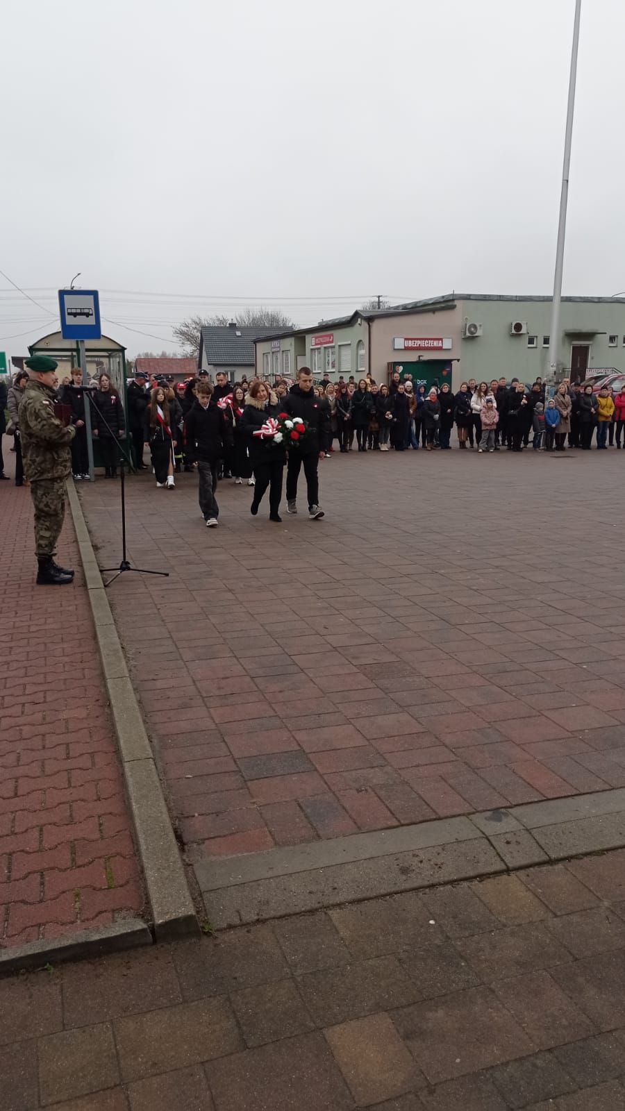 W ramach gminnych obchodów Święta Niepodległości delegacja społeczności szkolnej z Sokołowa wzięła udział w przemarszu na cmentarz, gdzie złożyła wieniec przed grobem Partyzantów. Następnie po wysłuchaniu okolicznościowych przemówień i Apelu Poległych złożono wieniec pod Pomnikiem Niepodległości. W obu przypadkach naszą szkołę reprezentowała p. dyrektor Sylwia Sarna - Jurek oraz uczniowie: Adam Sikora i Paweł Kolasiński.