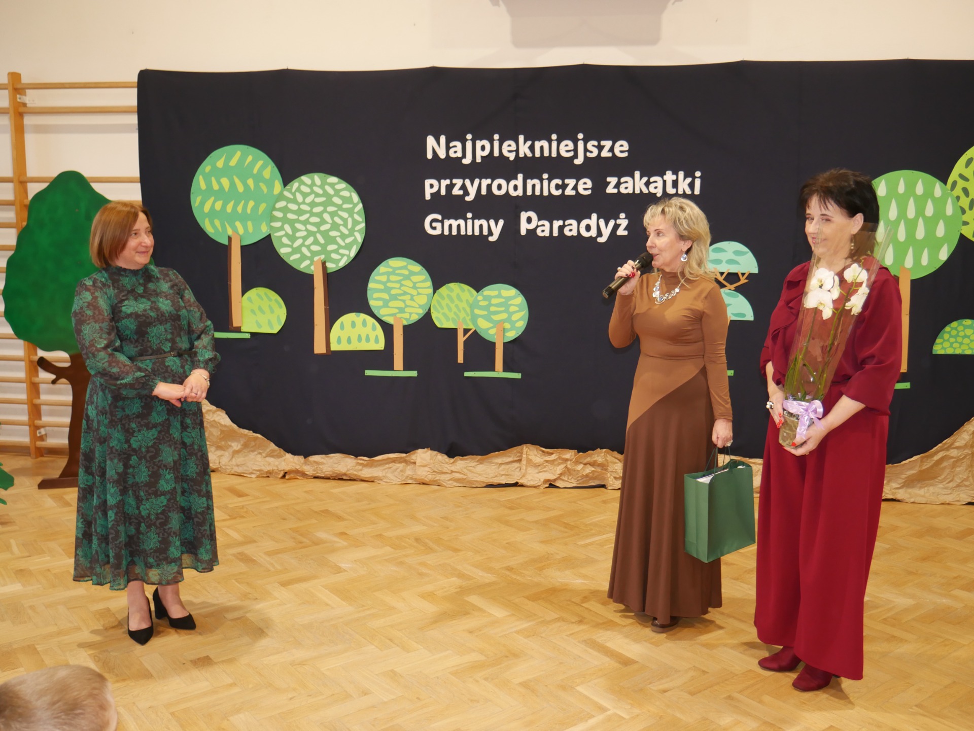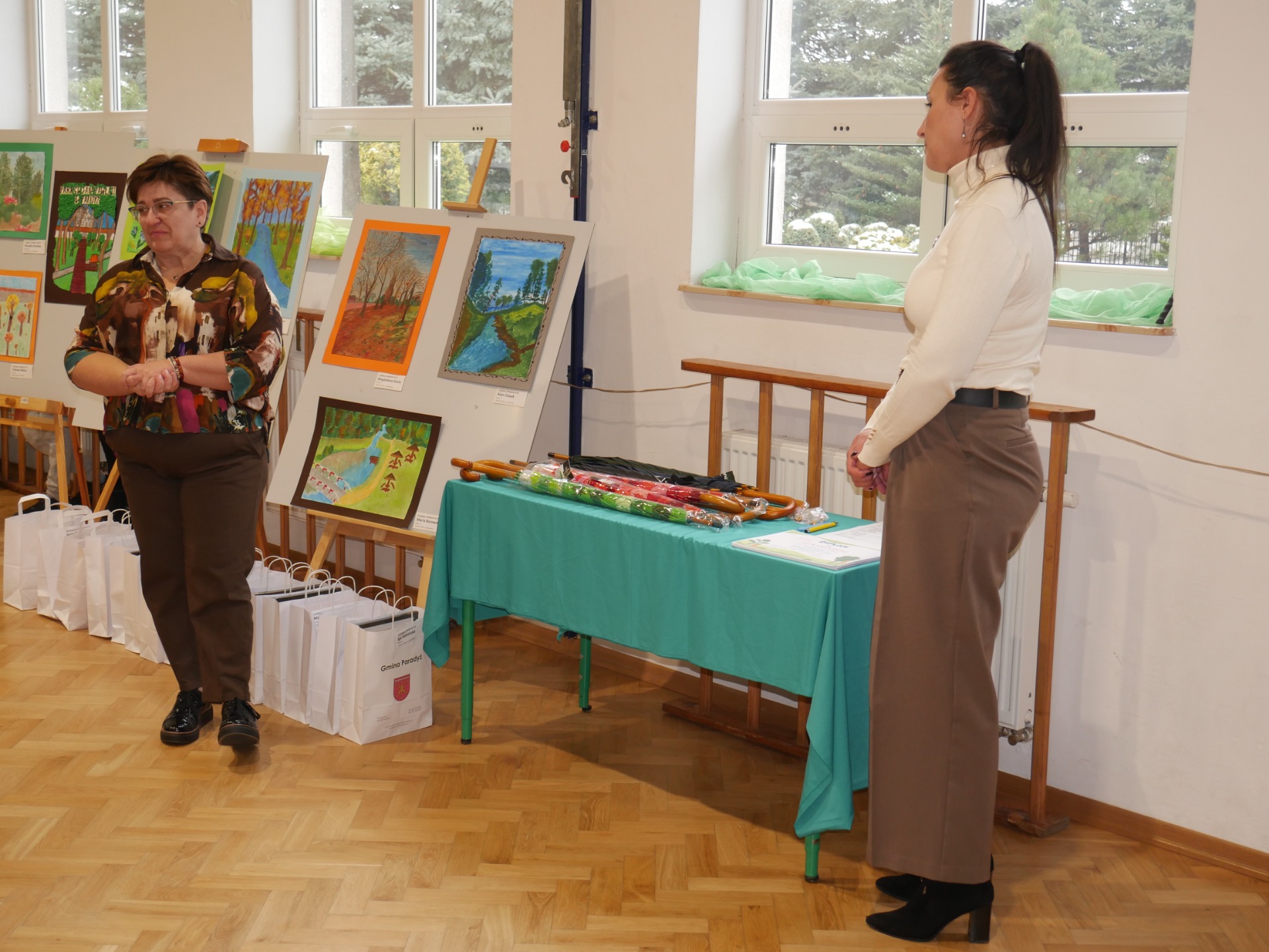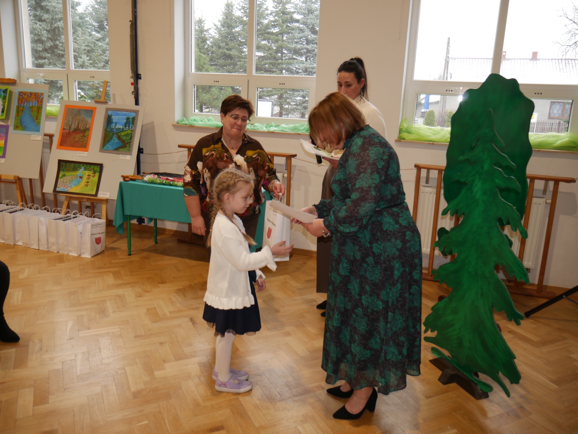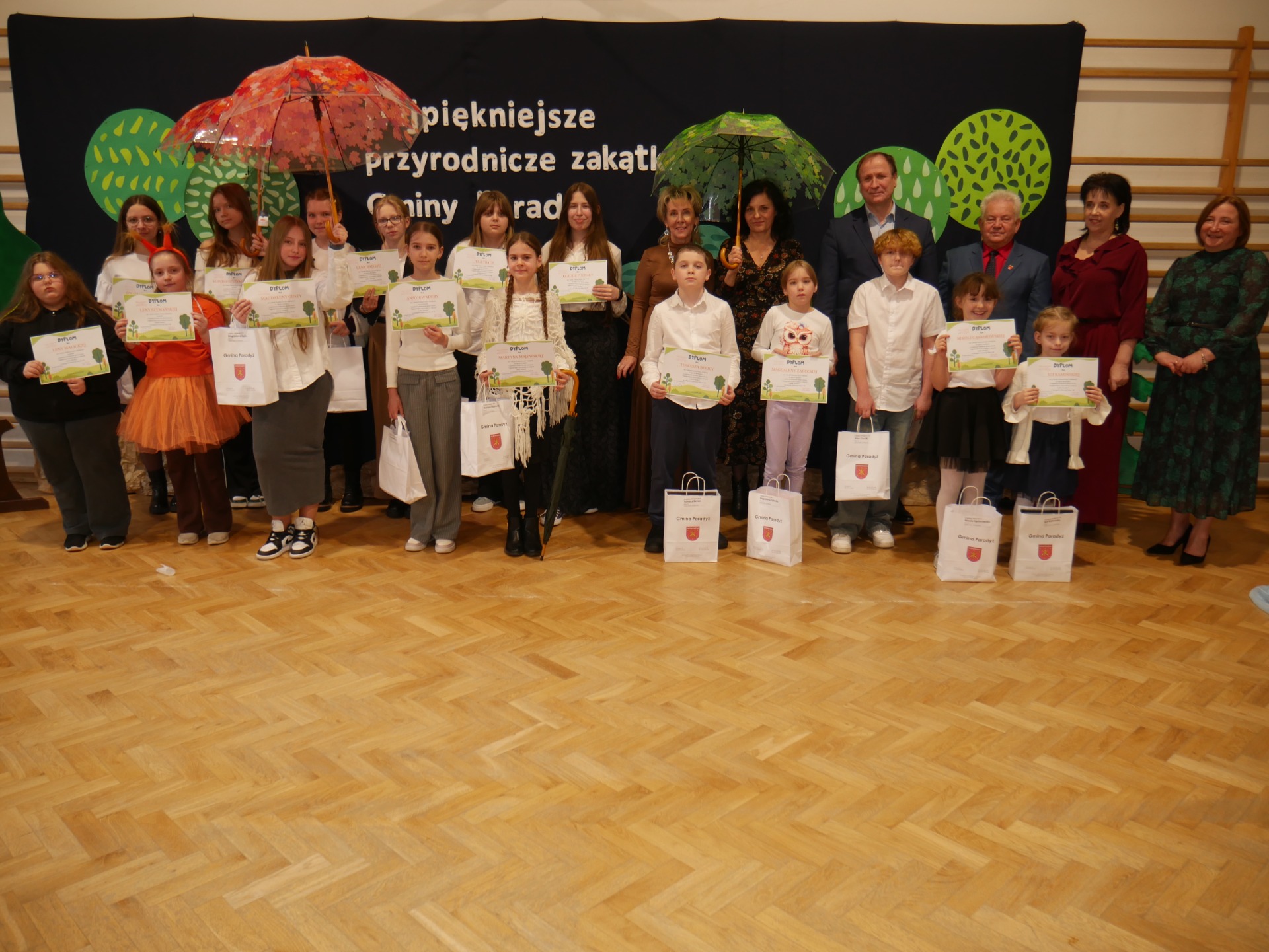 Po występie nastąpiło rozstrzygnięcie gminnego konkursu plastycznego pt. ,,Najpiękniejszy przyrodniczy zakątek Gminy Paradyż”. Uczestnikami konkursu byli uczniowie szkół podstawowych z terenu naszej gminy. Celem konkursu było propagowanie postaw ekologicznych wśród dzieci i młodzieży, rozwijanie wyobraźni, motywowanie i podejmowanie działań ekologicznych na rzecz środowiska naturalnego oraz propagowanie walorów przyrodniczych miejsc zamieszkania uczestników konkursu. Zadanie konkursowe polegało na wykonaniu pracy plastycznej związanej z tematem konkursu, w technice dowolnej płaskiej. Jury miało niełatwe zadanie, ponieważ poziom wszystkich prac był bardzo wysoki, a dzieci wykazały się dużą pomysłowością.