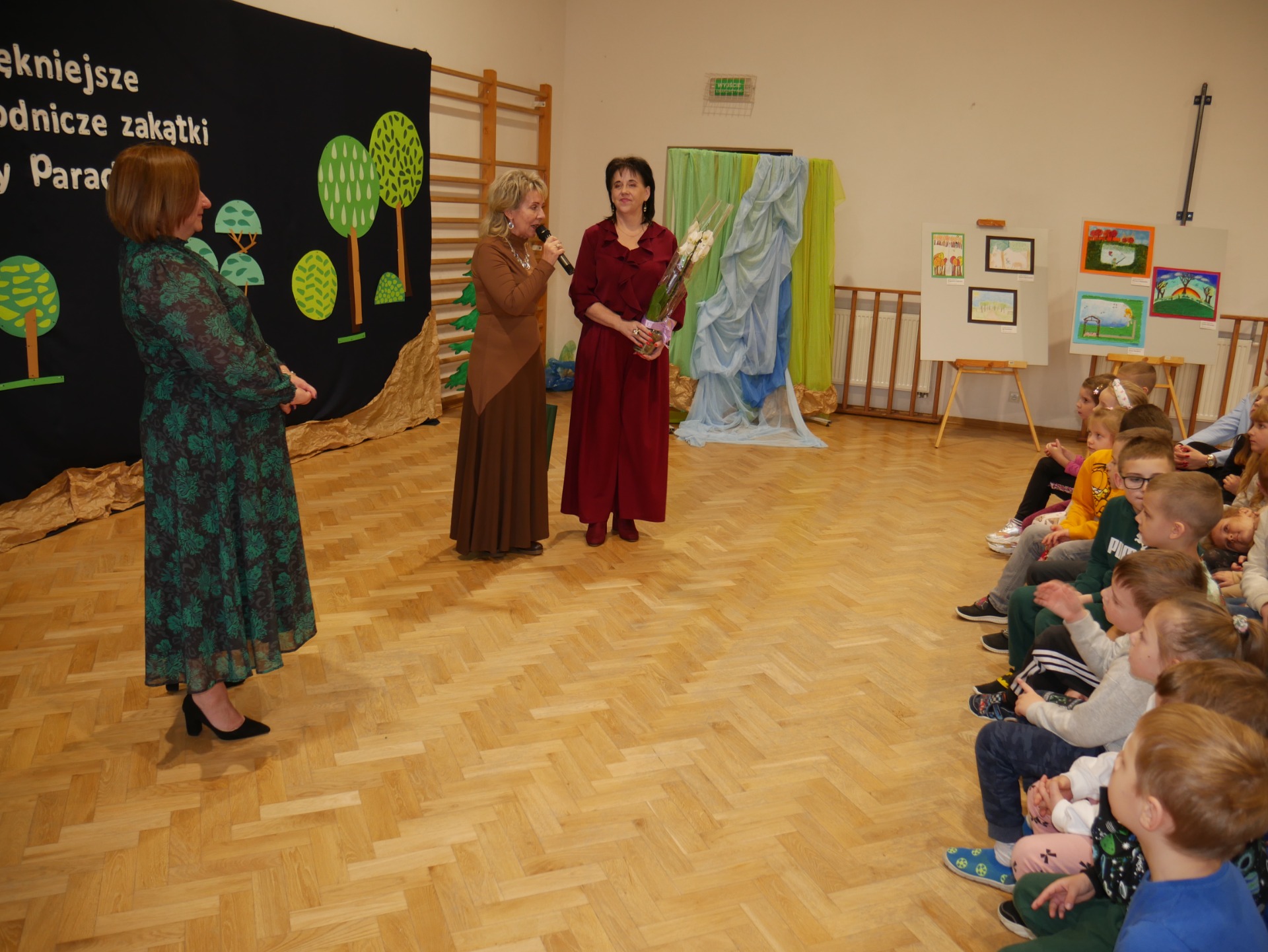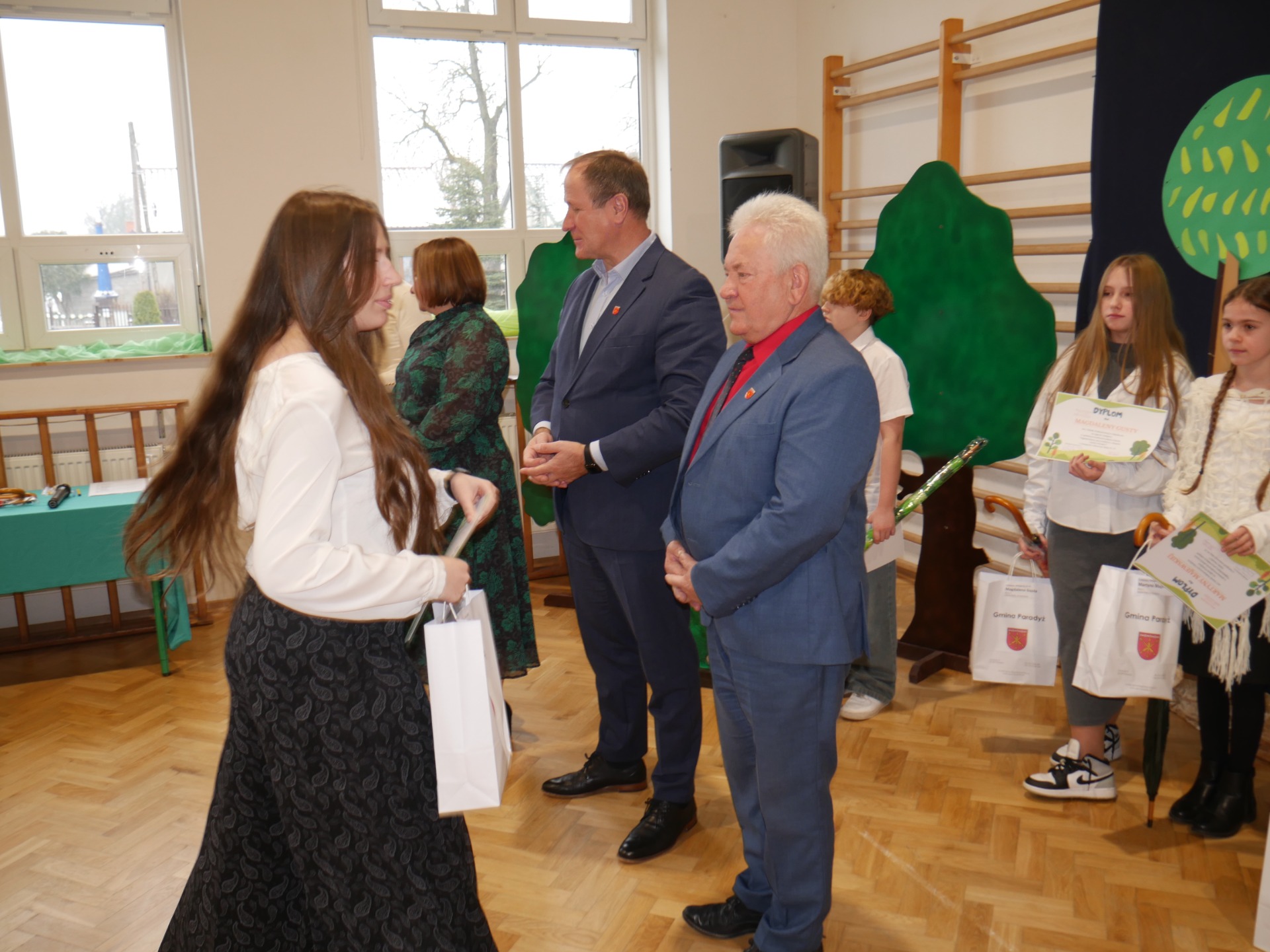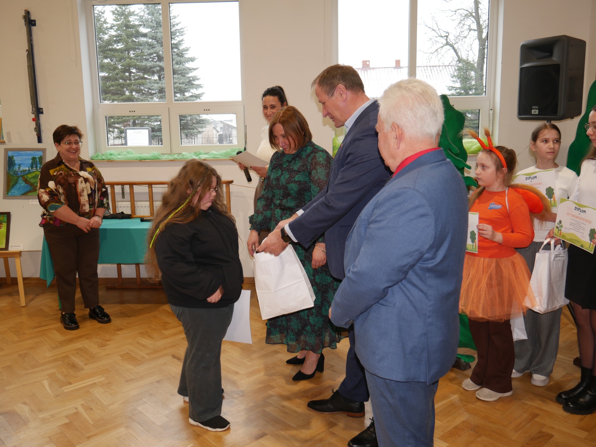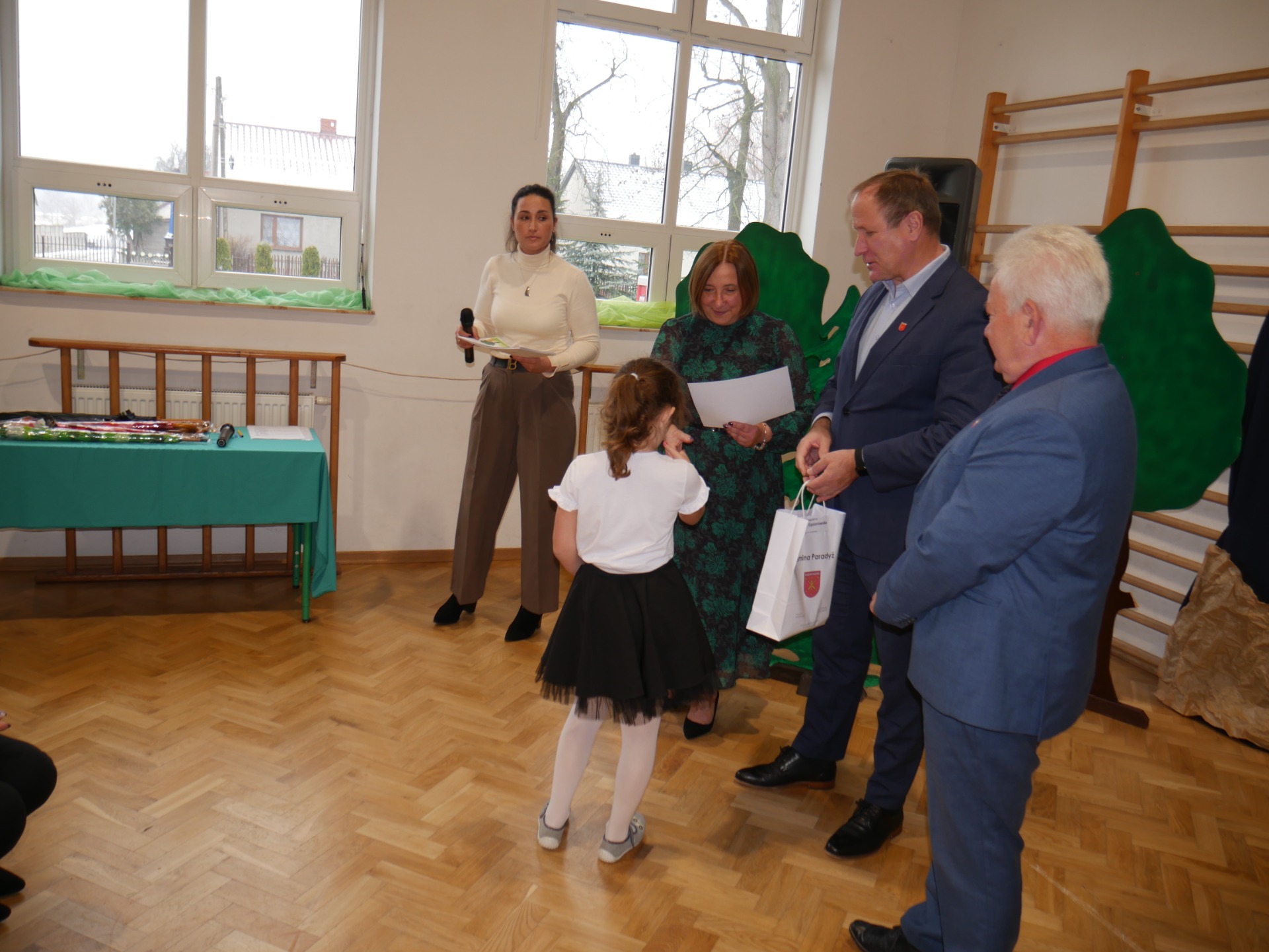 Po występie nastąpiło rozstrzygnięcie gminnego konkursu plastycznego pt. ,,Najpiękniejszy przyrodniczy zakątek Gminy Paradyż”. Uczestnikami konkursu byli uczniowie szkół podstawowych z terenu naszej gminy. Celem konkursu było propagowanie postaw ekologicznych wśród dzieci i młodzieży, rozwijanie wyobraźni, motywowanie i podejmowanie działań ekologicznych na rzecz środowiska naturalnego oraz propagowanie walorów przyrodniczych miejsc zamieszkania uczestników konkursu. Zadanie konkursowe polegało na wykonaniu pracy plastycznej związanej z tematem konkursu, w technice dowolnej płaskiej. Jury miało niełatwe zadanie, ponieważ poziom wszystkich prac był bardzo wysoki, a dzieci wykazały się dużą pomysłowością.