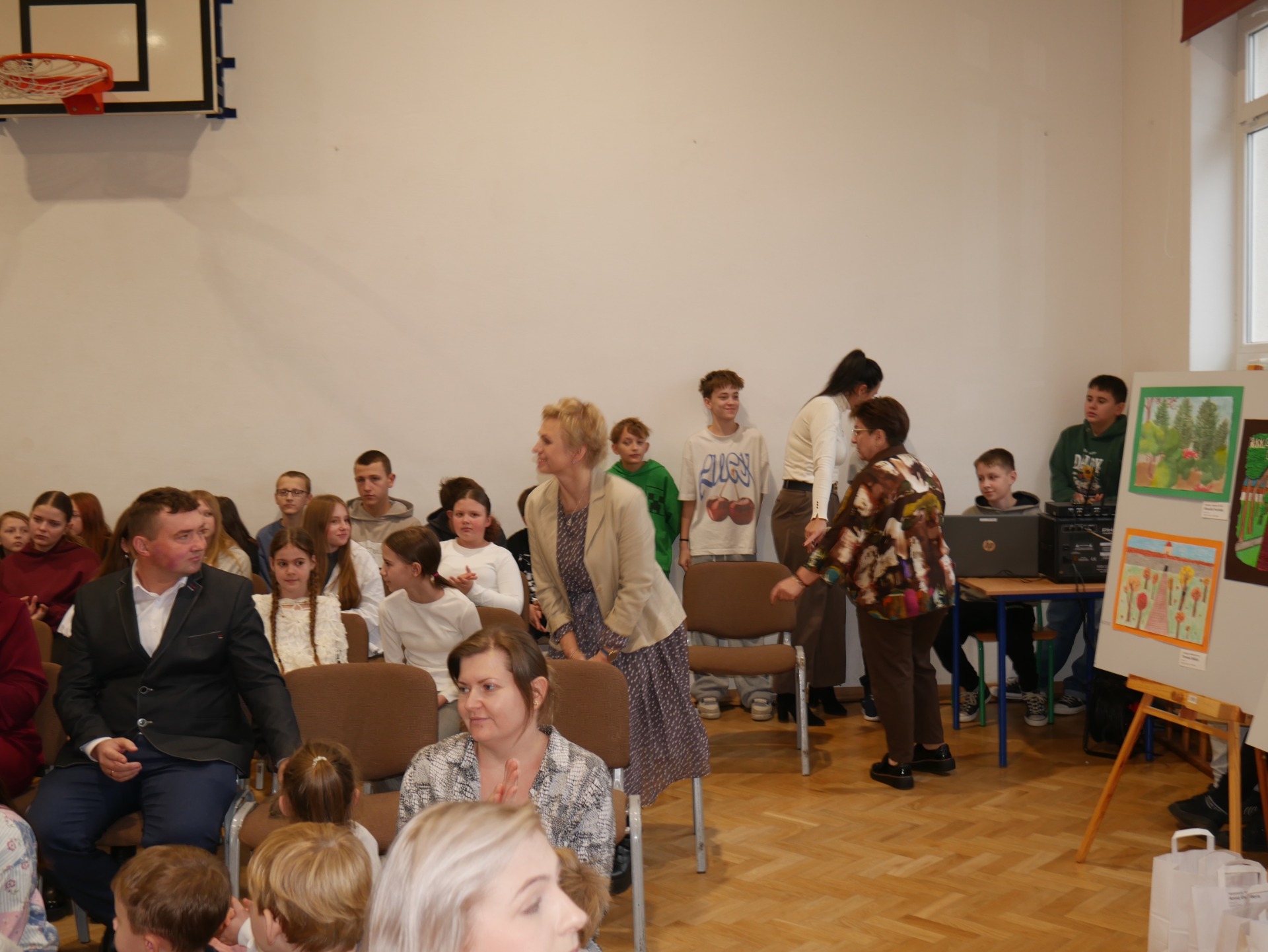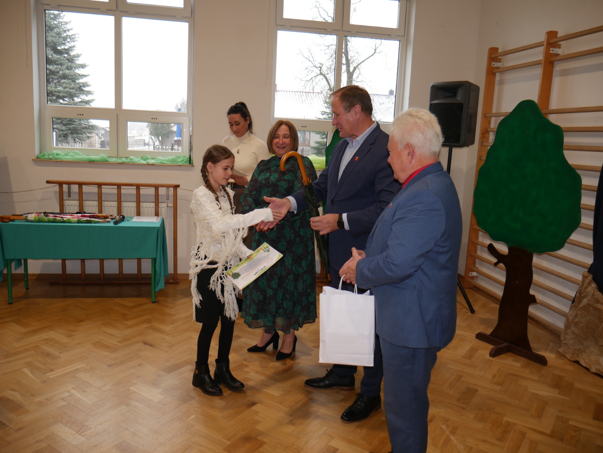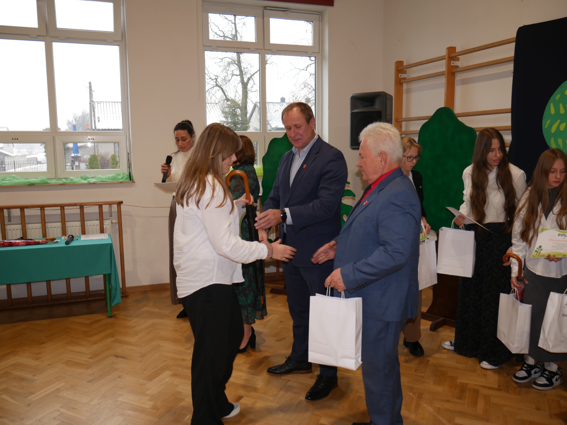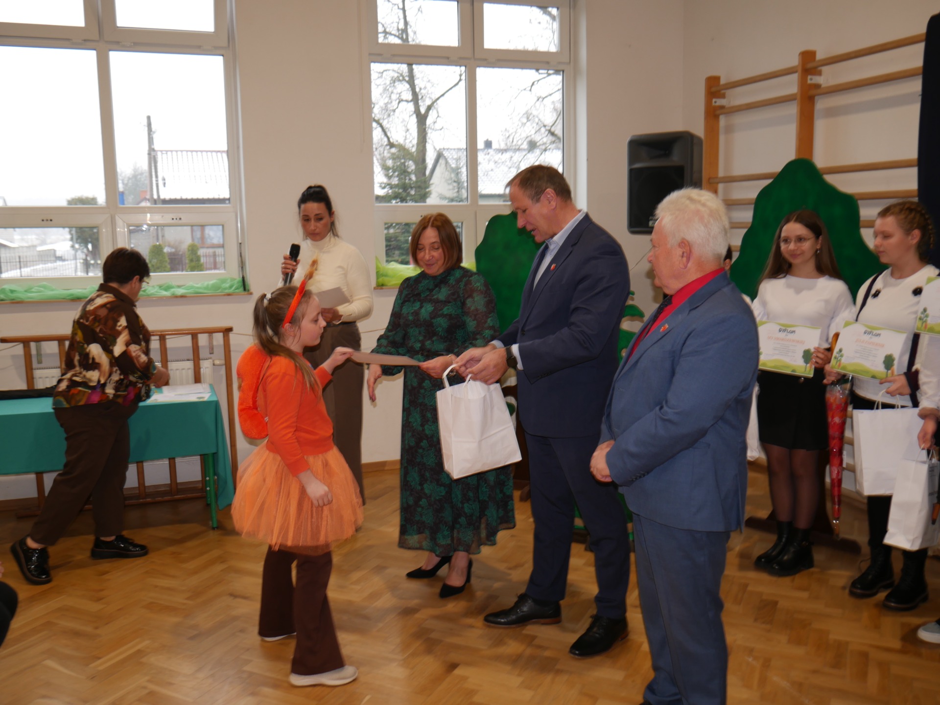 Po występie nastąpiło rozstrzygnięcie gminnego konkursu plastycznego pt. ,,Najpiękniejszy przyrodniczy zakątek Gminy Paradyż”. Uczestnikami konkursu byli uczniowie szkół podstawowych z terenu naszej gminy. Celem konkursu było propagowanie postaw ekologicznych wśród dzieci i młodzieży, rozwijanie wyobraźni, motywowanie i podejmowanie działań ekologicznych na rzecz środowiska naturalnego oraz propagowanie walorów przyrodniczych miejsc zamieszkania uczestników konkursu. Zadanie konkursowe polegało na wykonaniu pracy plastycznej związanej z tematem konkursu, w technice dowolnej płaskiej. Jury miało niełatwe zadanie, ponieważ poziom wszystkich prac był bardzo wysoki, a dzieci wykazały się dużą pomysłowością.