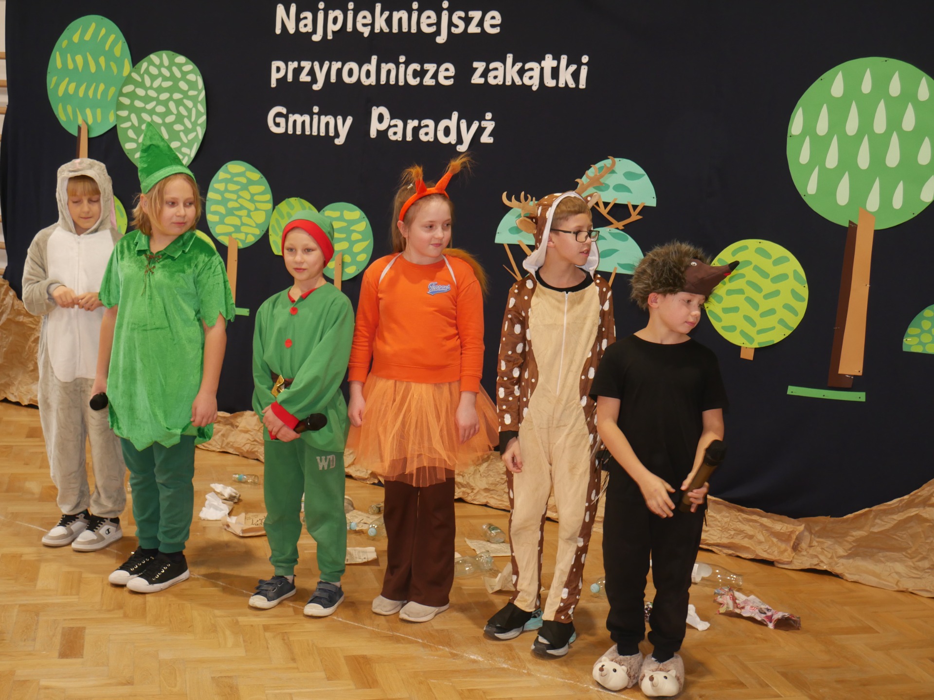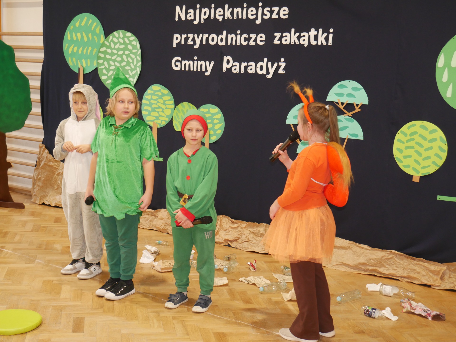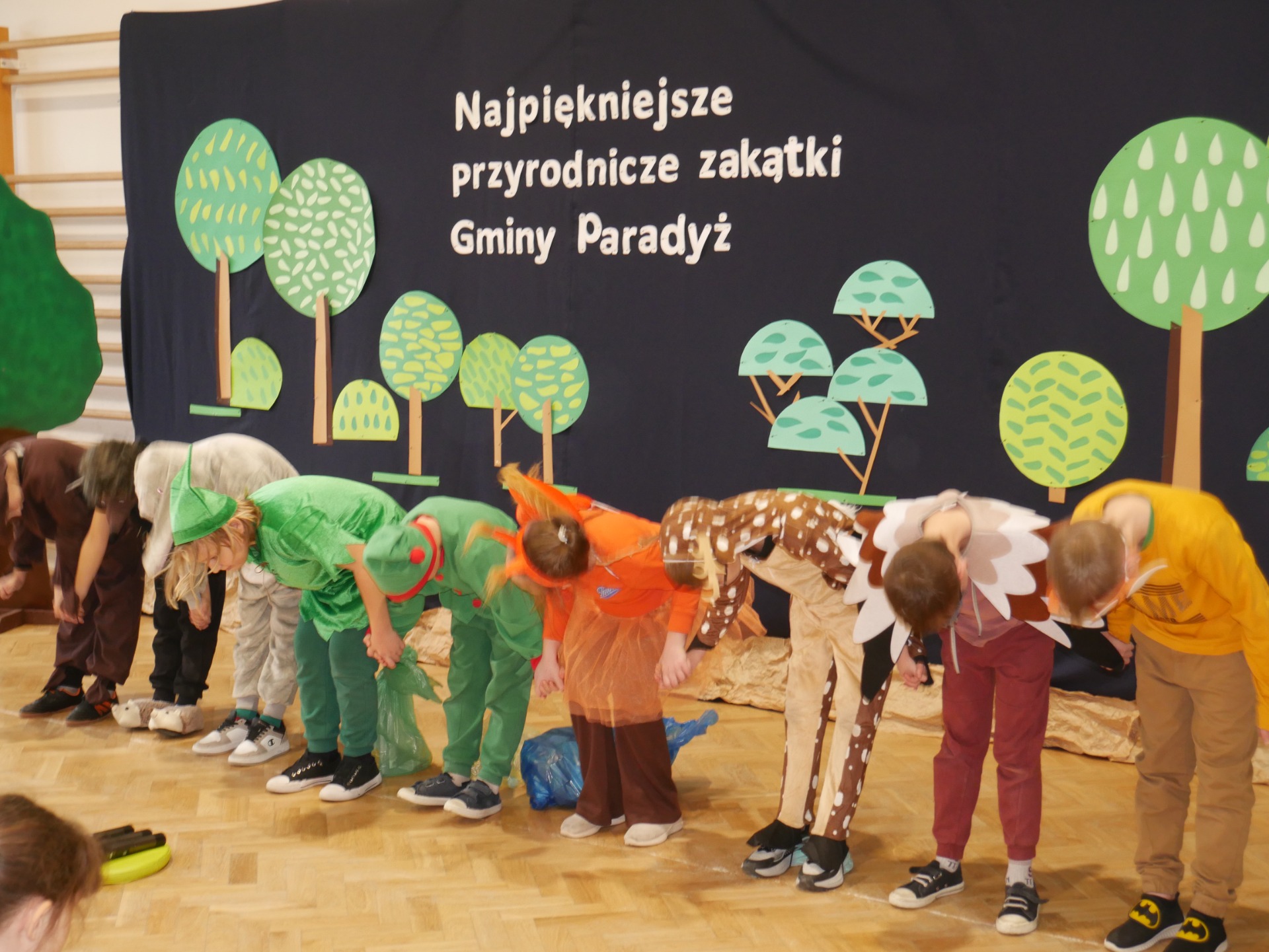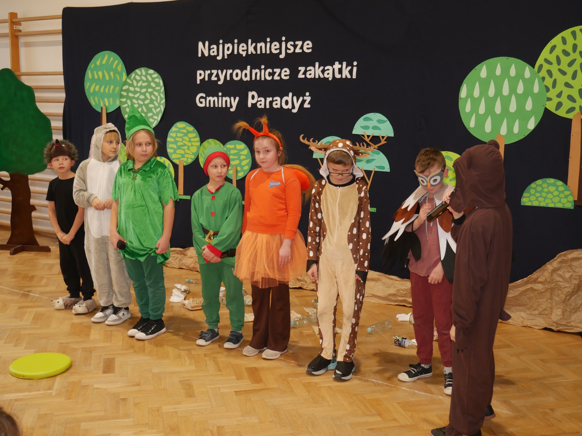 Jako, że pracownia służy kształtowaniu nawyków ekologicznych - uroczystość poprzedziło przedstawienie pod tytułem „Skrzaty sprzątają las”, w wykonaniu klasy III, przygotowane pod kierunkiem Pani Pauliny Gajzler. Pouczająca scenka ekologiczna, w której skrzaty wraz z leśnymi zwierzętami odkrywają, że ich ukochany, dotąd piękny las został zaśmiecony. Wspólnie uczą się właściwej segregacji odpadów oraz ukazują, jak istotne jest troskliwe i odpowiedzialne podejście do środowiska naturalnego, przypominają, że każdy z nas – niezależnie od wieku – może przyczynić się do ochrony przyrody, a zgodna współpraca i zaangażowanie sprawiają, że las ponownie staje się miejscem czystym, zdrowym i pełnym radości.