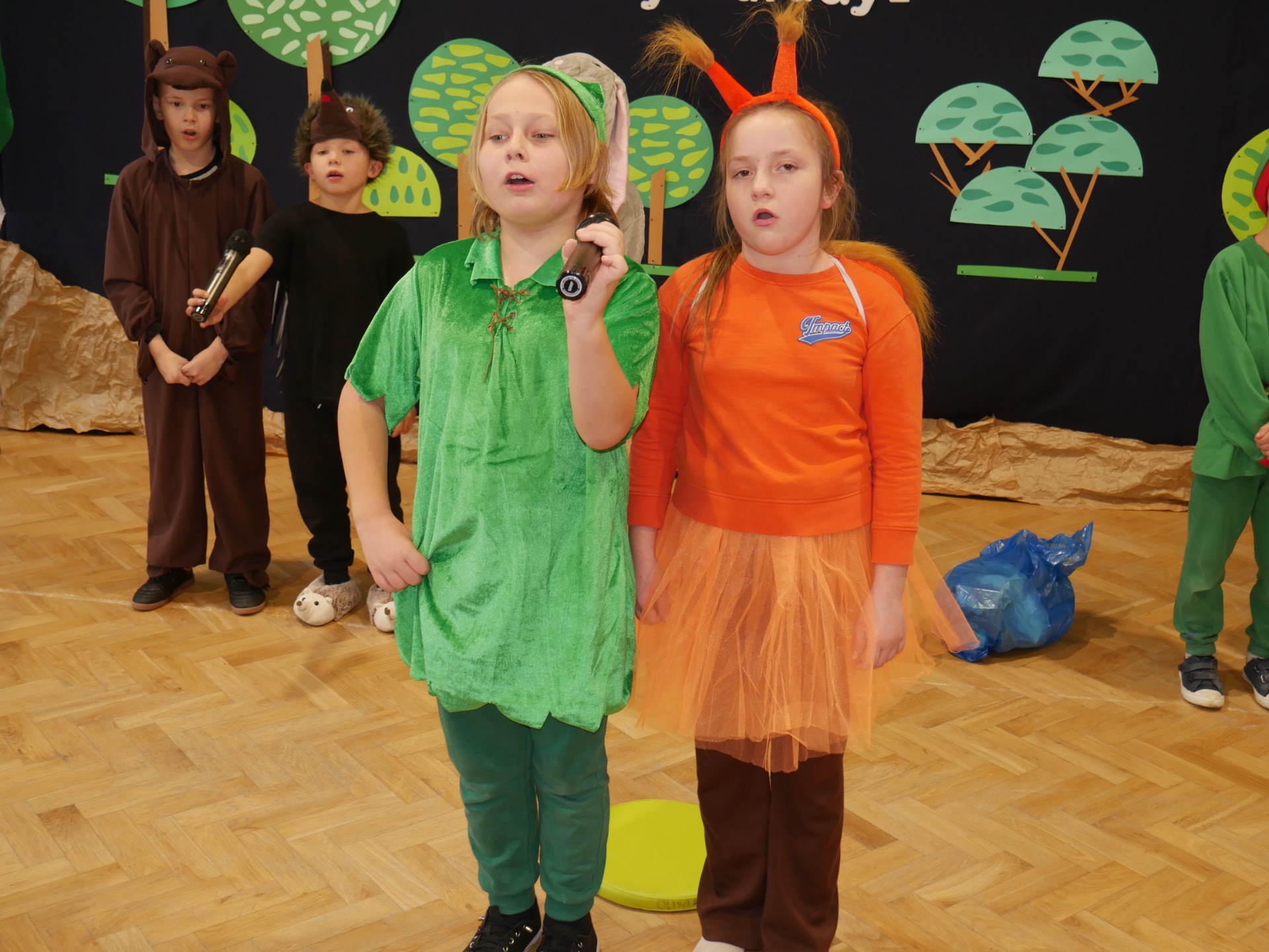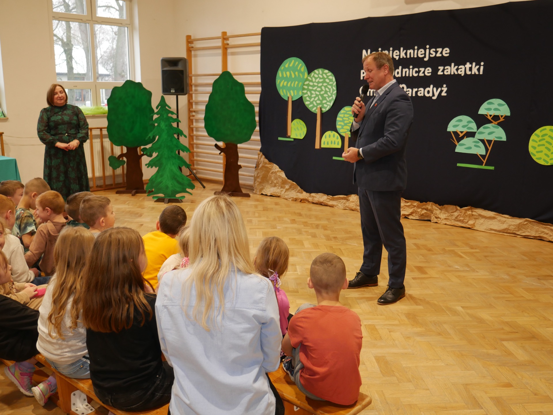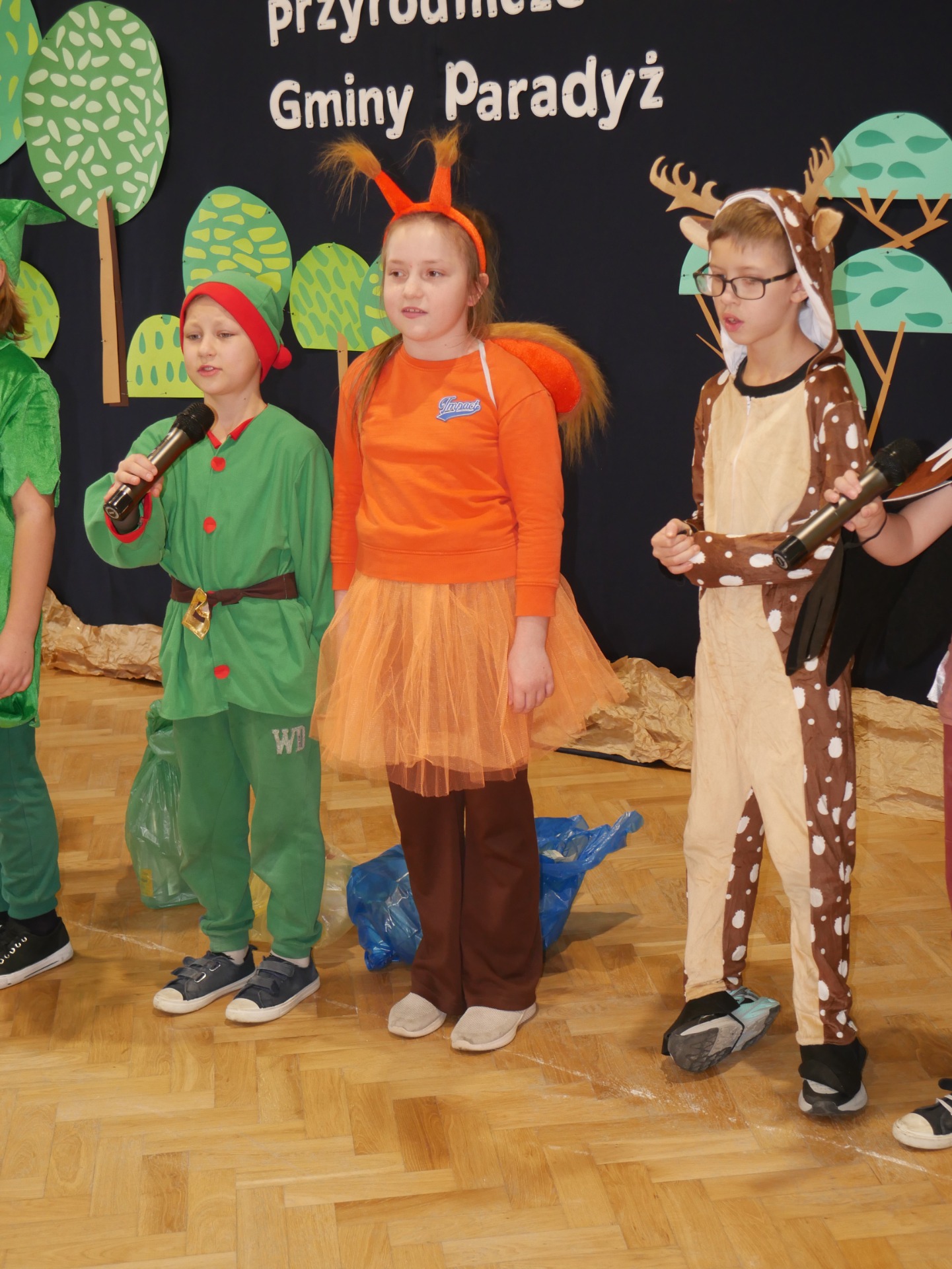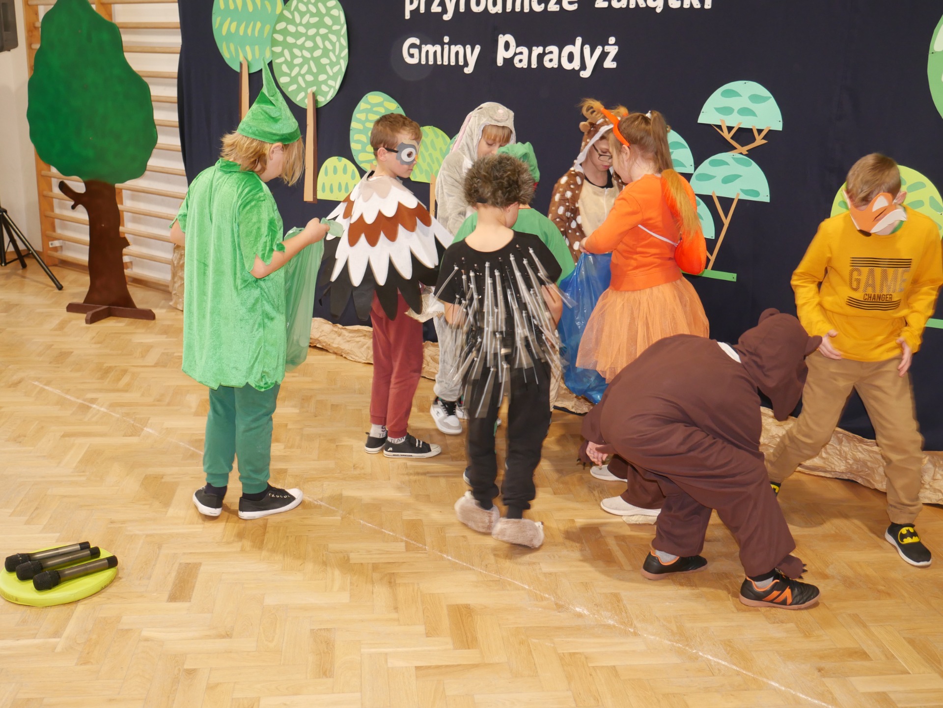 Jako, że pracownia służy kształtowaniu nawyków ekologicznych - uroczystość poprzedziło przedstawienie pod tytułem „Skrzaty sprzątają las”, w wykonaniu klasy III, przygotowane pod kierunkiem Pani Pauliny Gajzler. Pouczająca scenka ekologiczna, w której skrzaty wraz z leśnymi zwierzętami odkrywają, że ich ukochany, dotąd piękny las został zaśmiecony. Wspólnie uczą się właściwej segregacji odpadów oraz ukazują, jak istotne jest troskliwe i odpowiedzialne podejście do środowiska naturalnego, przypominają, że każdy z nas – niezależnie od wieku – może przyczynić się do ochrony przyrody, a zgodna współpraca i zaangażowanie sprawiają, że las ponownie staje się miejscem czystym, zdrowym i pełnym radości.